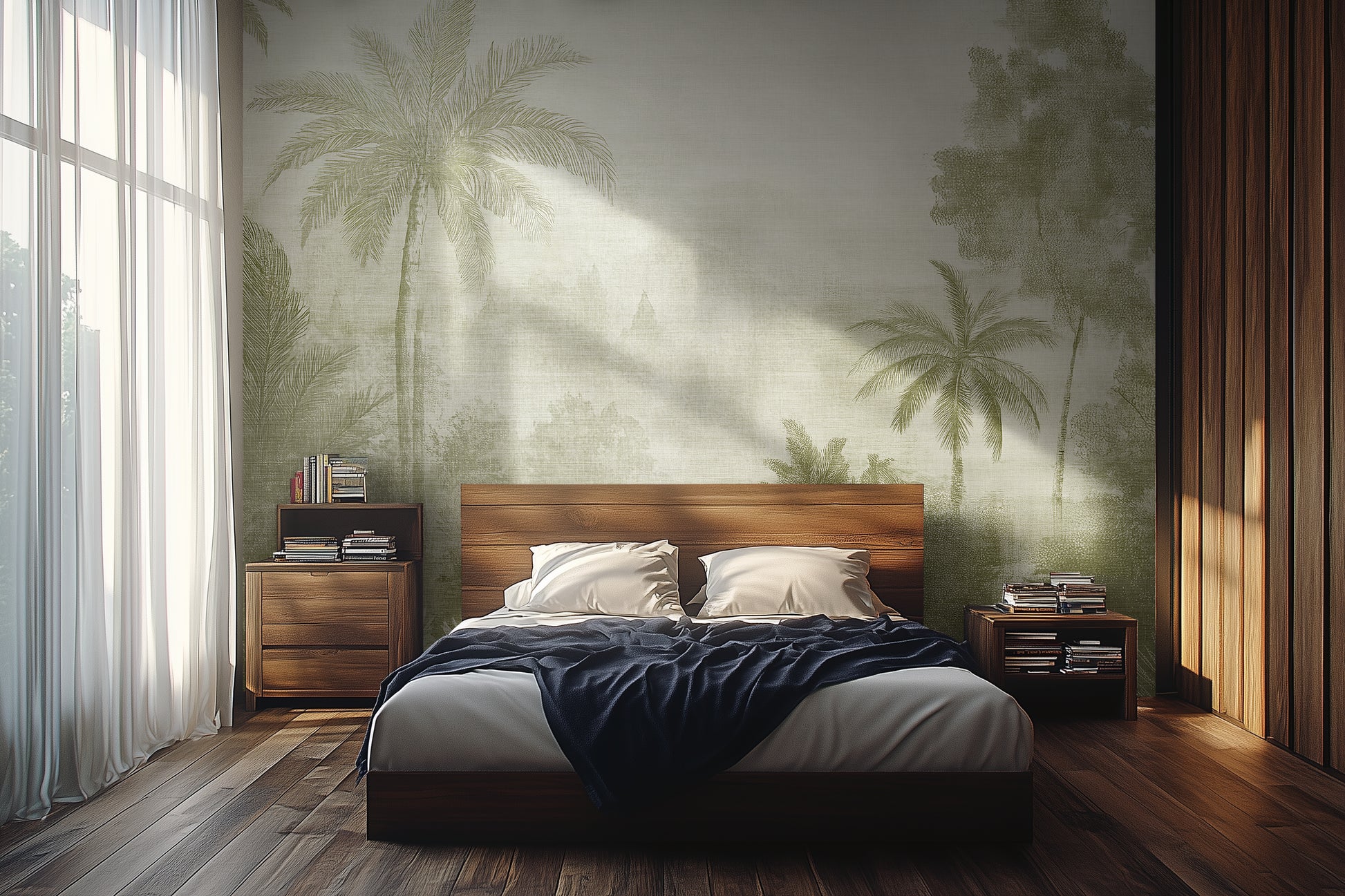 Dawn breaks over the jungle, and the world is bathed in a soft, mossy glow. Viridian Haze is a love letter to the lush, overgrown beauty of tropical landscapes, where mist clings to towering palms and ferns unfurl in the early light. A signature piece from the Jungle Nouveau Collection, this wallpaper invites the outside in with its rich botanical textures and painterly depth.