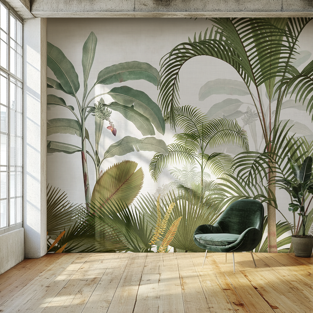 Lush, untamed, and effortlessly elegant—botanical wallpaper brings the outside in, but with a little more drama. Think oversized banana leaves curling in the afternoon light, wild vines creeping across forgotten garden walls, or delicate floral etchings straight out of a vintage botanical journal.