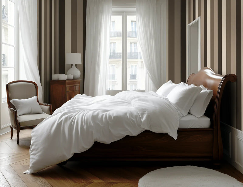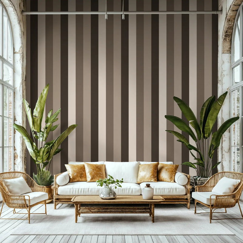 Designed for Mediterranean-inspired homes, rustic interiors, and lovers of history, this Italian-inspired striped wallpaper pairs beautifully with aged woods, textured plaster, and warm lighting, creating a look that feels like a chapter of the past, rewritten for modern design.