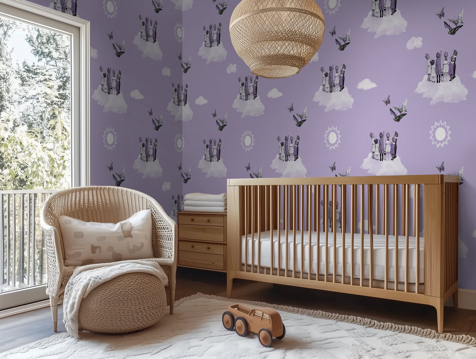 There’s a growing love for vintage-inspired children’s decor—especially designs that feel more illustrated than manufactured. Cloud Watchers channels that aesthetic, combining soft storytelling with soft palettes. It sits perfectly at the intersection of dreamy maximalism and minimalist illustration, offering just enough detail to enchant without overwhelming. It also supports the rising preference for gender-neutral, slow-design interiors made to grow with your child.
