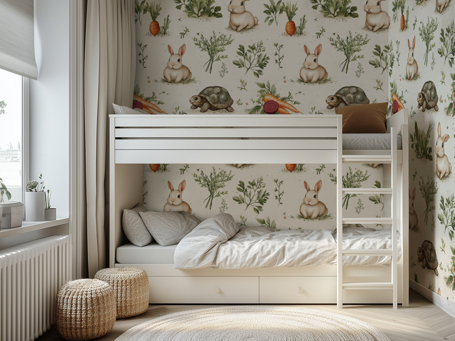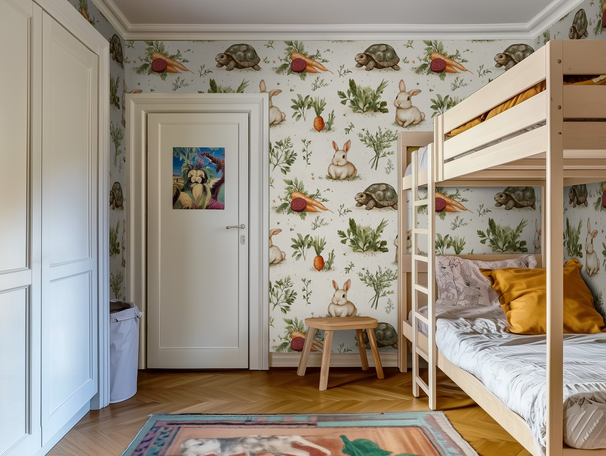 A gentle world where rabbits hop between garden greens and tortoises lounge like old philosophers. The Garden That Grows Rabbits brings the quiet joy of a backyard meadow to your walls—filled with carrots, herbs, and creatures that look like they wandered out of a bedtime story.