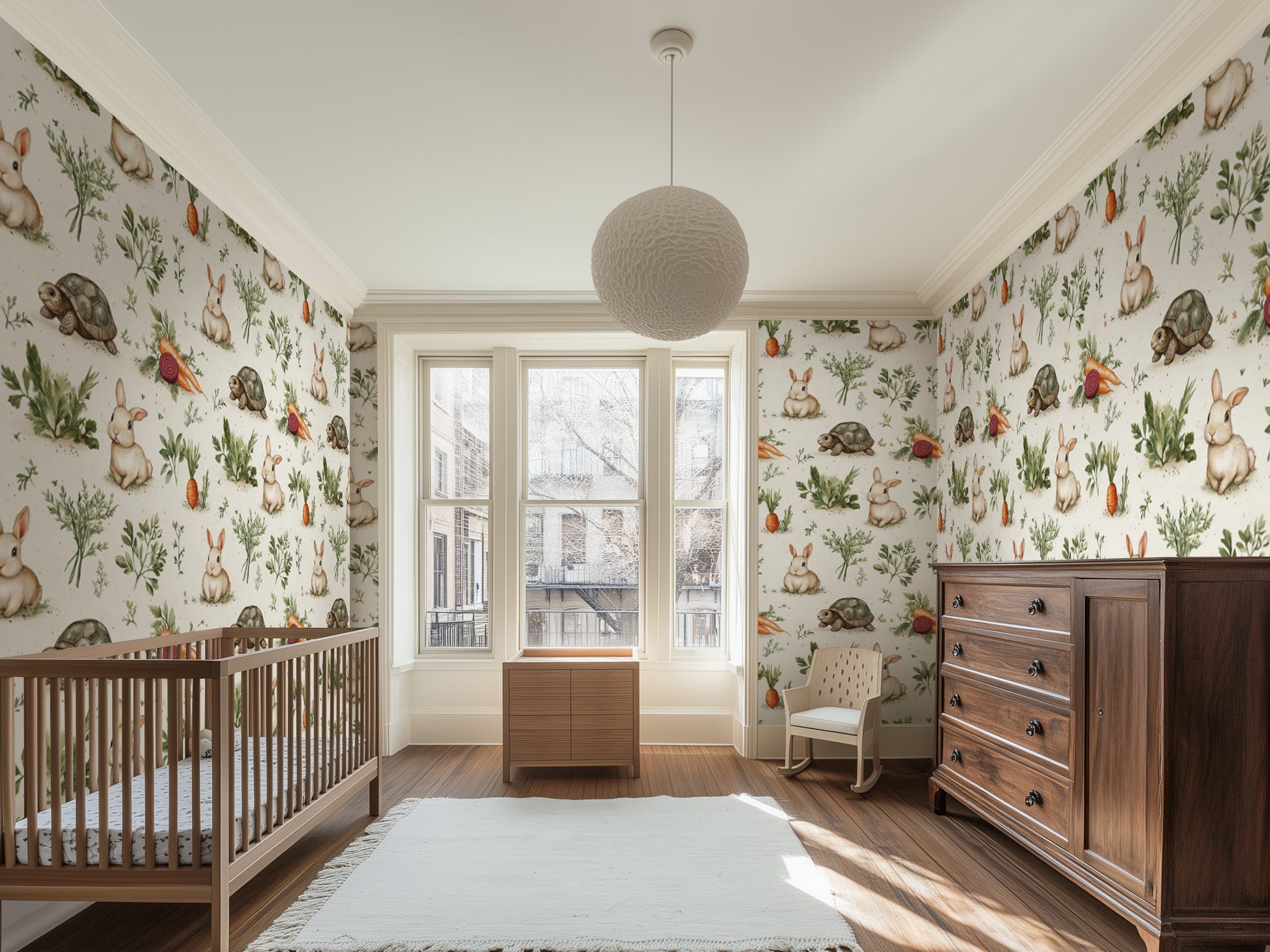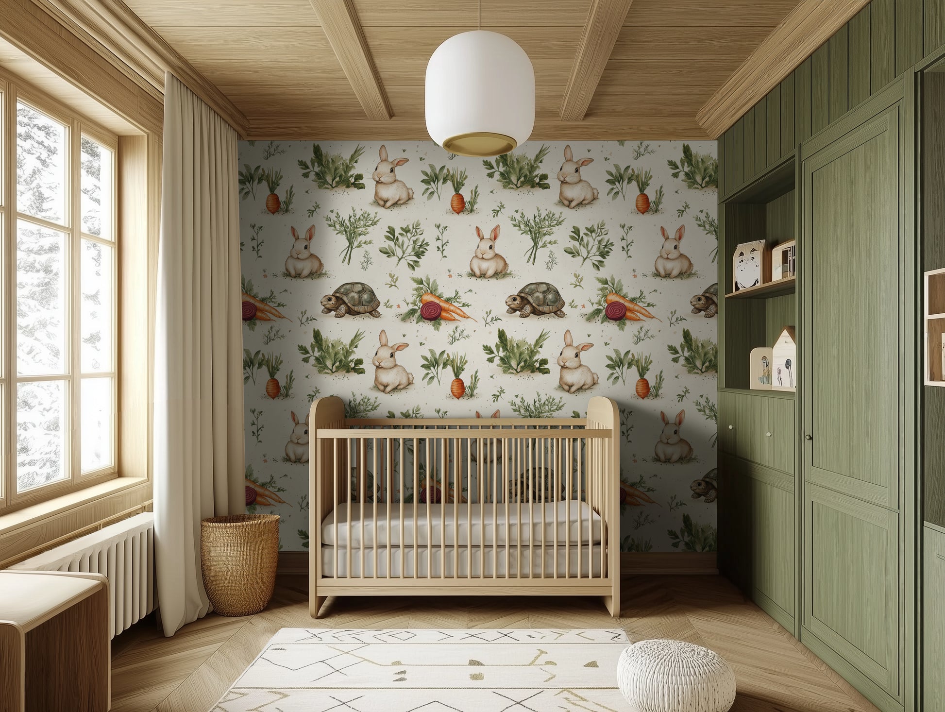 This repeatable wallpaper is ideal for nature-themed nurseries, toddler rooms, or calming kids spaces. Available as a seamless pattern or a full-scale mural—whichever fits your world.