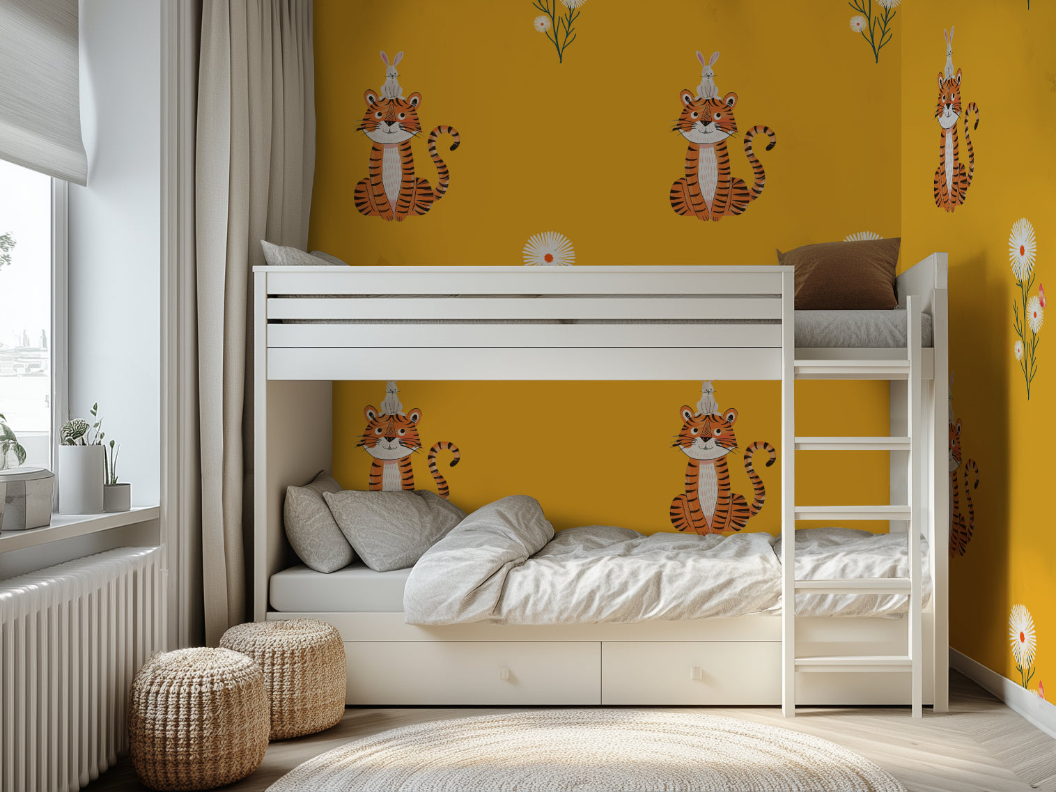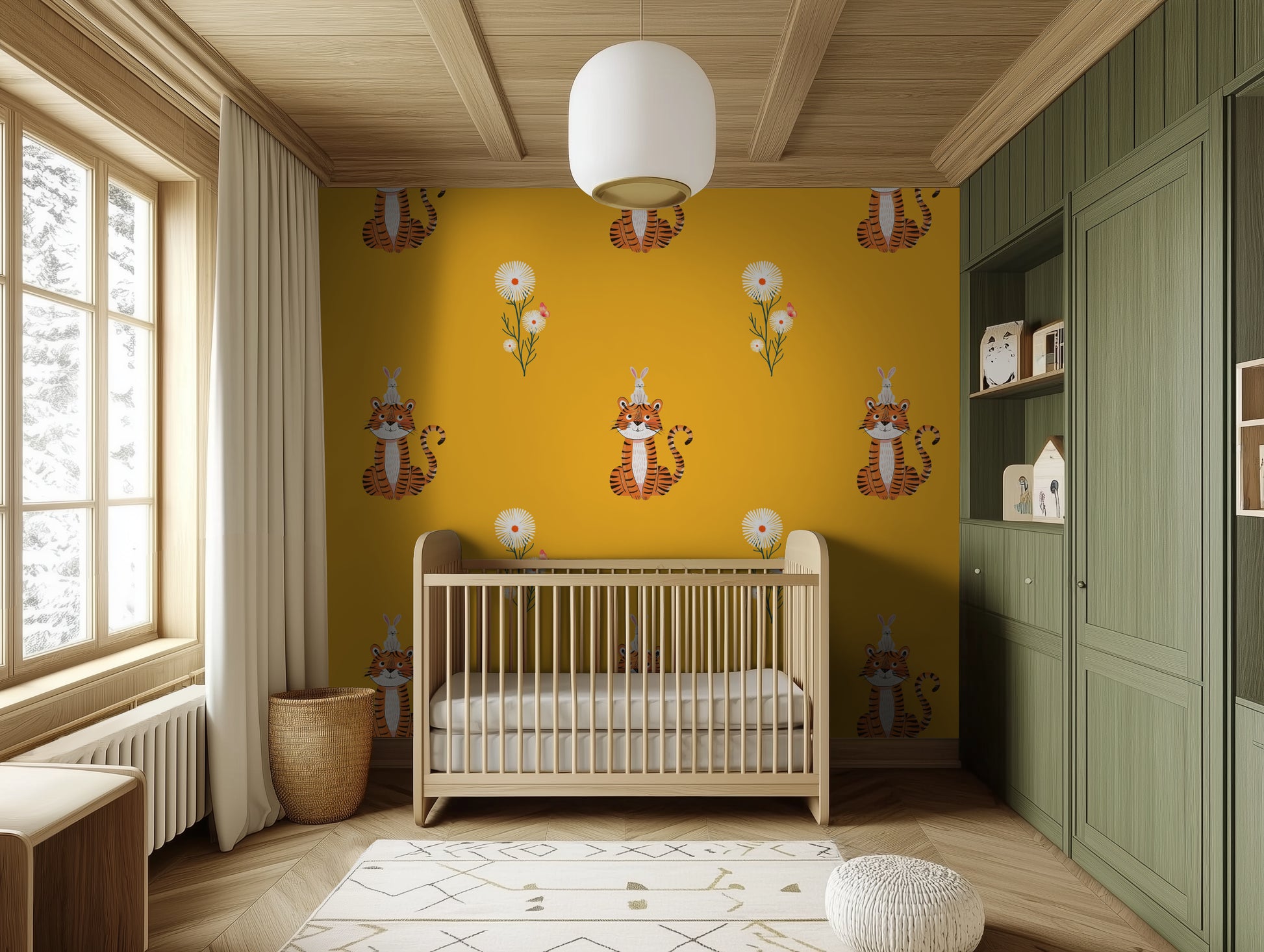 SEO Keywords: tiger kids wallpaper, bunny wallpaper, animal wallpaper for nursery, whimsical wallpaper, seamless wallpaper pattern, botanical kids wallpaper, nursery wallpaper peel and stick, colorful animal print, modern kids room, gender neutral wallpaper, floral wallpaper for toddlers