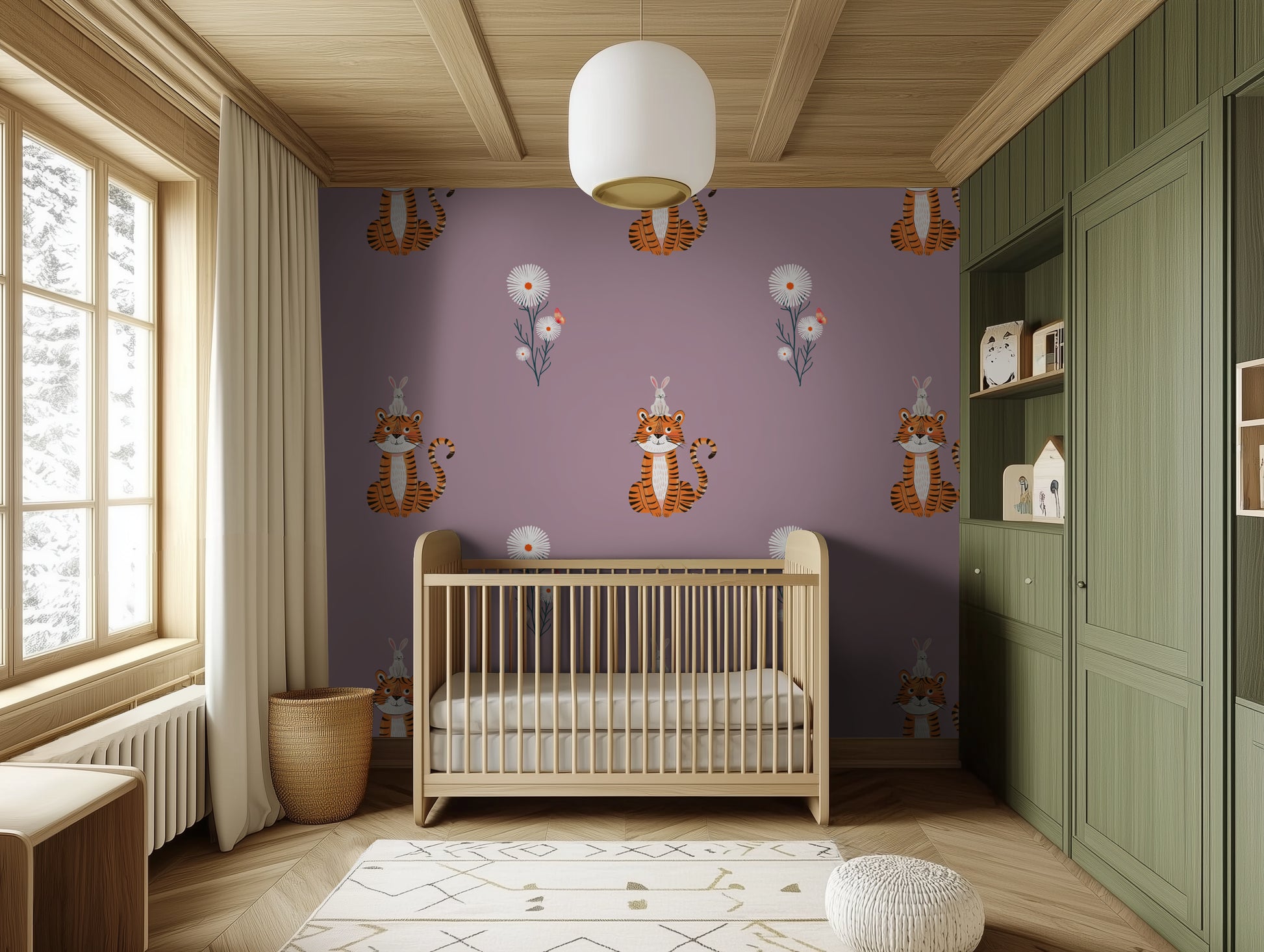 SEO Keywords: tiger kids wallpaper, bunny wallpaper, animal wallpaper for nursery, whimsical wallpaper, seamless wallpaper pattern, botanical kids wallpaper, nursery wallpaper peel and stick, colorful animal print, modern kids room, gender neutral wallpaper, floral wallpaper for toddlers