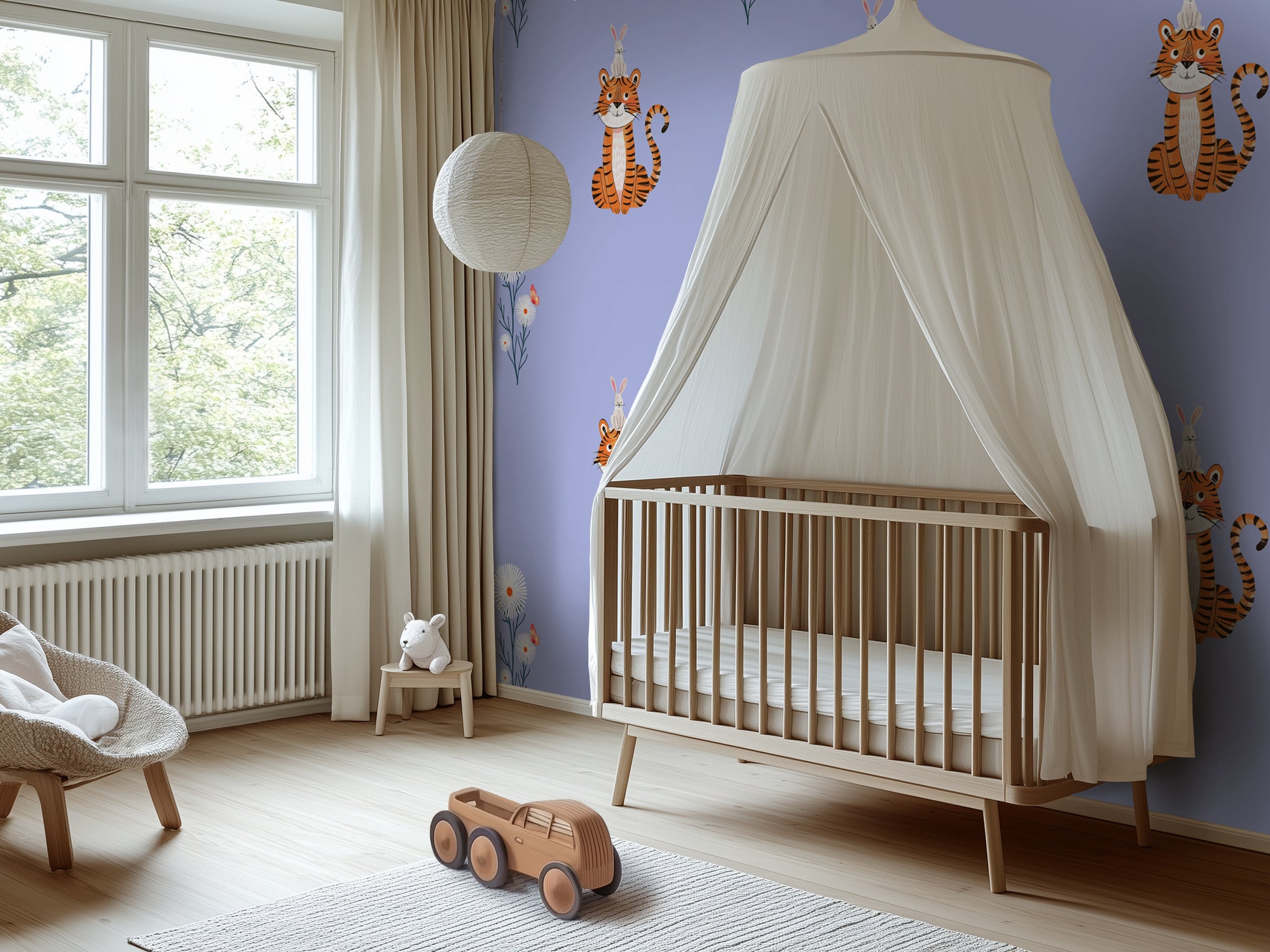Animal motifs and botanical prints are staples of modern kids’ design, but The Tiger and The Hare blends them with a surreal twist. This seamless wallpaper leans into the maximalist-minimalist mix: quirky characters and clean composition, soft hues and bold personalities. It also complements the rising trend of gender-neutral kids decor and imaginative wall art that feels handmade and personal.