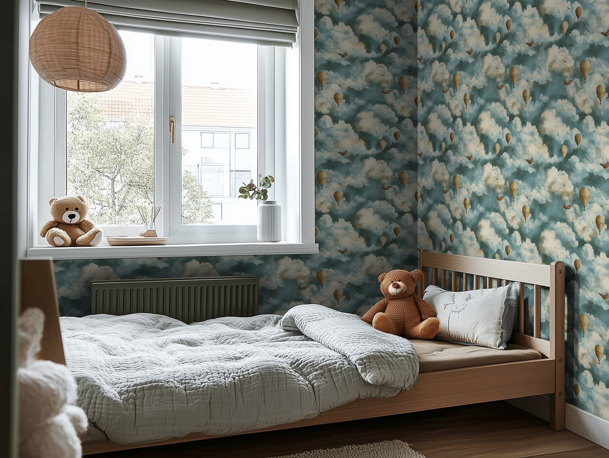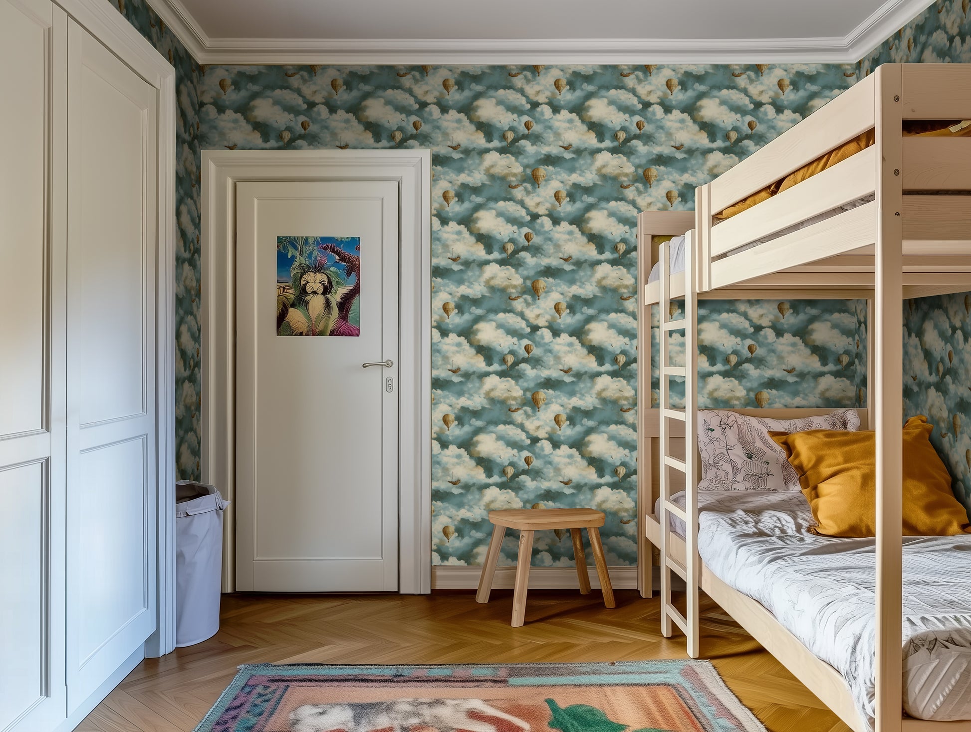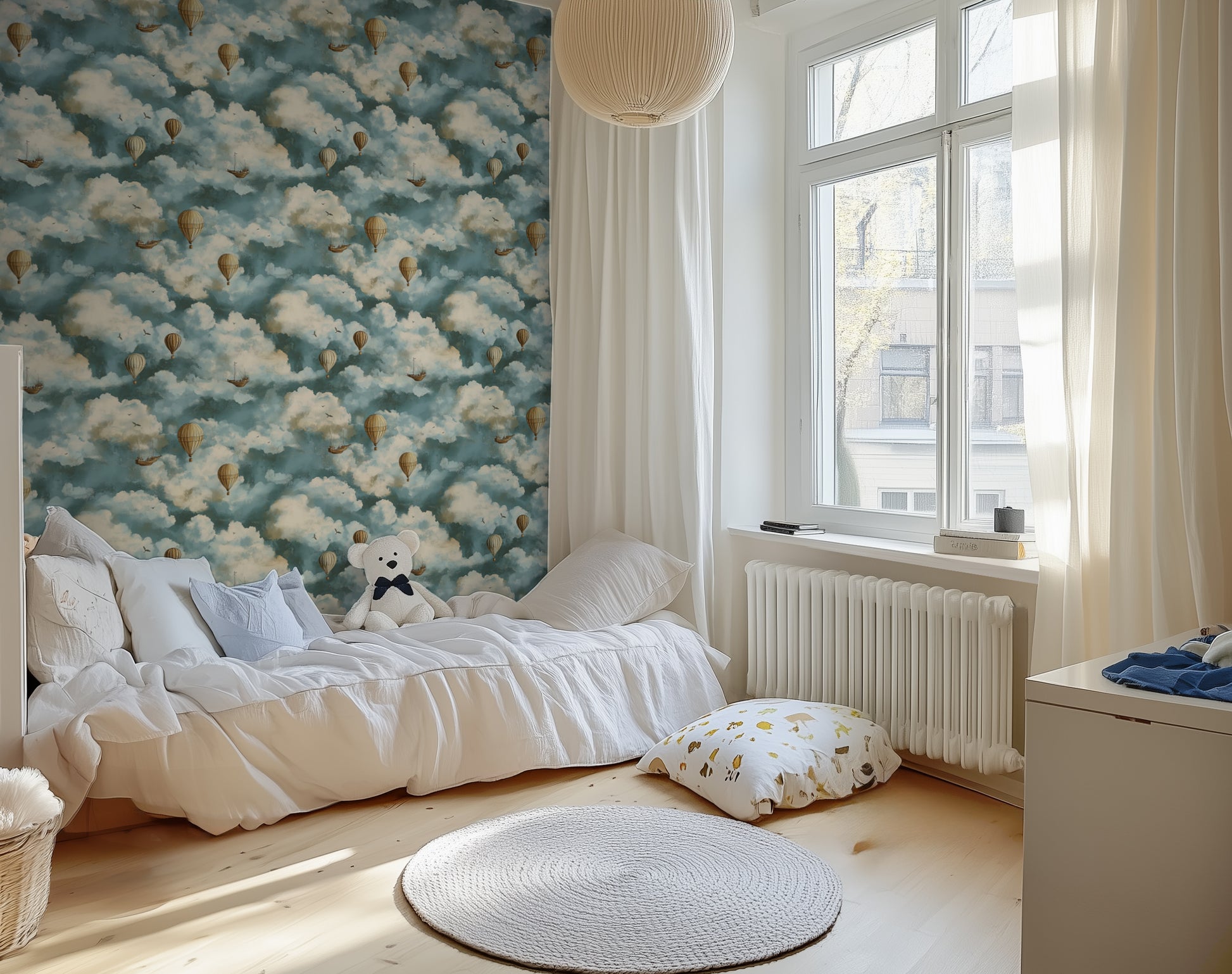 Part of the I Travel In My Dreams collection, this whimsical cloud wallpaper mural is perfect for nurseries, kids' bedrooms, or cozy reading nooks. Pair it with soft neutrals, antique brass, and natural wood accents to create a space that feels like a journey waiting to unfold.