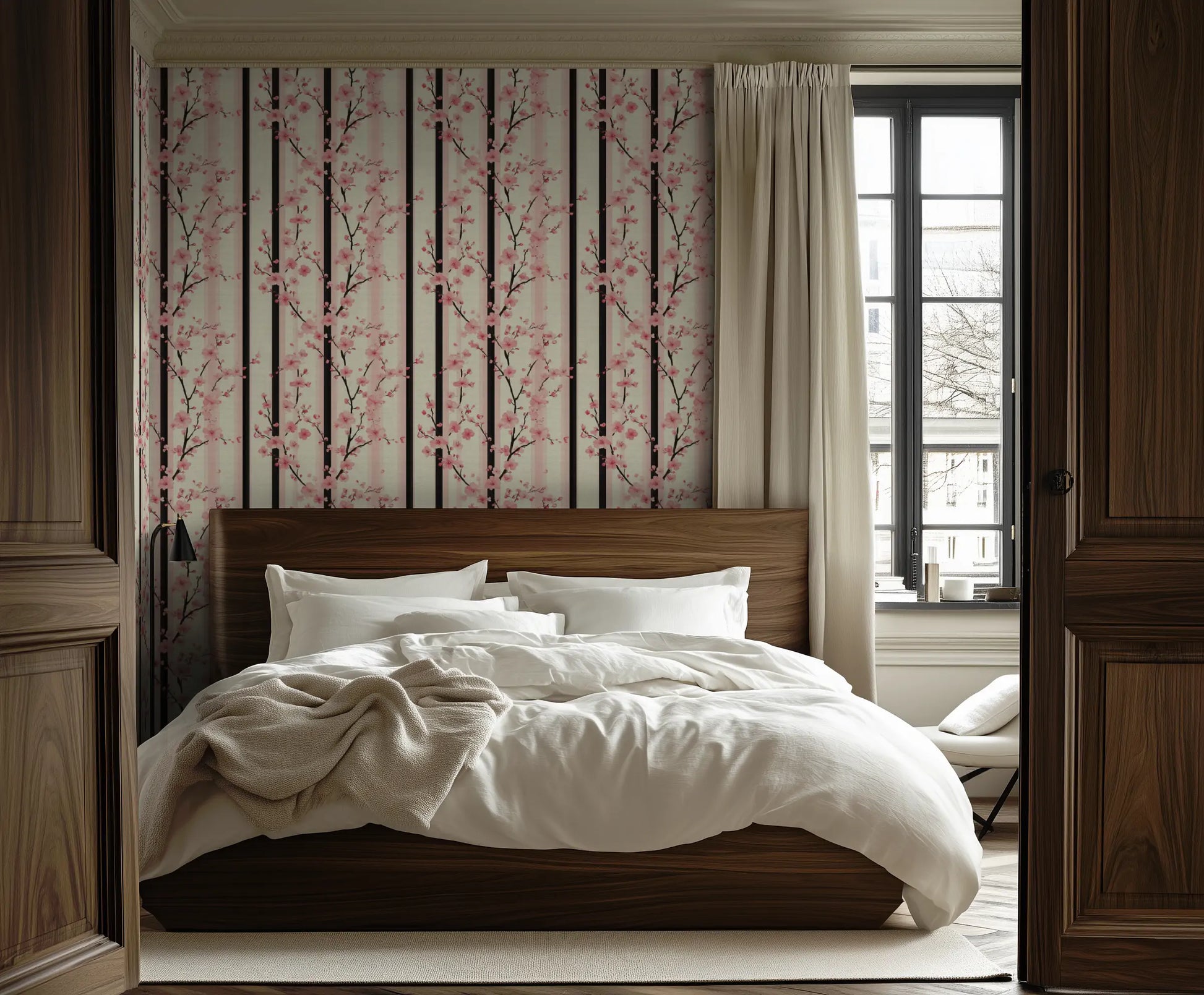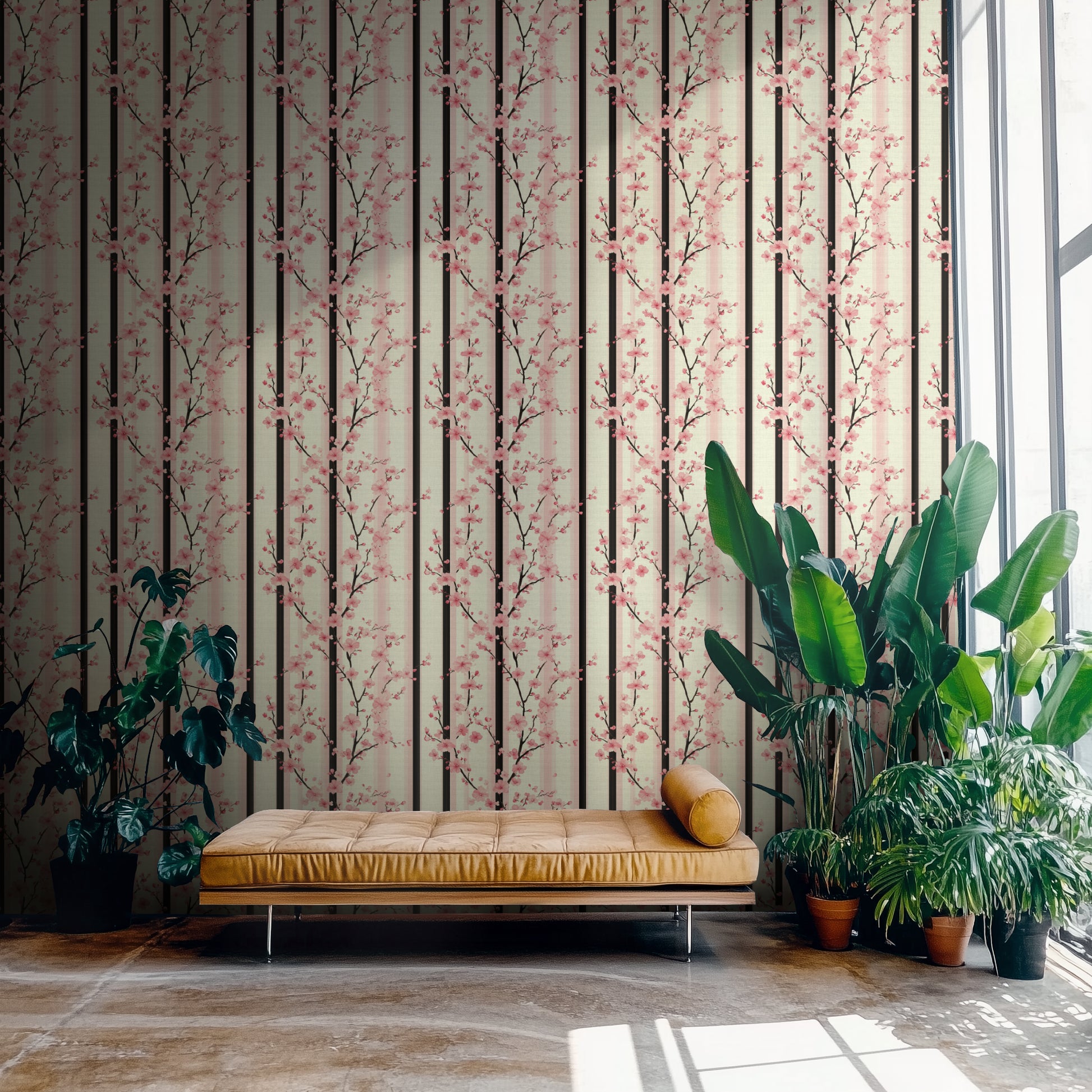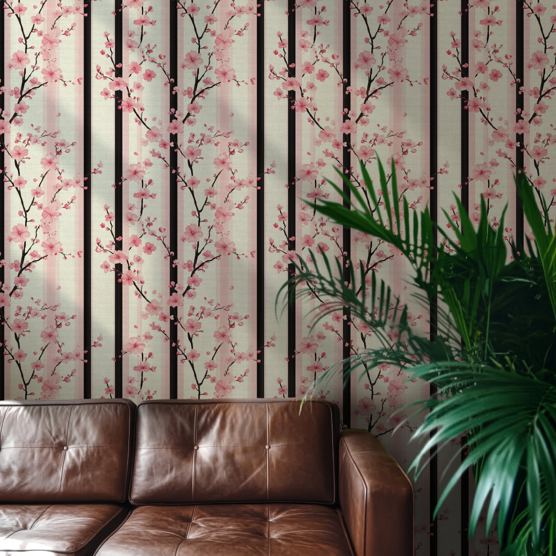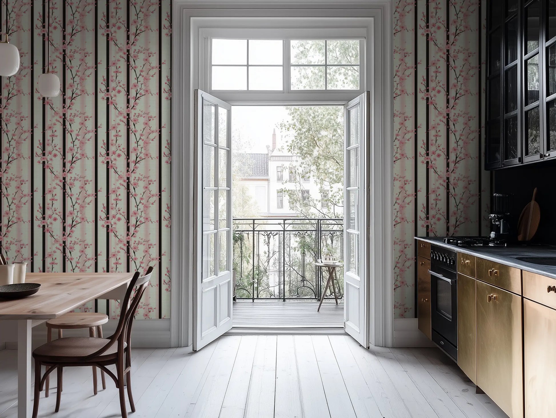 This isn’t a floral pattern—it’s a story in motion. Designed for art-driven interiors, dim-lit hideaways, or the kind of home that looks better after dark, this Japanese-inspired wallpaper pairs with bronze, black marble, and just the right amount of rebellion.