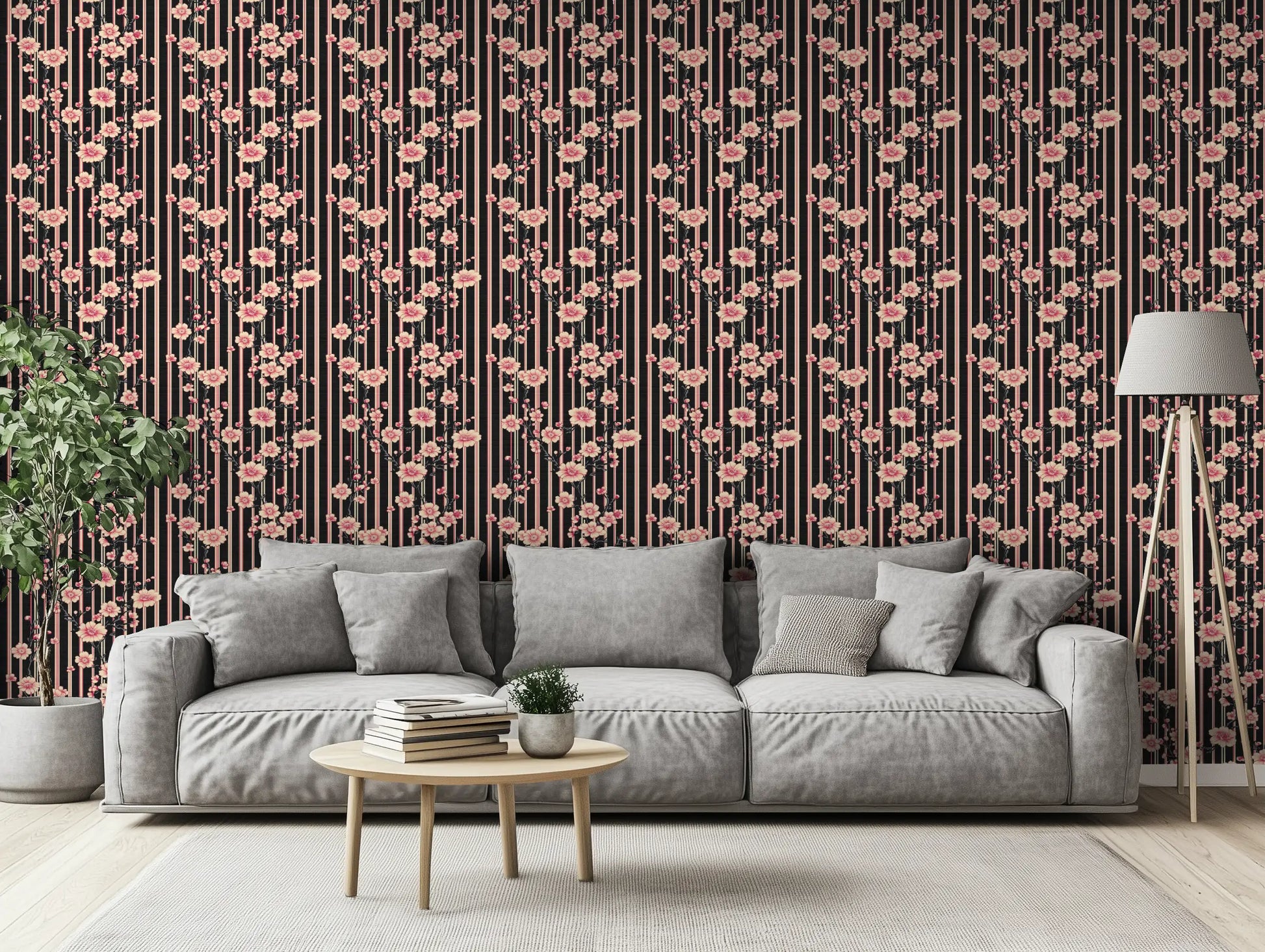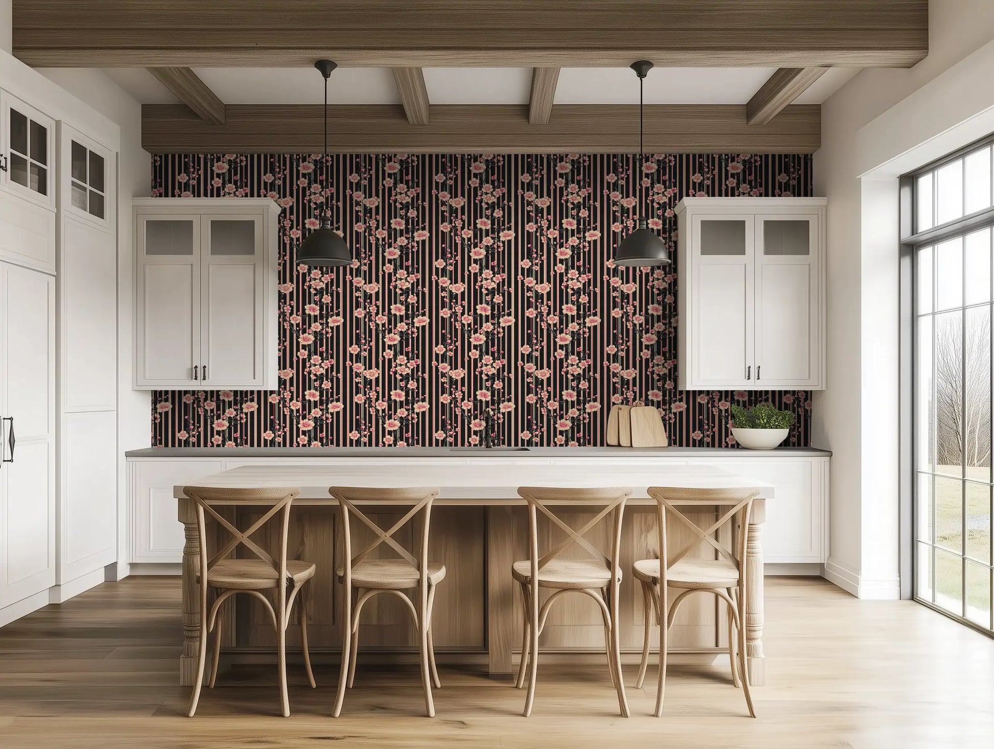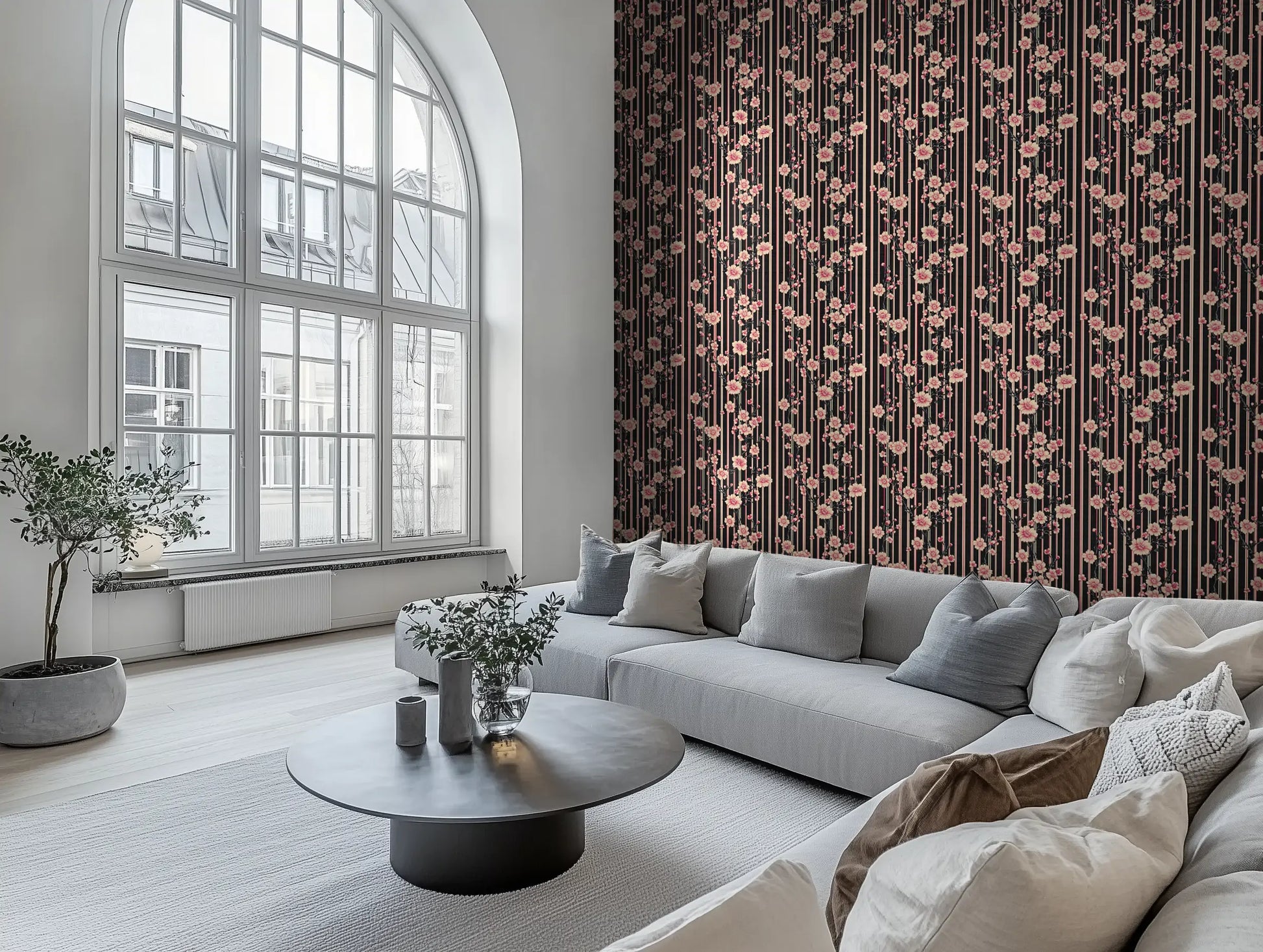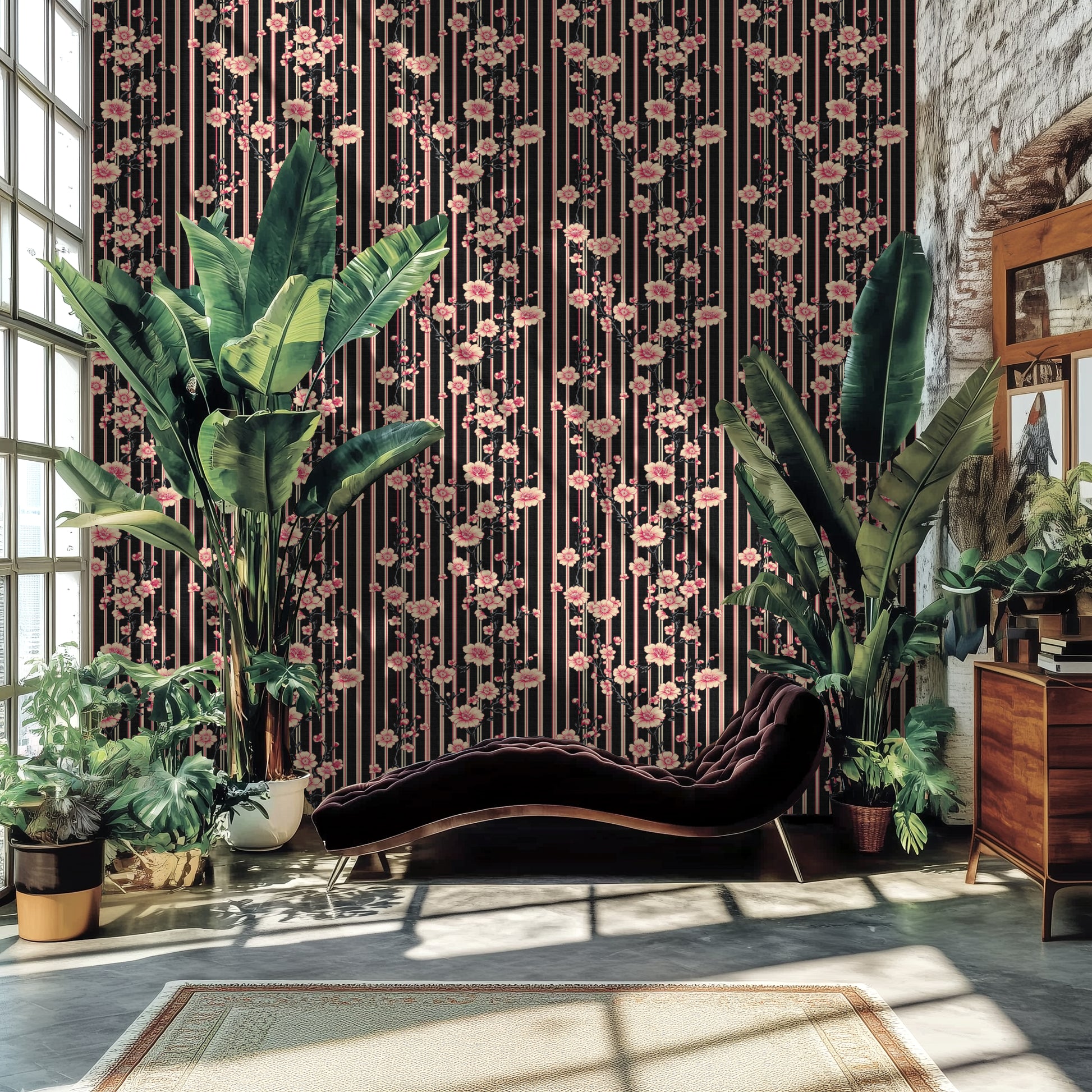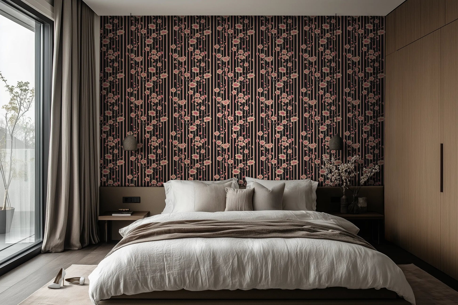 Designed for elegant yet moody interiors, this modern Japanese floral wallpaper pairs beautifully with aged wood, vintage brass, and soft, flickering candlelight. Because sometimes, the most beautiful things are the ones that refuse to be forgotten.