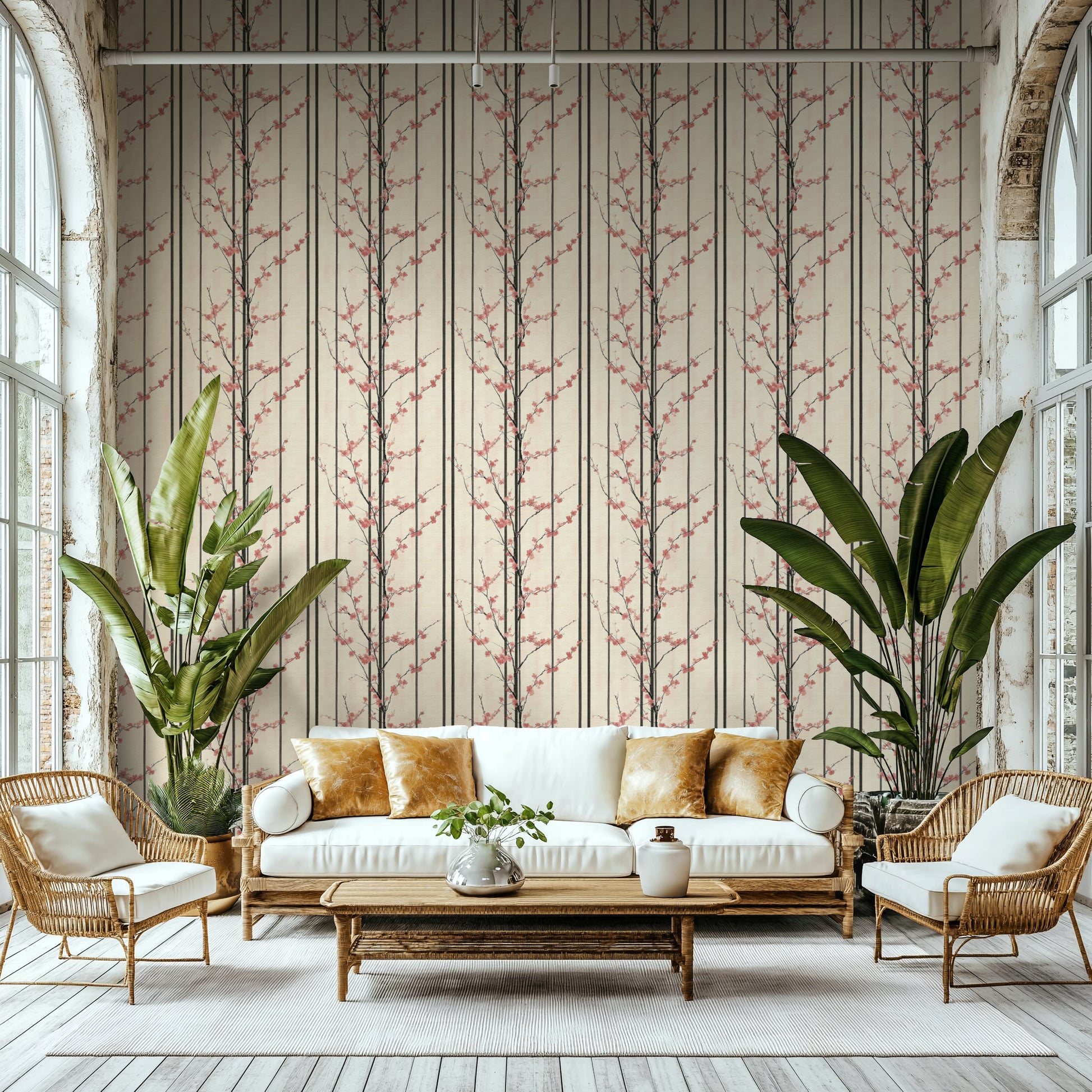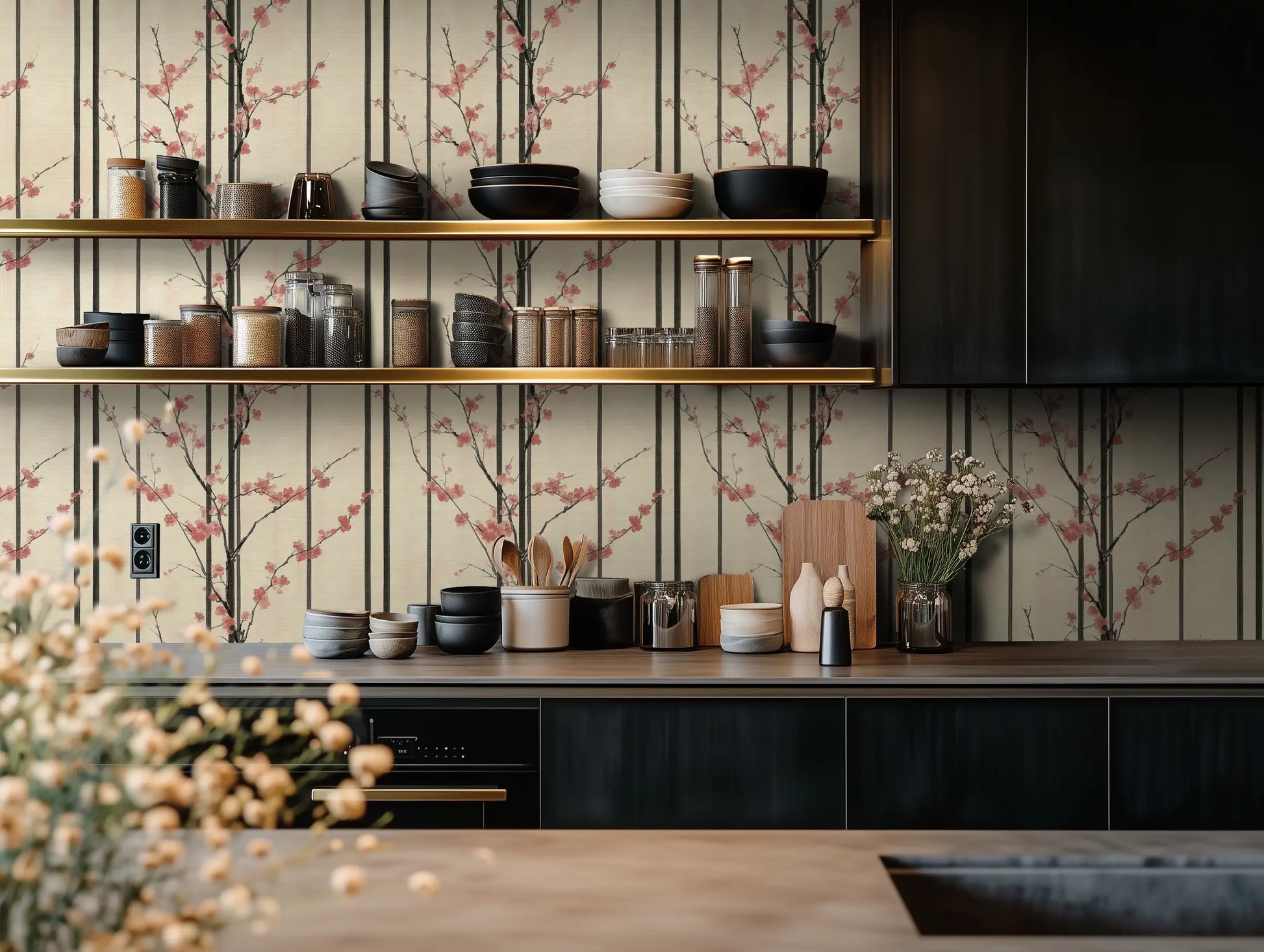 It’s the quiet between jazz notes, the rustle of silk before it disappears behind a shoji screen. Perfect for sultry bedrooms, dimly lit lounges, or that one room where the rules don’t apply, this Japanese cherry blossom wallpaper pairs effortlessly with smoked glass, warm wood, and candlelit shadows. Let the petals fall.