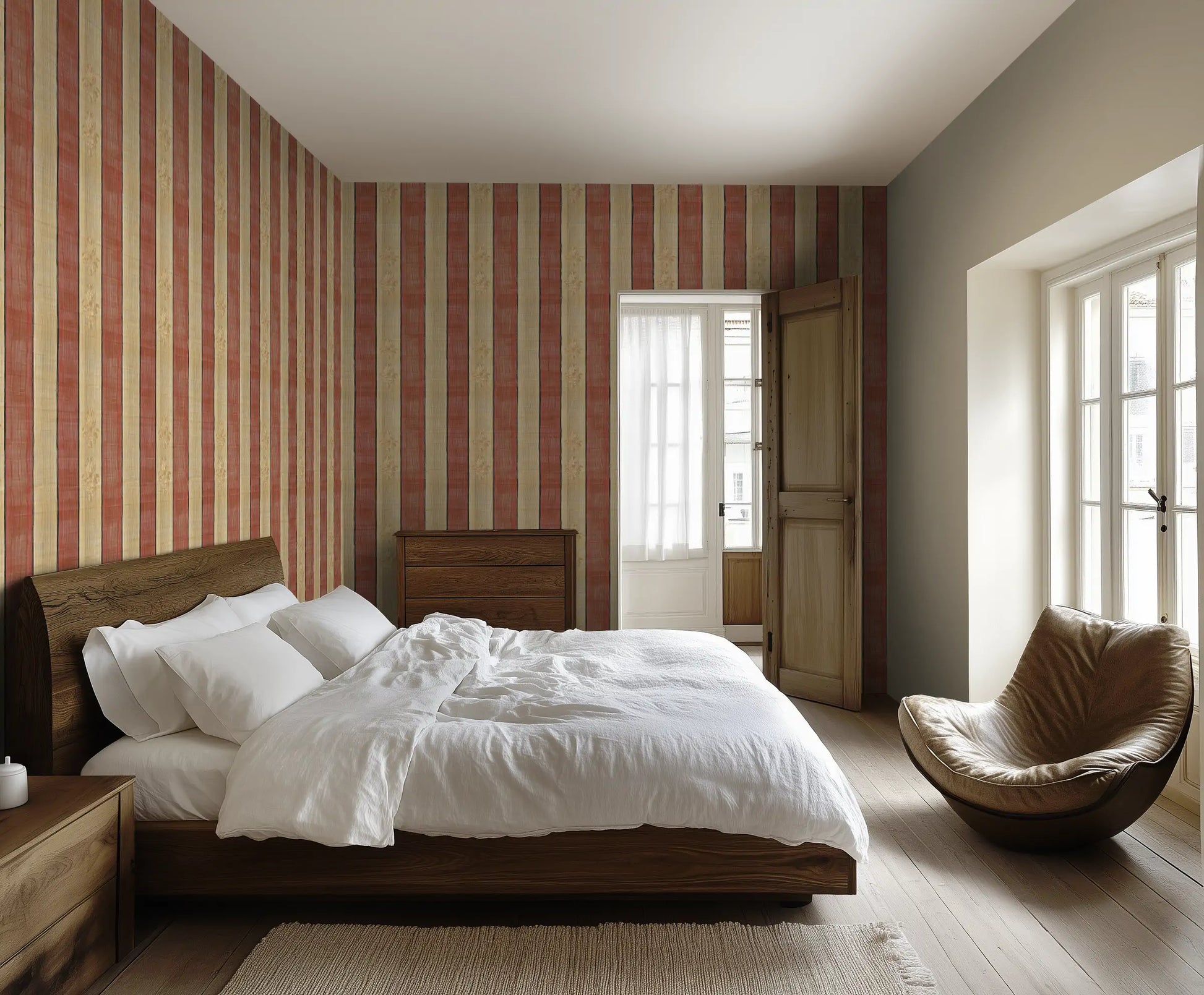 Centuries of craftsmanship are woven into the fabrics of the Marrakech souks. Desert Loom reflects that handmade beauty, where woven textures meet bold, earthy stripes, creating a wallpaper that feels both rustic and refined.