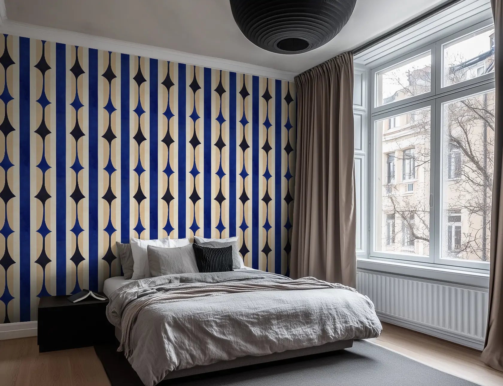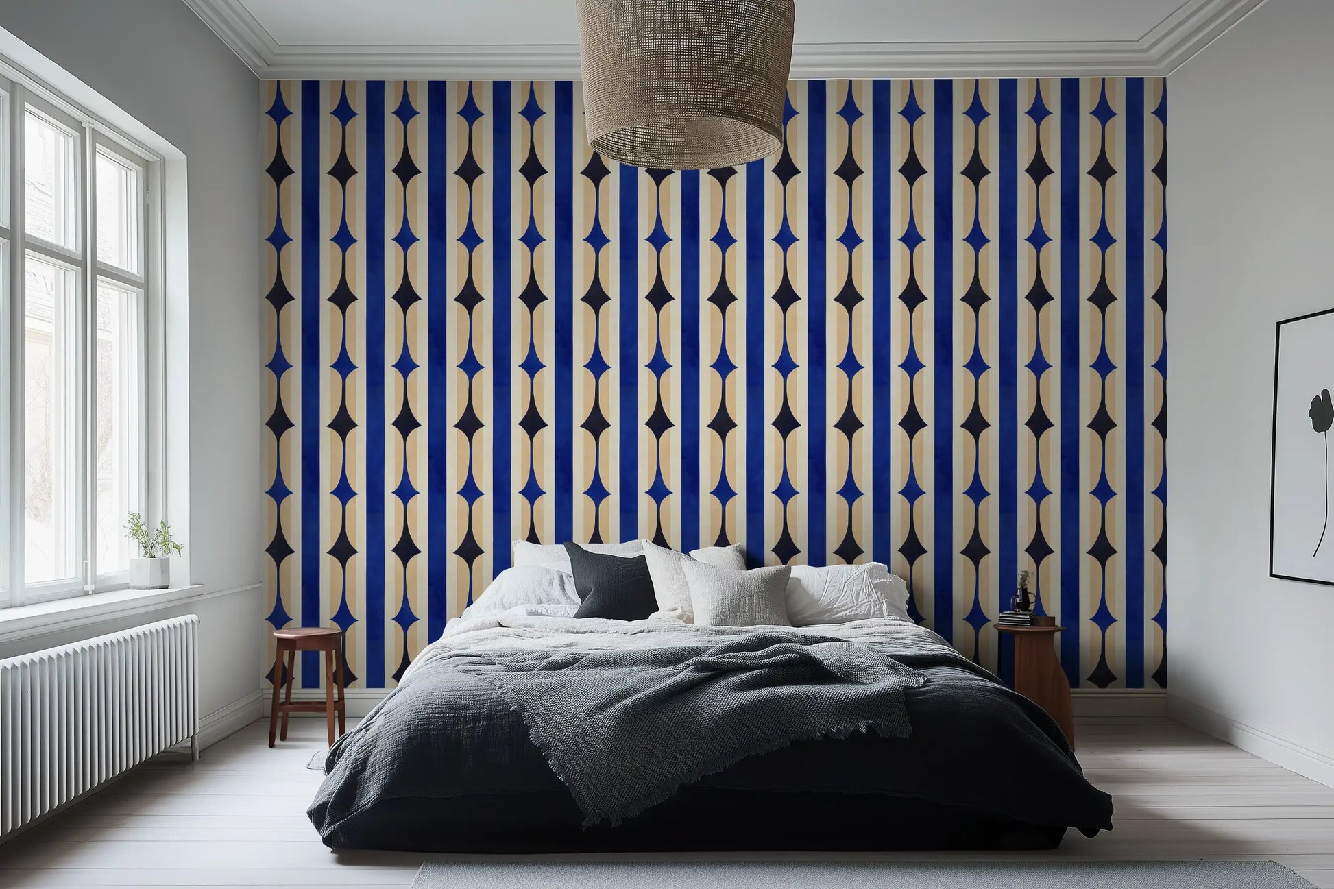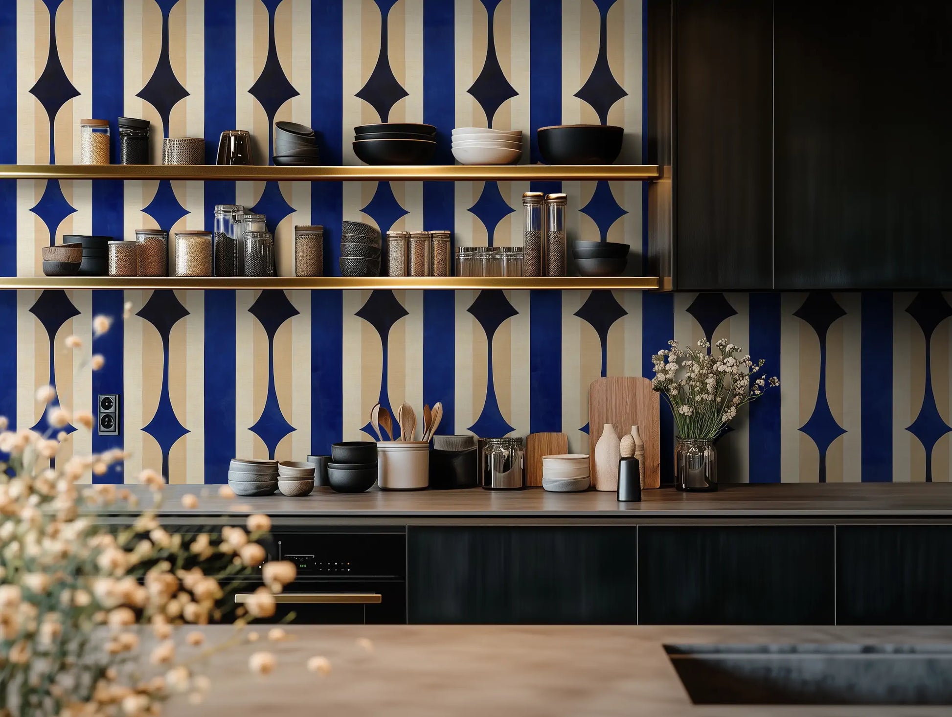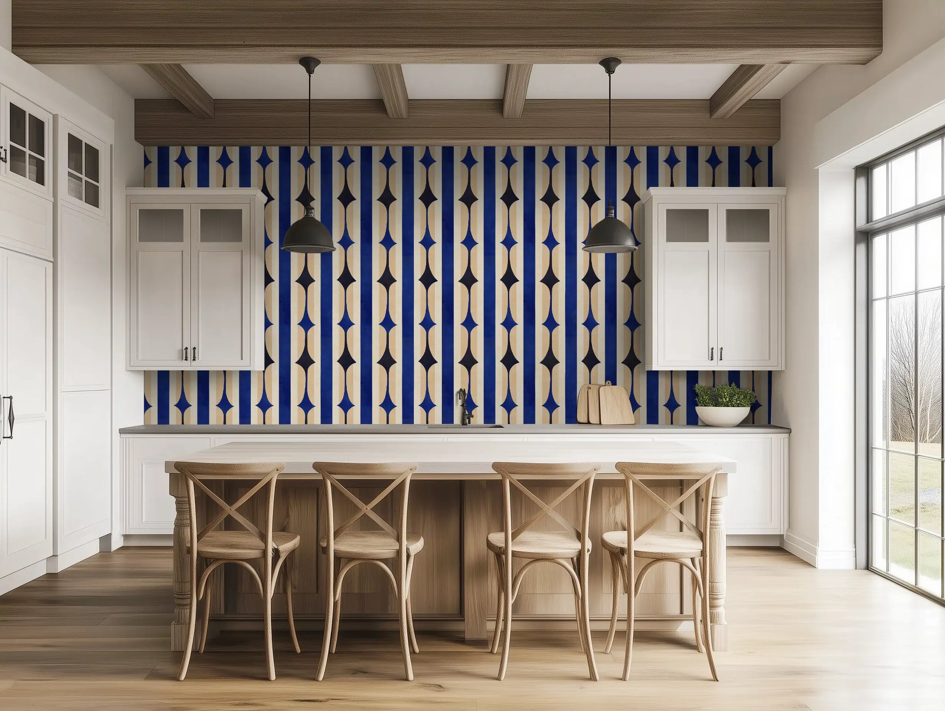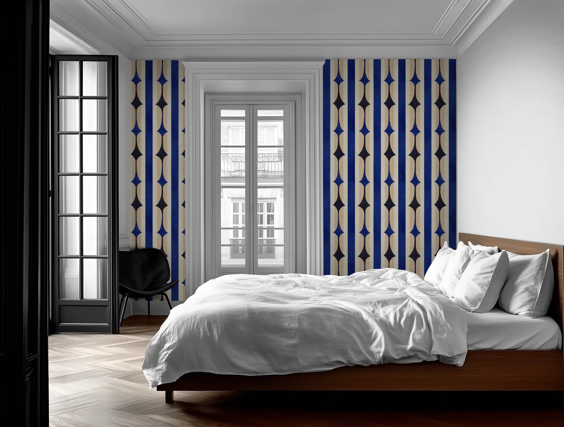Inside the walls of a hidden kasbah, artisans weave intricate Berber rugs, rich with history and symbolism. Kasbah Loom transforms these traditional textile designs into modern striped wallpaper, with a look that feels both handwoven and contemporary.