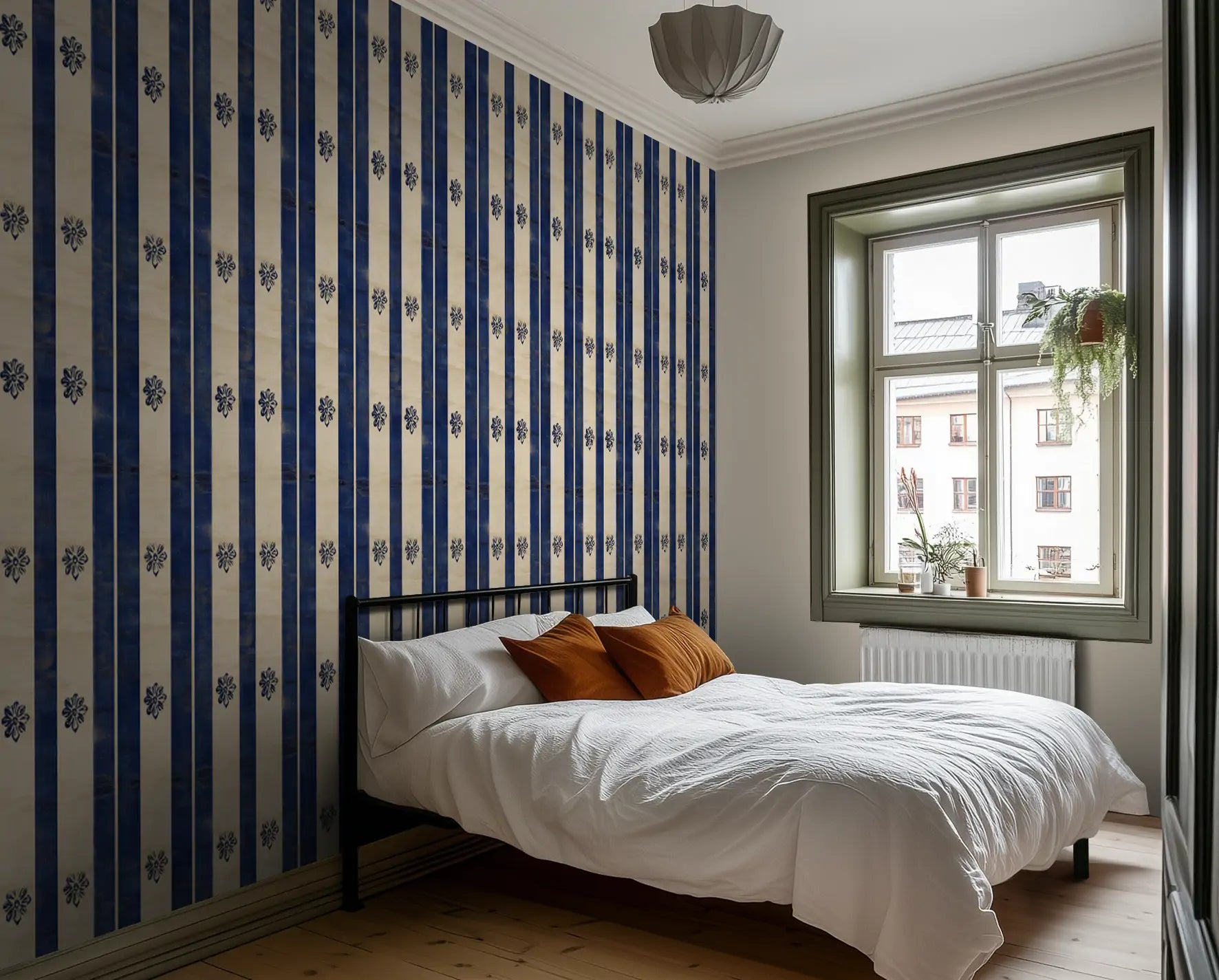 The structured beauty of Moroccan medinas, intricate tilework, and handwoven fabrics comes to life in Medina Stripe. This bold, geometric striped wallpaper blends traditional North African motifs with a modern, architectural feel, making it the perfect fit for statement walls, art deco interiors, and Moroccan-inspired homes.