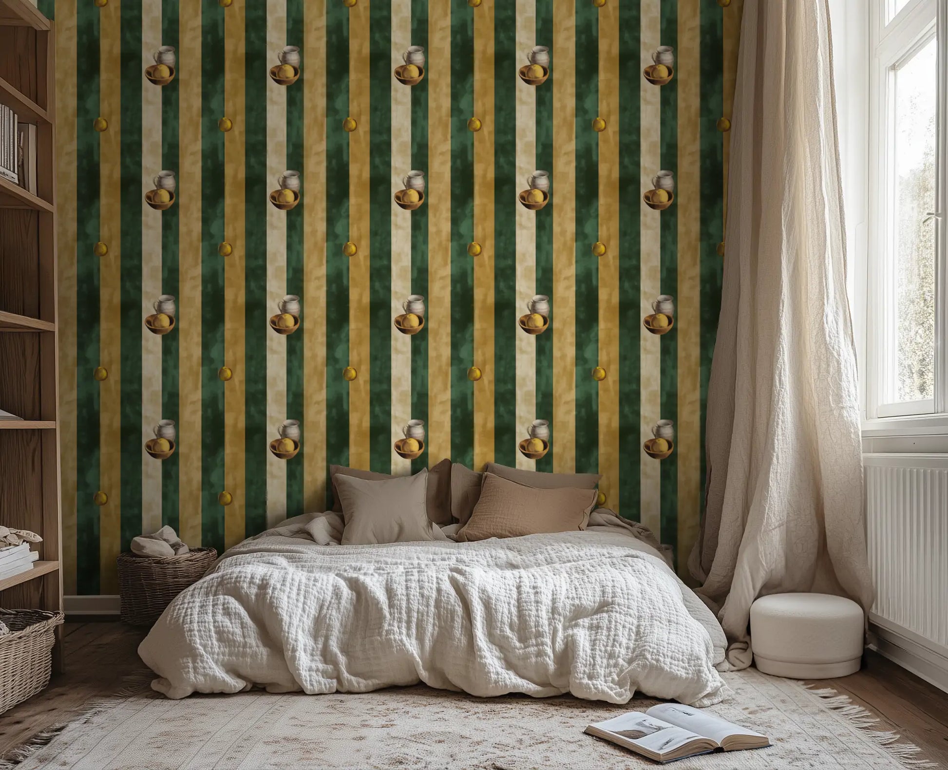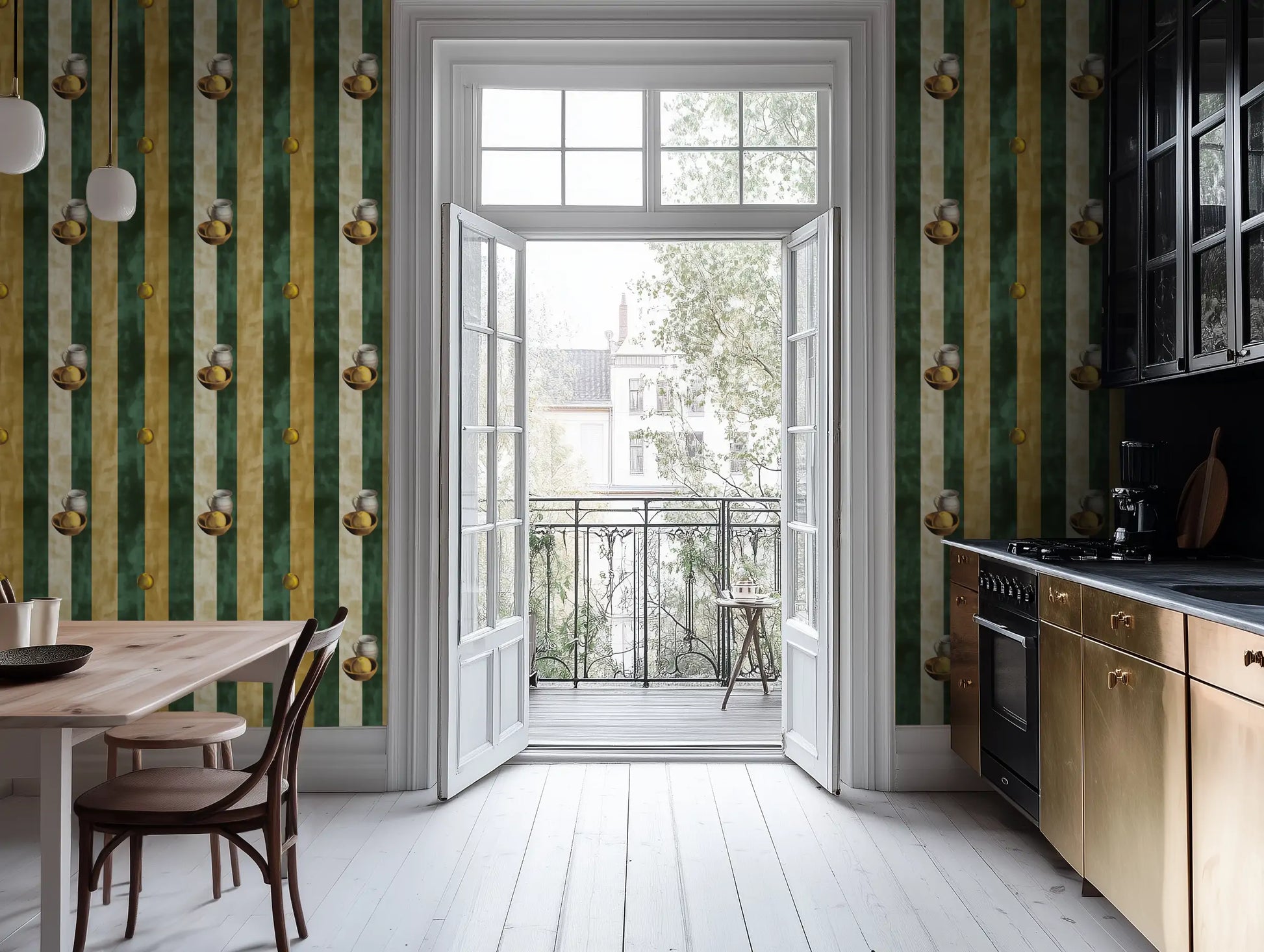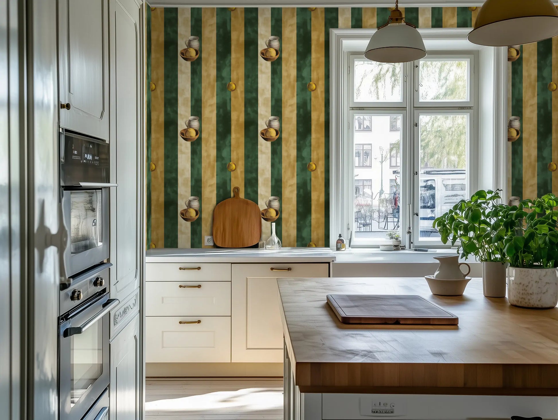 Why it’s great: The painterly texture and organic depth make this more than just a striped wallpaper—it’s a piece of art. Ideal for Mediterranean-inspired spaces, cozy kitchens, and sunlit living rooms.