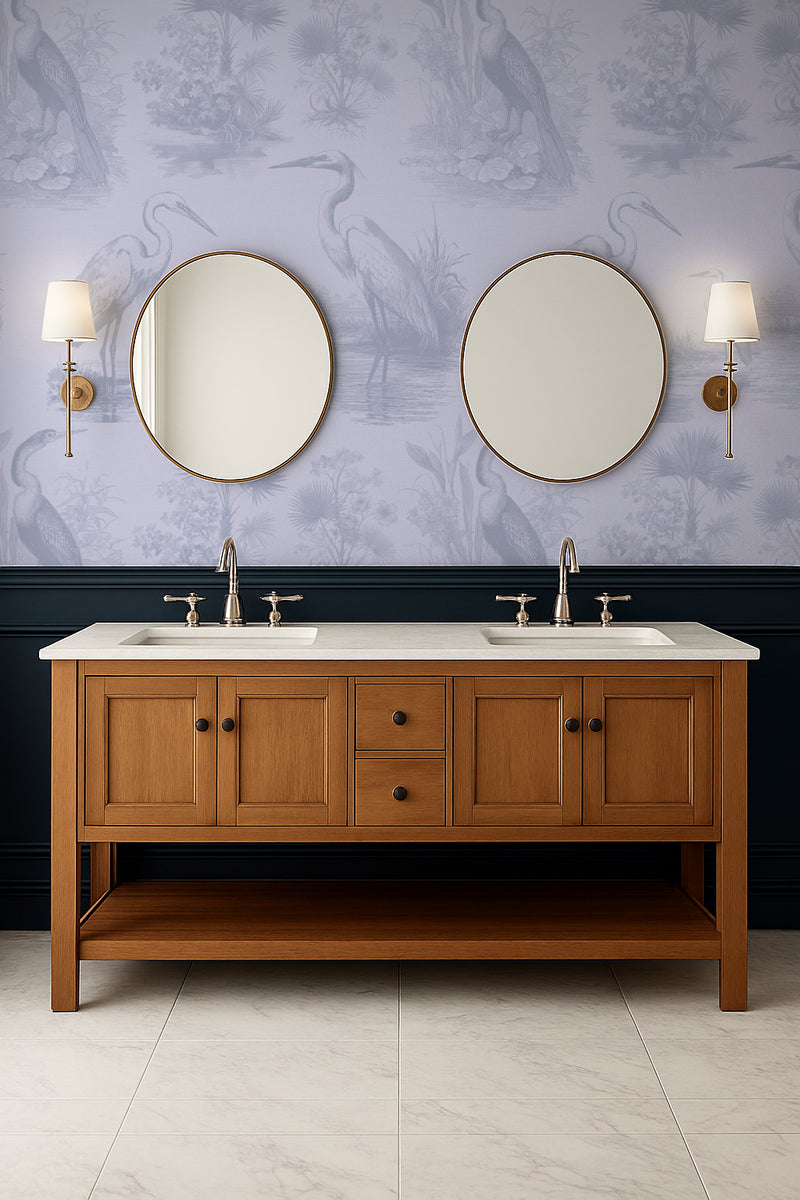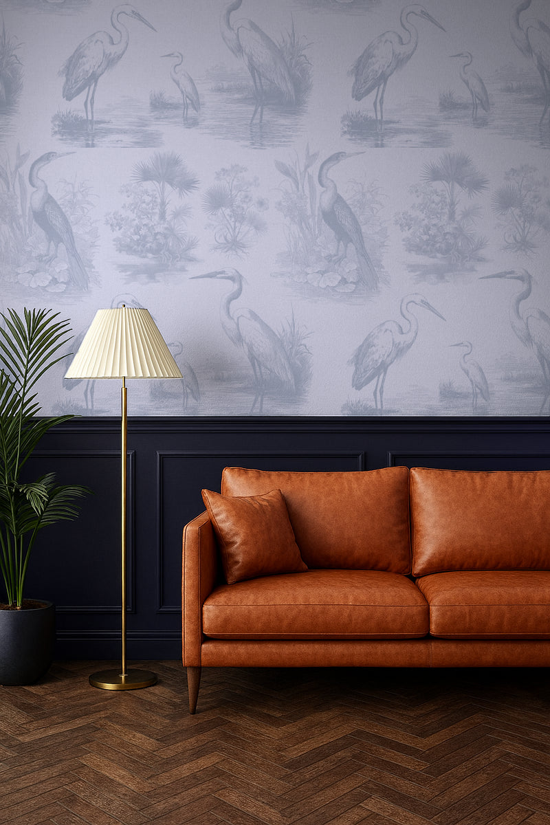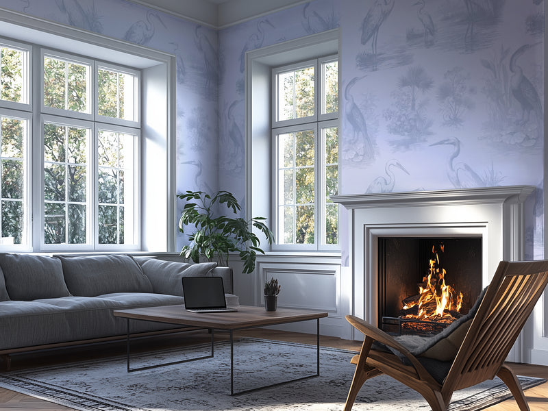 Pale lilacs, greys, and cool-toned neutrals are trending in modern home décor, especially in spaces designed for rest and reflection. Dusty Periwinkle on Soft Lavender Grey fits seamlessly into this movement, offering a lavender-grey wallpaper that feels natural, timeless, and quietly luxurious.