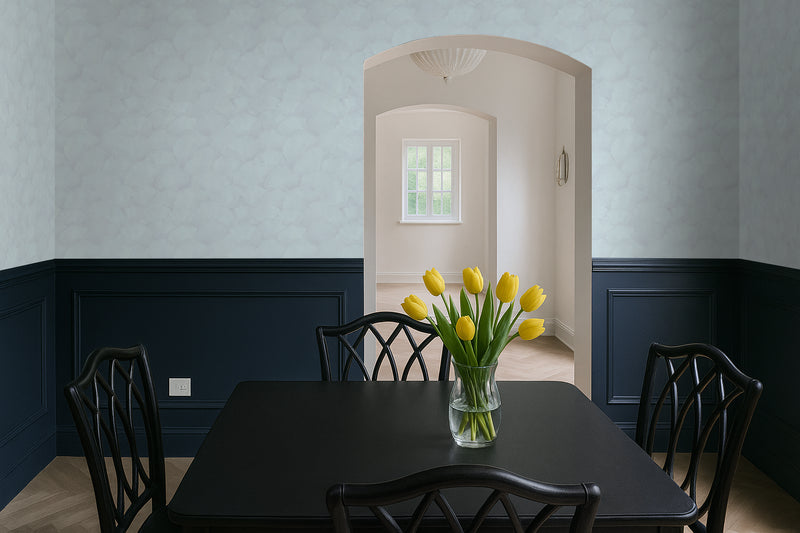 Ocean-inspired design is having a renaissance in interior décor, with soft blues, pearlescent finishes, and shell-inspired textures surfacing in everything from ceramics to textiles. This wallpaper fits seamlessly into coastal interiors, spa-like retreats, and serene modern homes, grounding spaces in the quiet luxury of natural detail.