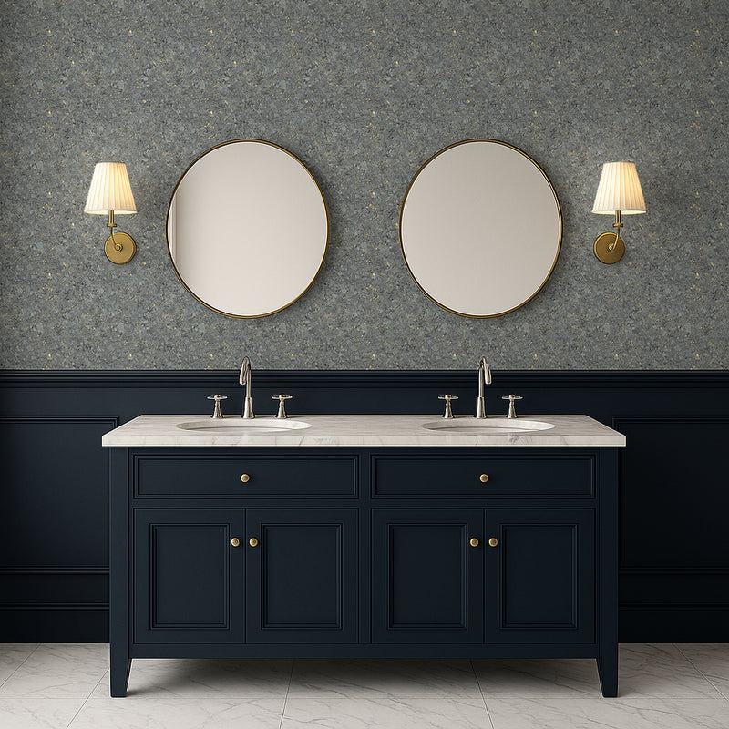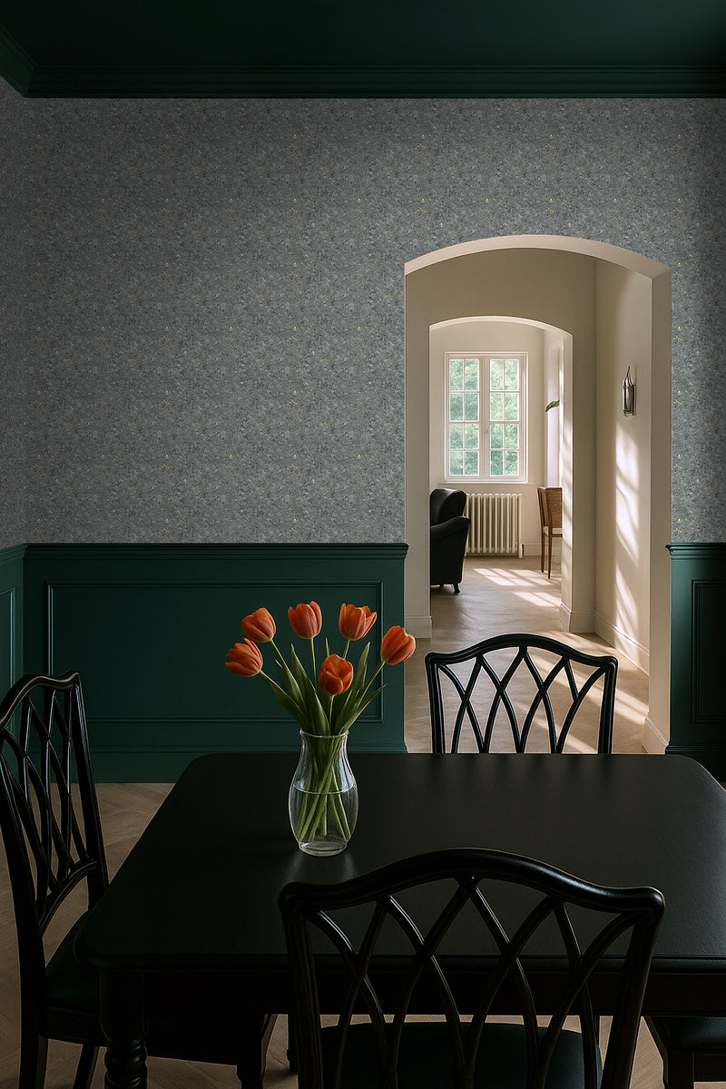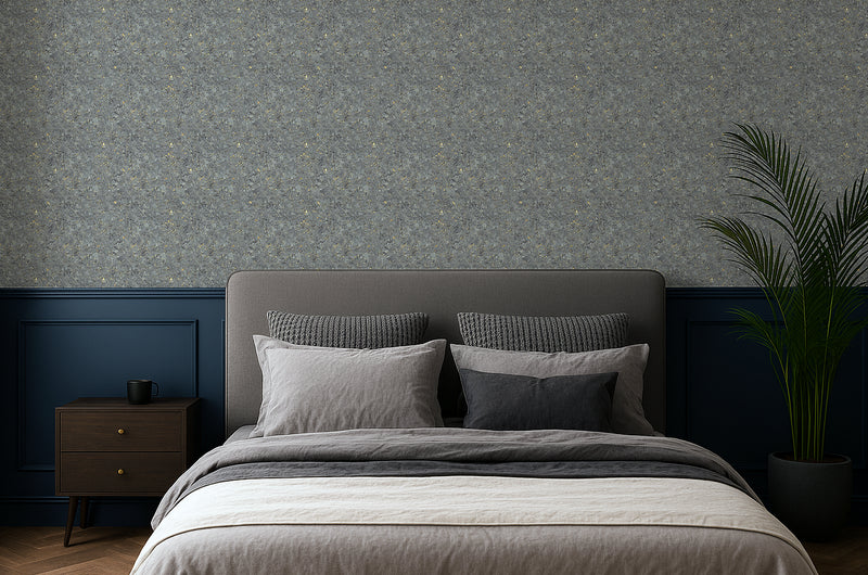 Mossbound Cork – Slate Grey Stone with Gold Fleck combines a deep slate-grey base with muted gold accents, evoking the feel of weathered stone with a whisper of refinement. It’s moody but versatile — perfect for grounding modern interiors in natural calm.