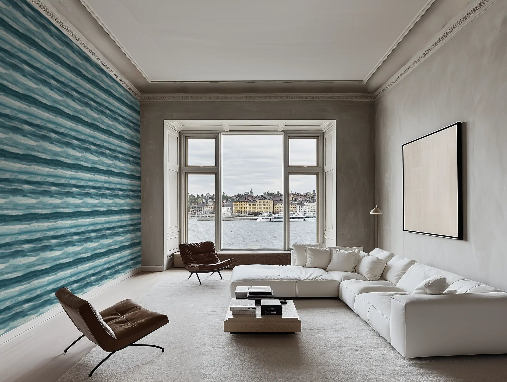A bold statement in Ocean Palettes, this wallpaper channels the power of a restless sea, bringing movement and contrast into modern interiors.