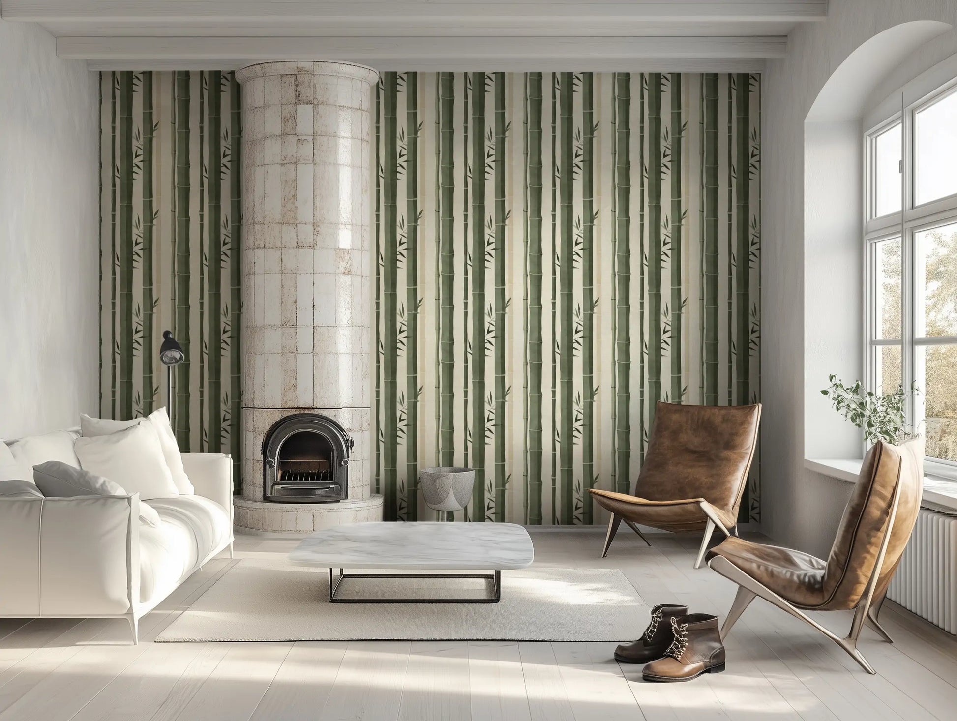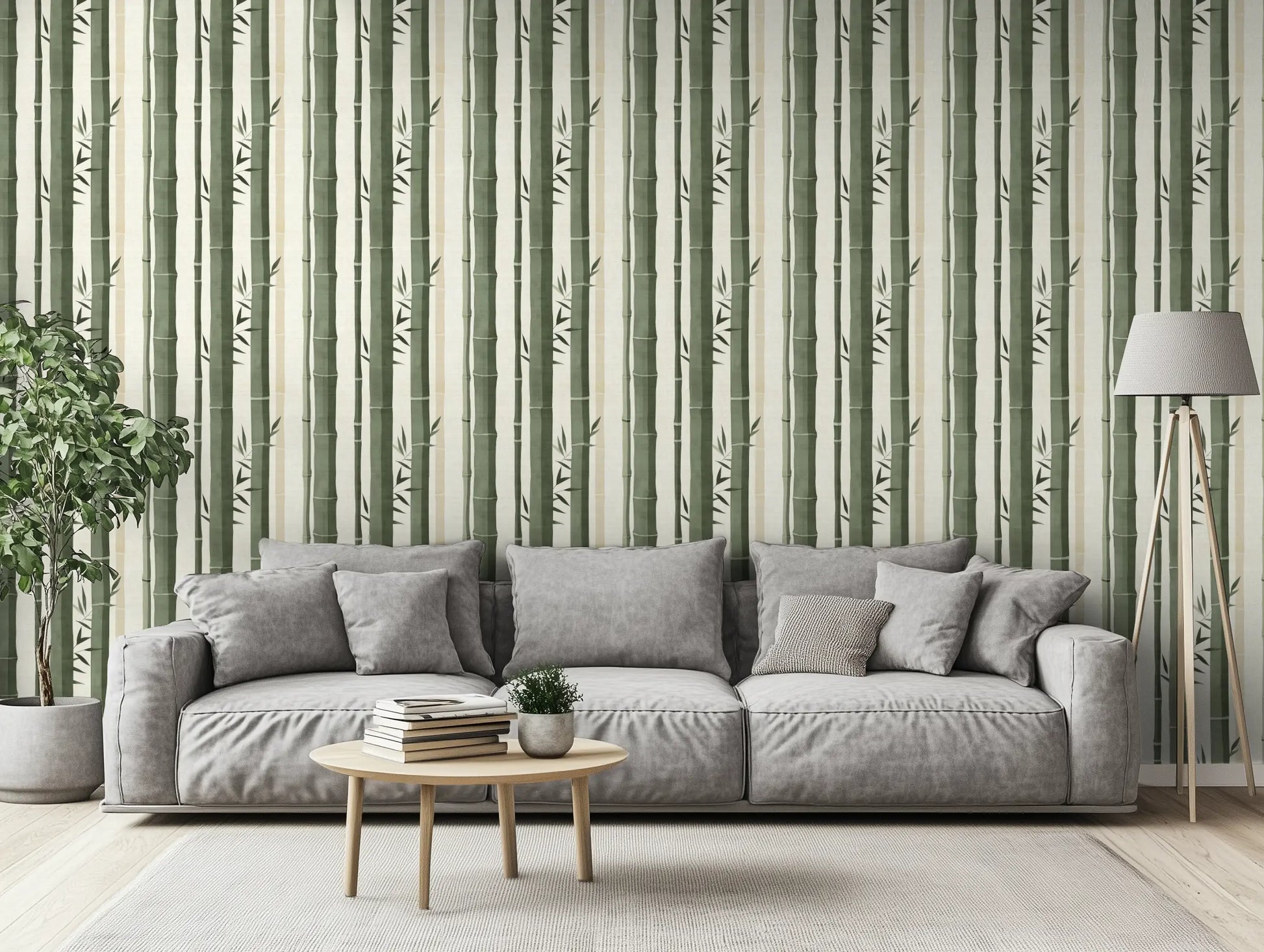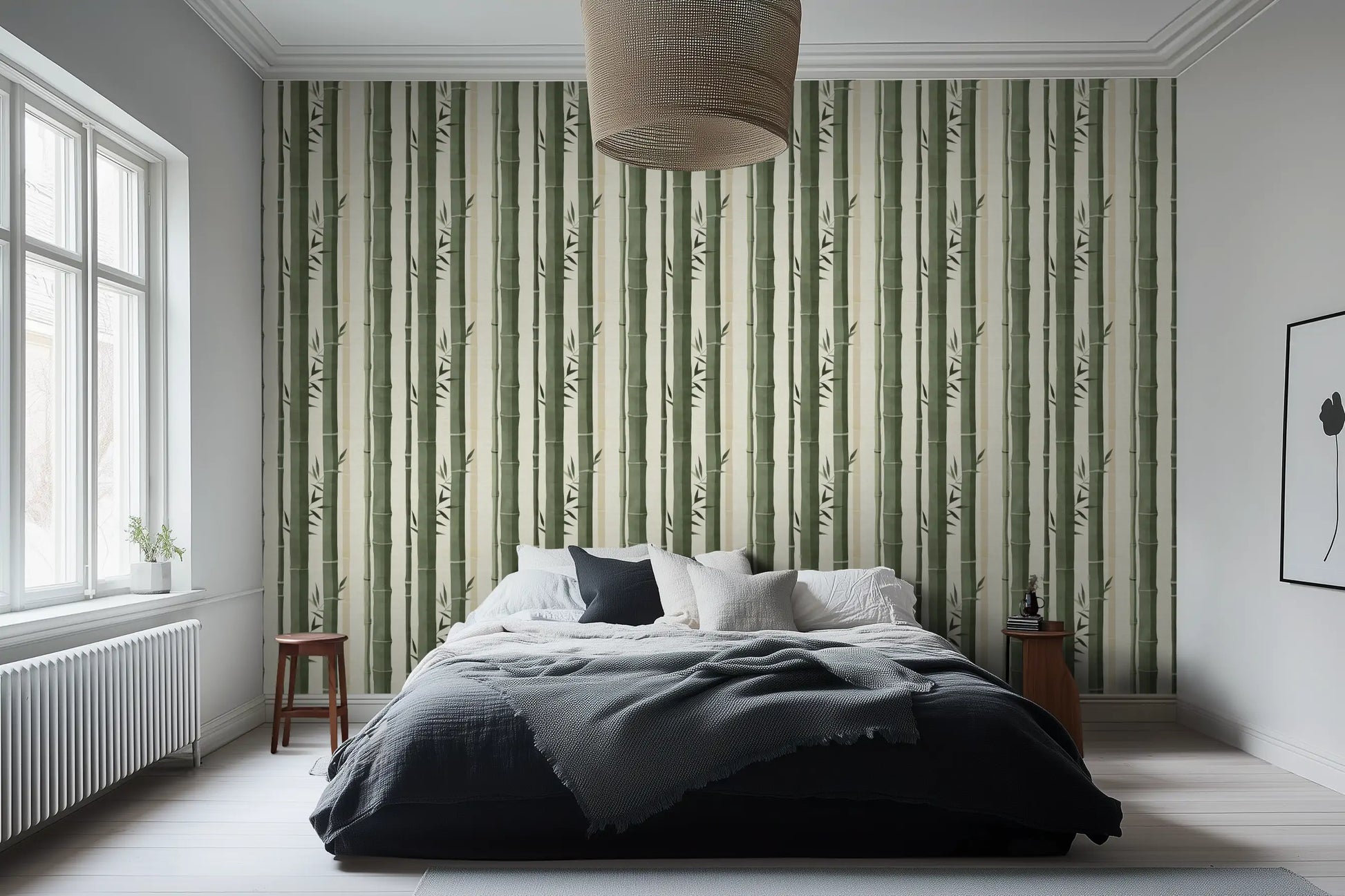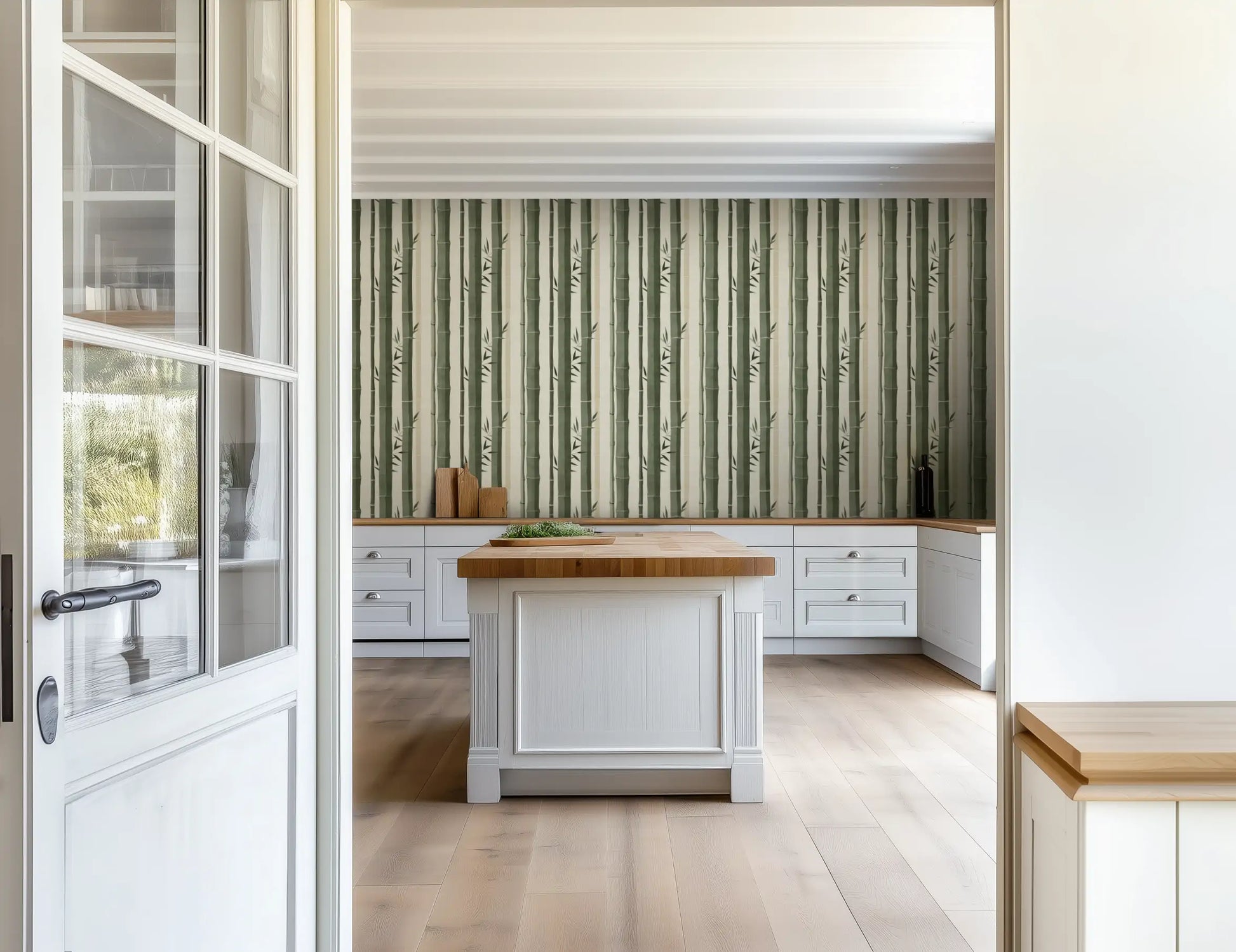 This sunlit bamboo wallpaper is an ode to balance—where the strong verticality of bamboo meets the softness of a hand-painted finish, evoking the serenity of a hidden grove in Kyoto’s Arashiyama forest.