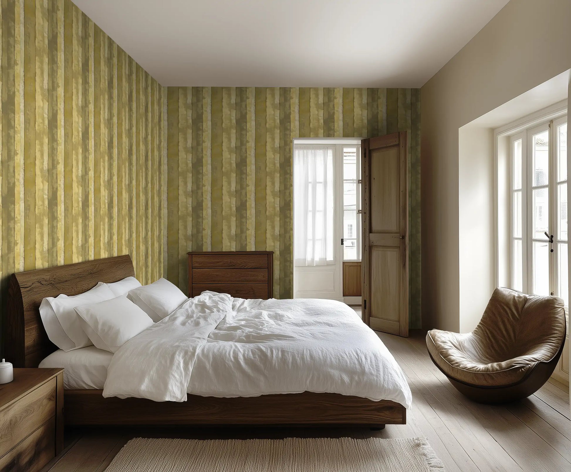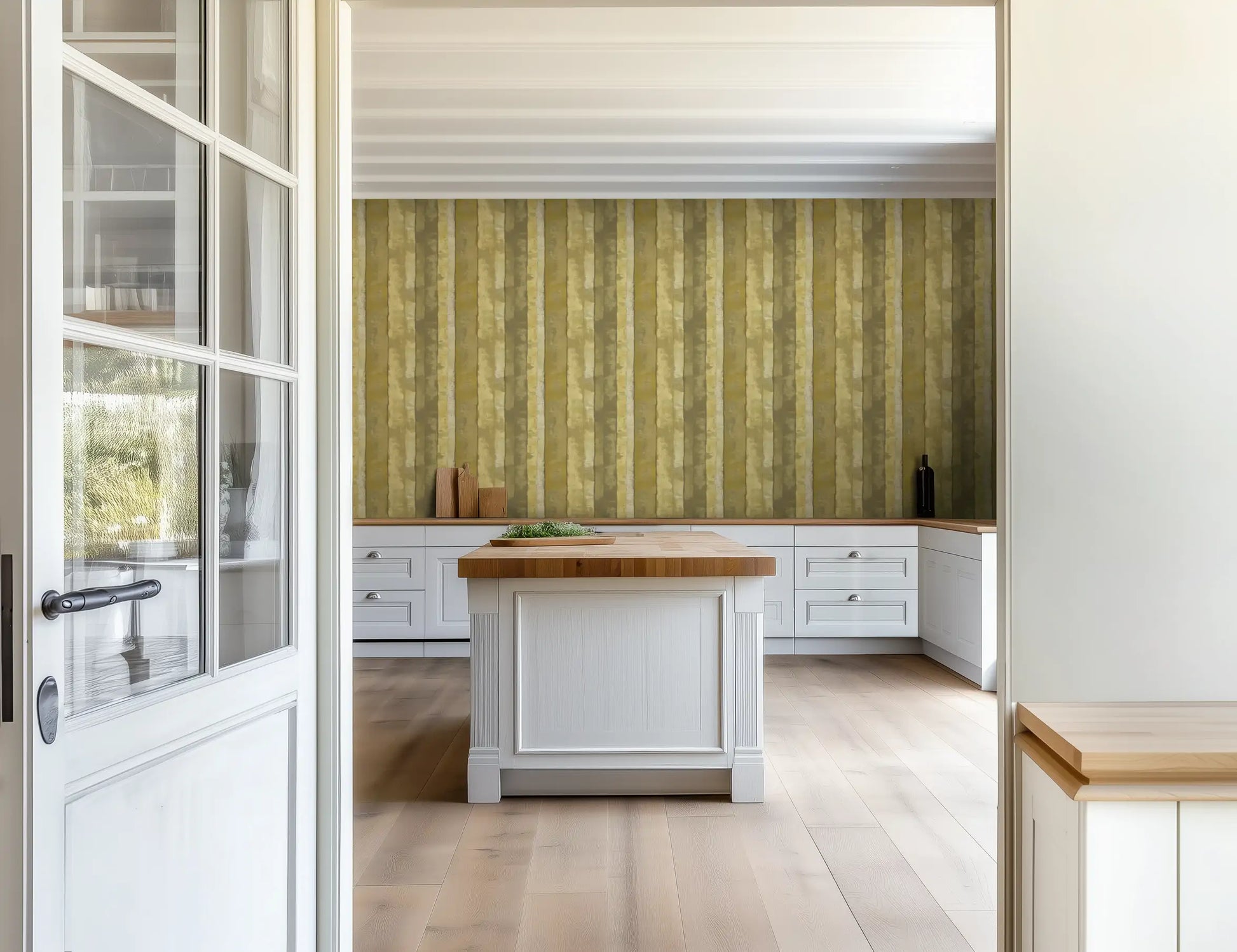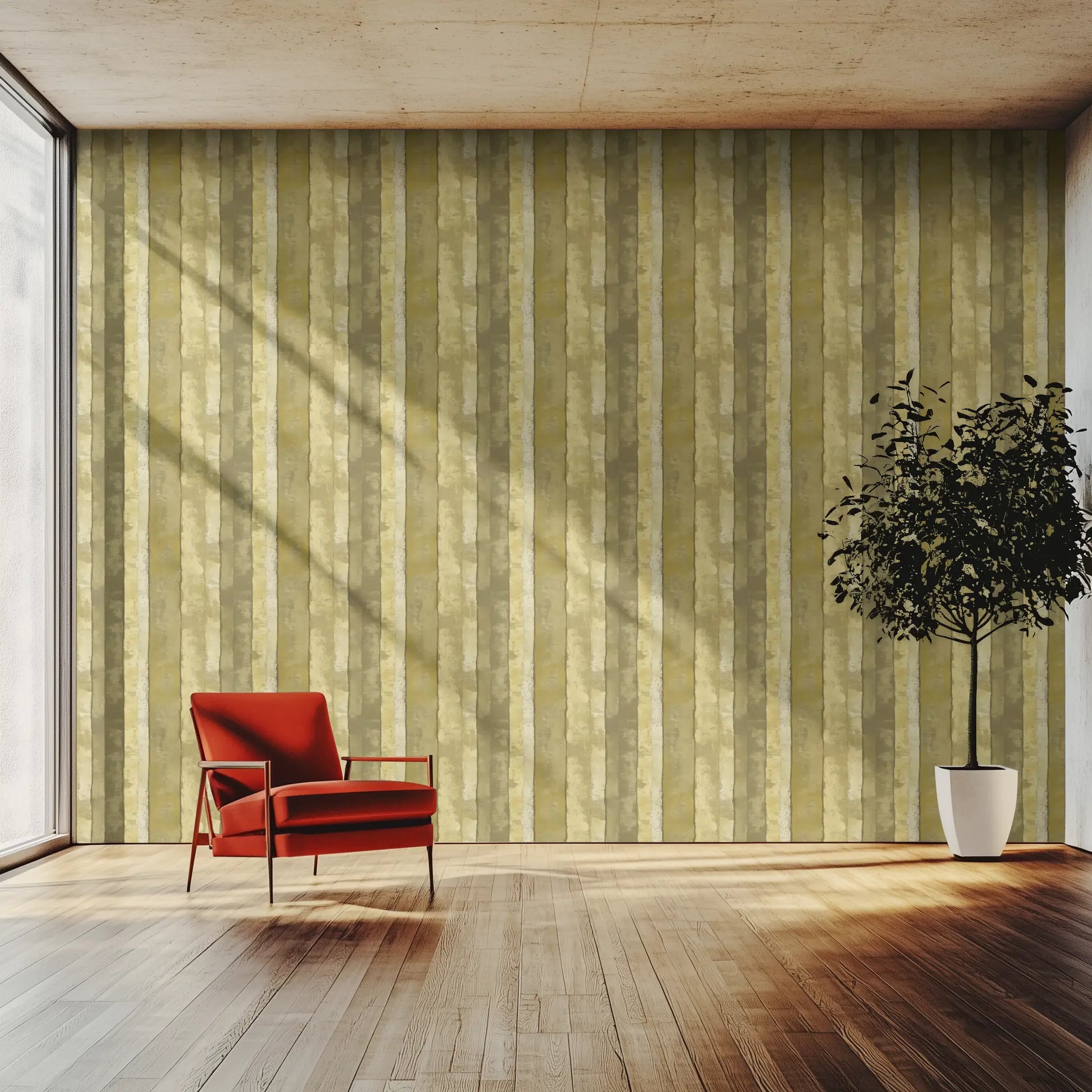 The vineyards of Tuscany shimmer under the afternoon sun, their golden hues blending seamlessly with the land’s earthy richness. Sun-Kissed Vines transforms this magic into a sophisticated striped wallpaper, featuring wheat yellows, ochre tones, and warm neutrals in a classic vertical pattern that elongates any space.