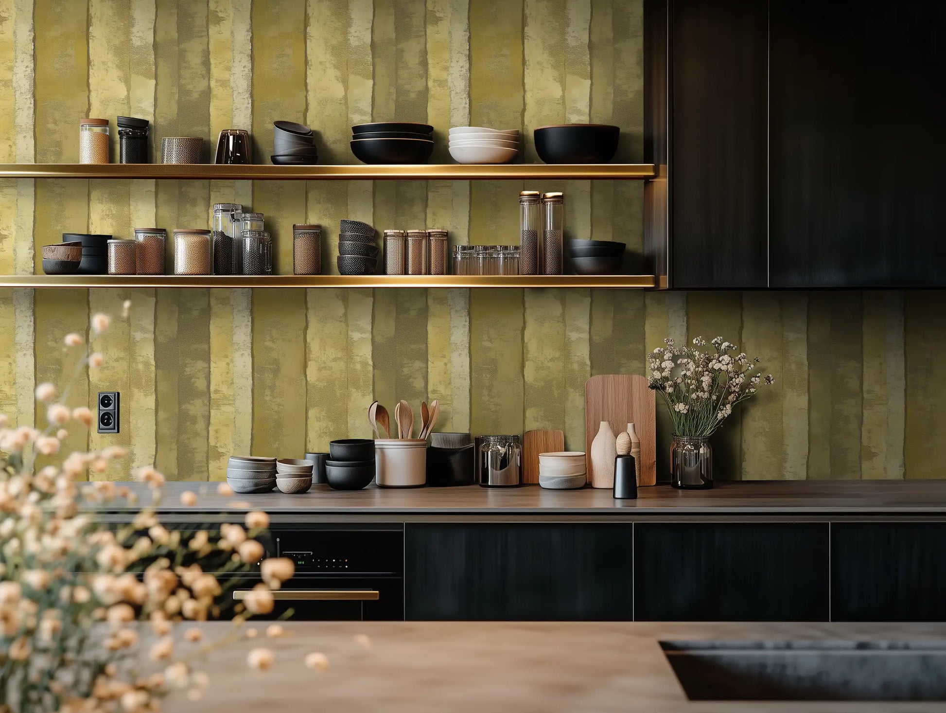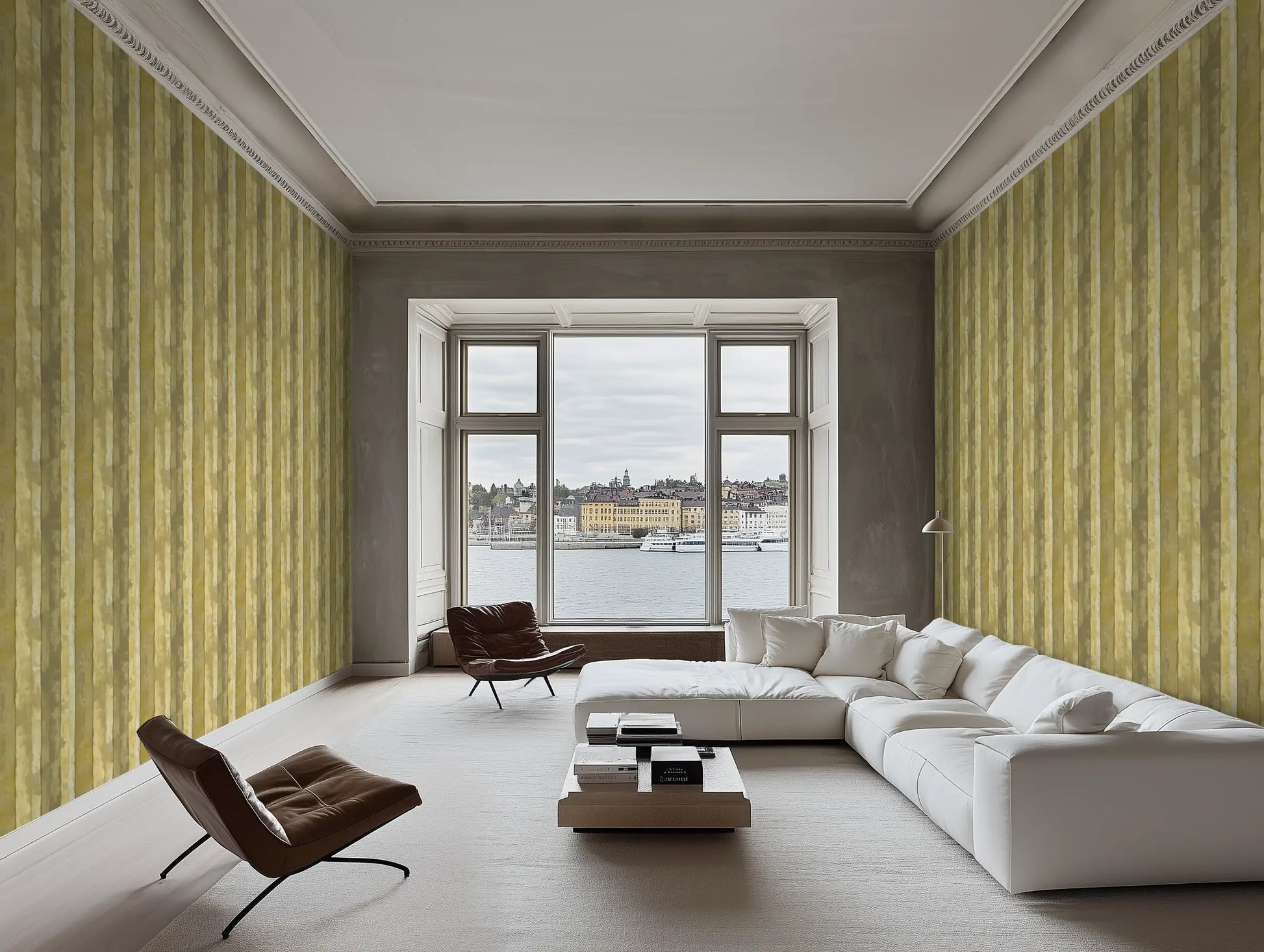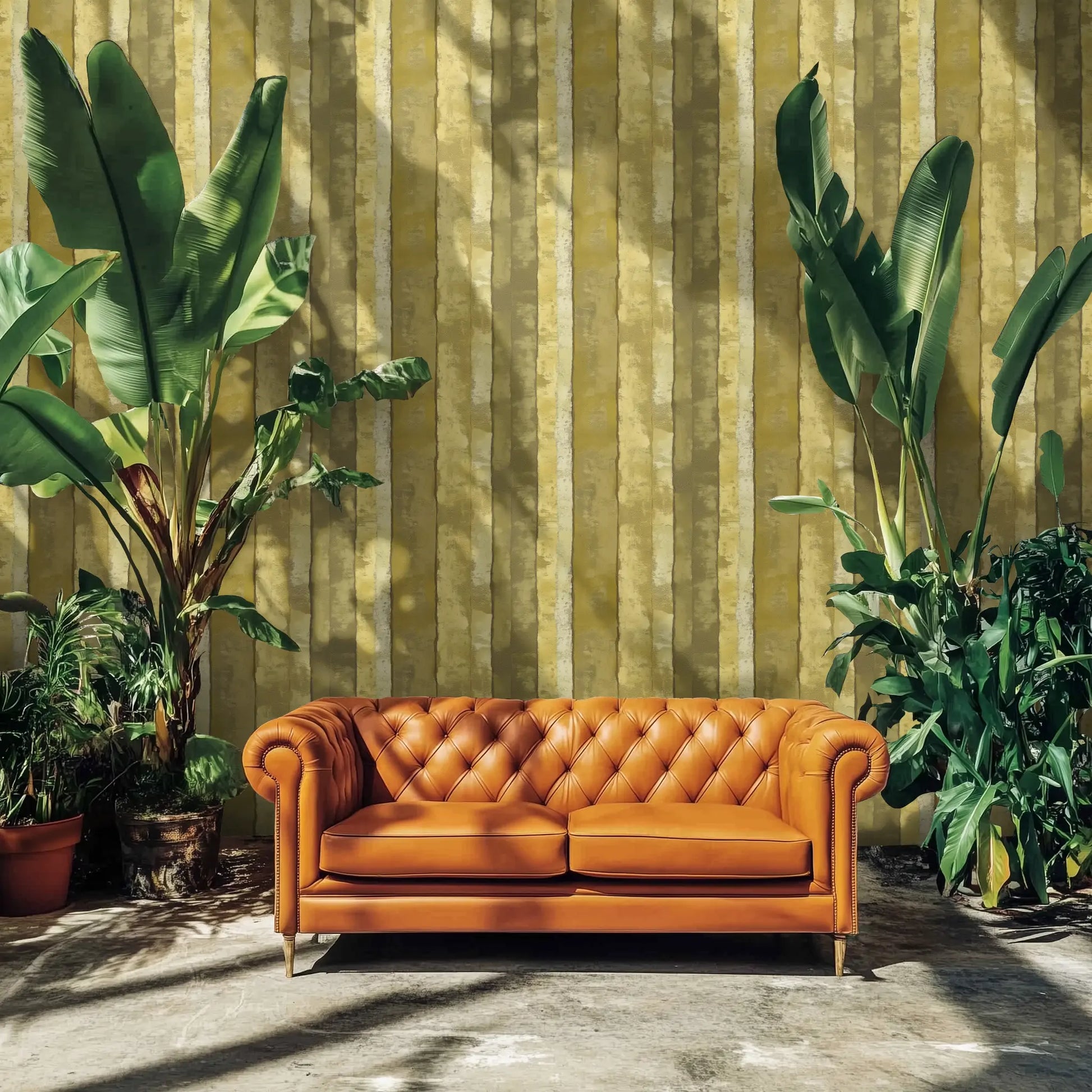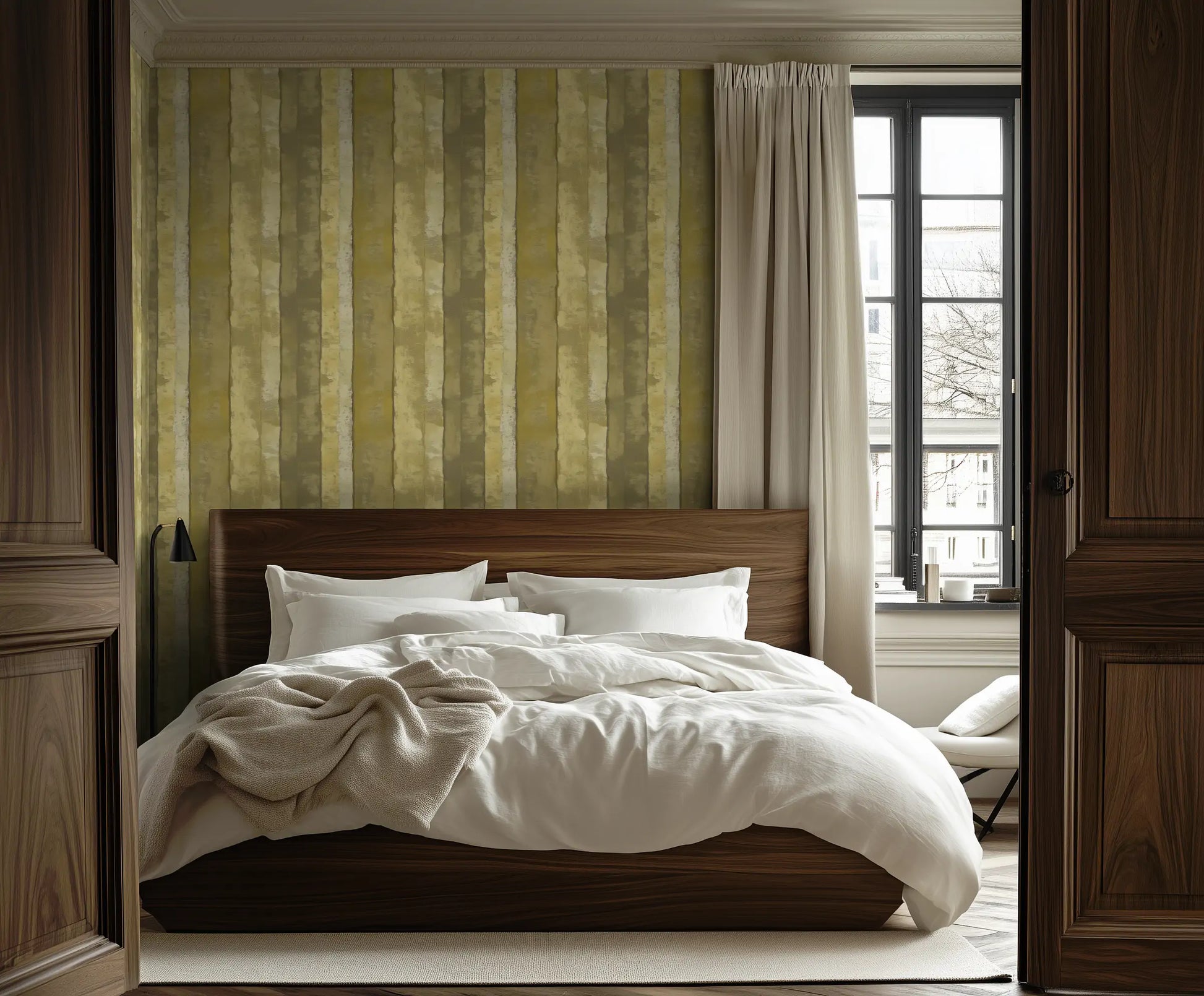 The vineyards of Tuscany shimmer under the afternoon sun, their golden hues blending seamlessly with the land’s earthy richness. Sun-Kissed Vines transforms this magic into a sophisticated striped wallpaper, featuring wheat yellows, ochre tones, and warm neutrals in a classic vertical pattern that elongates any space.