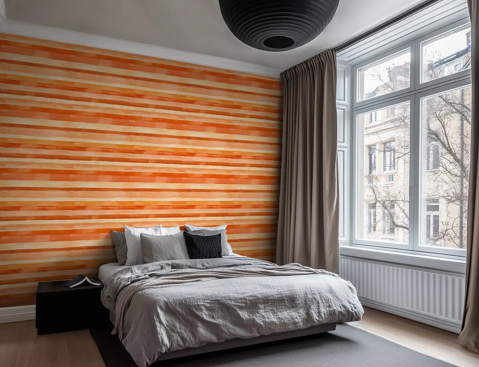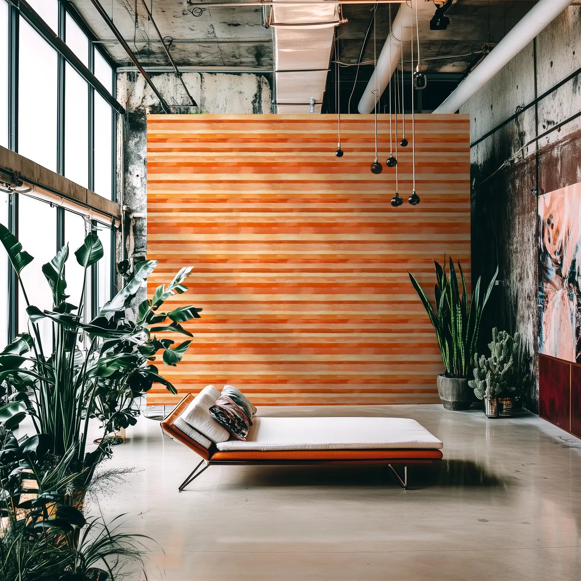 The rooftops of Florentine villas, the sun-baked earth, the glow of a Tuscan sunset—Terracotta Embrace brings these timeless hues into a striped wallpaper mural that radiates warmth and sophistication. Featuring deep sienna, muted clay, and golden ochre tones, this design captures the essence of Italy’s rolling landscapes and historic architecture.