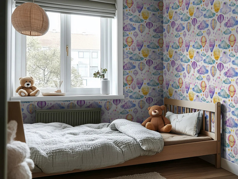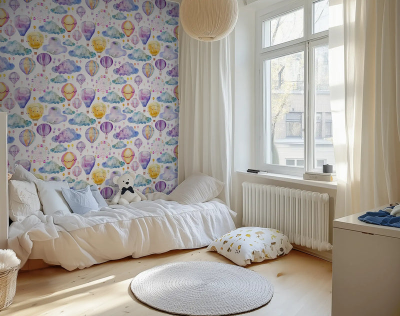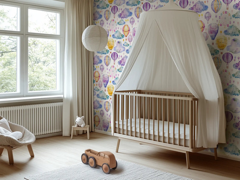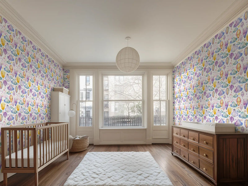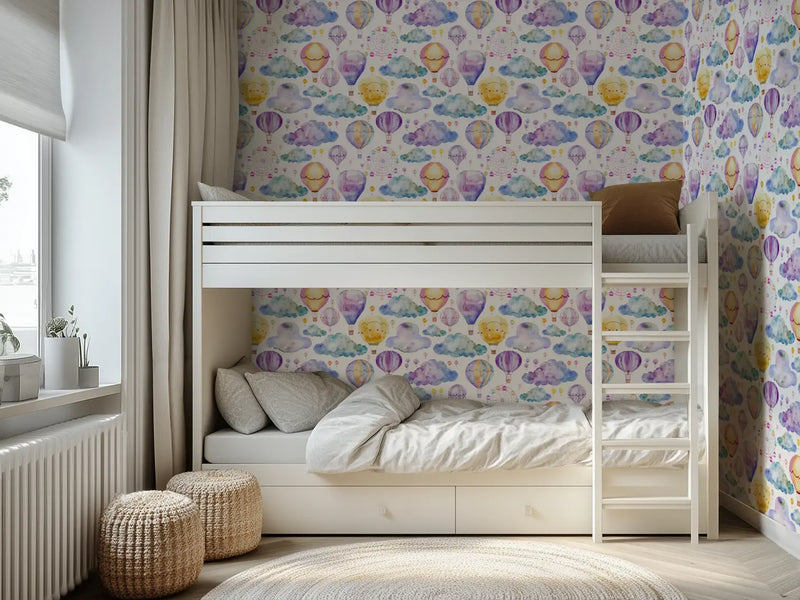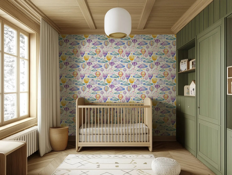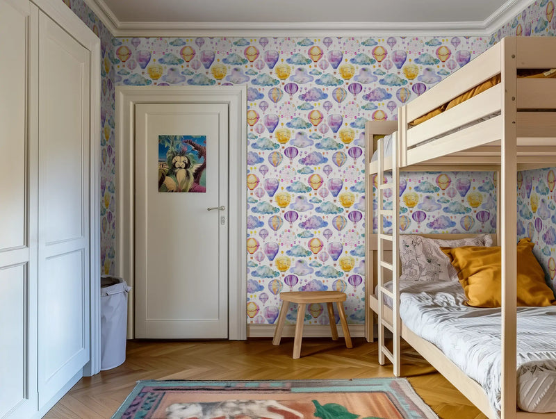 The festival is in the clouds! Carnival Sky is a colorful hot air balloon wallpaper, where ornate balloons, playful Ferris wheels, and whimsical carousels float high above the world. Painted in soft pastels with golden accents, this dreamy sky mural feels like a storybook fairytale come to life.