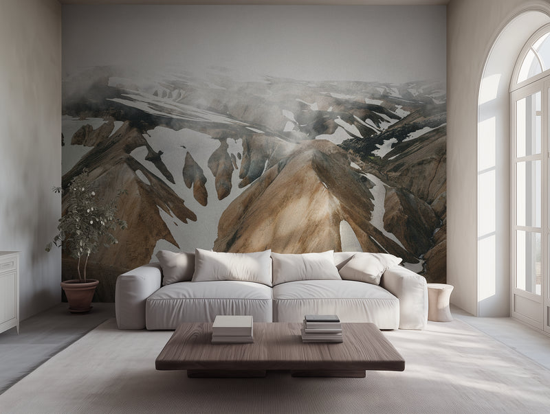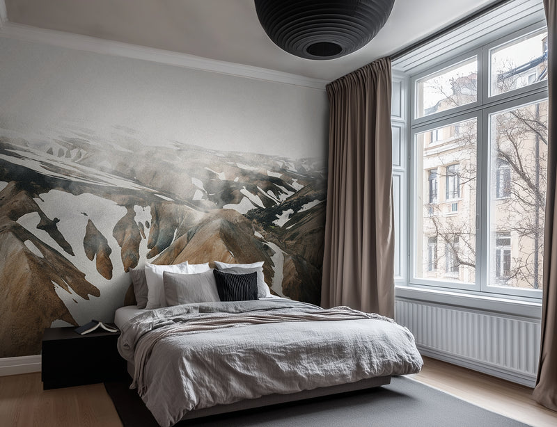 How it fits into current design trends: Earth-tone maximalism and travel-inspired wall art are key trends in interior design. This wallpaper brings both, with the quiet authority of untouched nature.