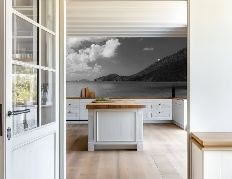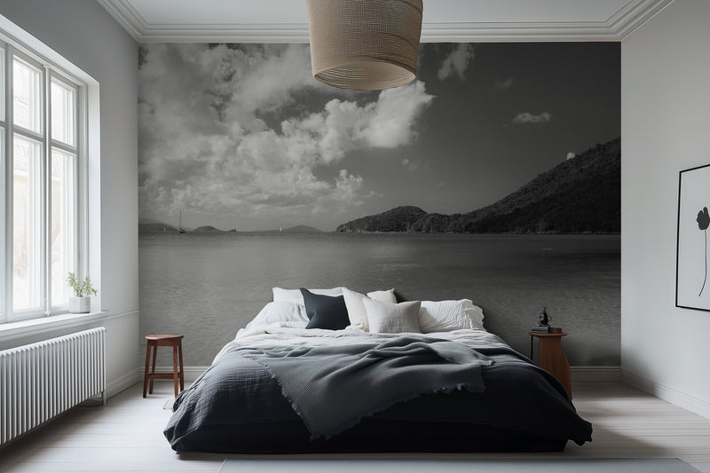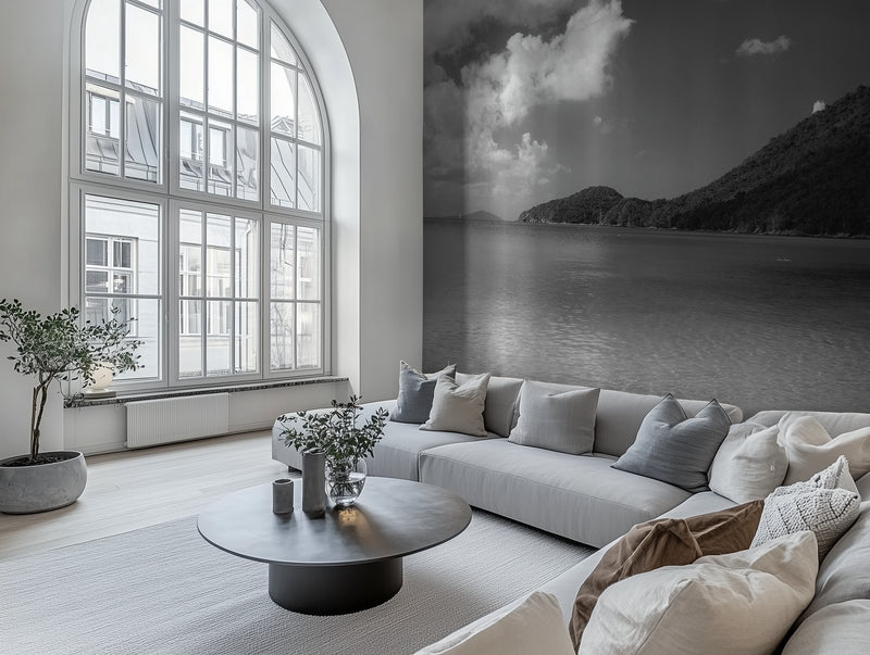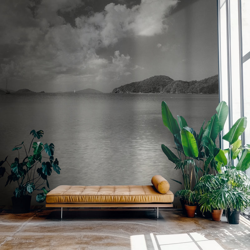 A still beach rendered in grayscale—clouds heavy, the water glass-smooth. Low Tide (Mono) is cinematic minimalism for the coastally inclined. This black-and-white beach wallpaper turns your space into a visual meditation, making it feel artful, focused, and timeless.