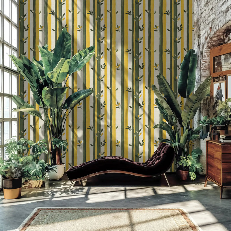 Ideal for heritage homes, organic modern interiors, or garden-inspired rooms, this green botanical wallpaper pairs beautifully with neutral linens, rattan furniture, and terracotta accents, creating an atmosphere that feels as effortless as a summer in the South of France.