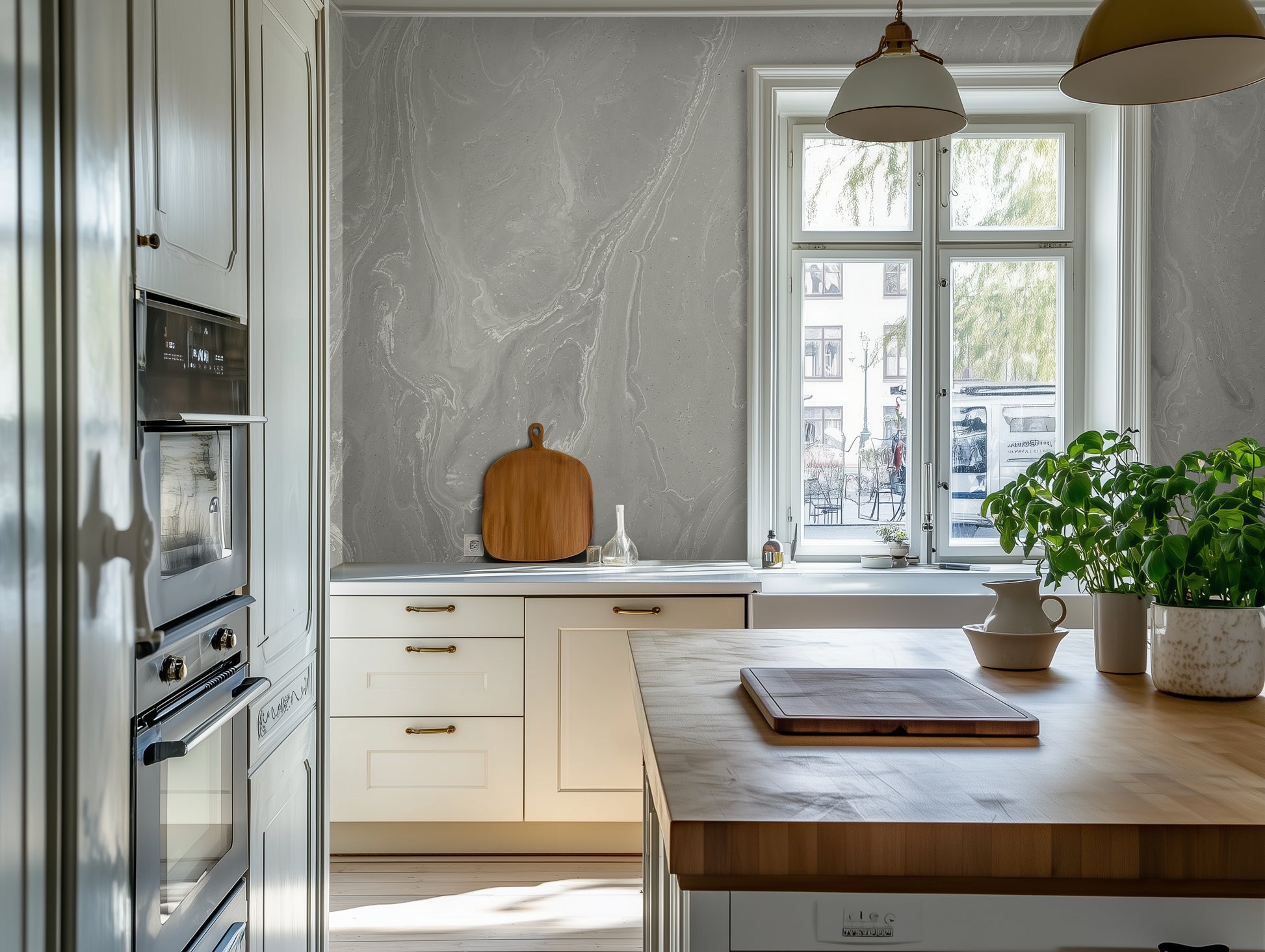 How it fits into current design trends: Tonal grey marble wallpapers are rising in Japandi and quiet luxury spaces, where natural materials and visual softness set the tone.