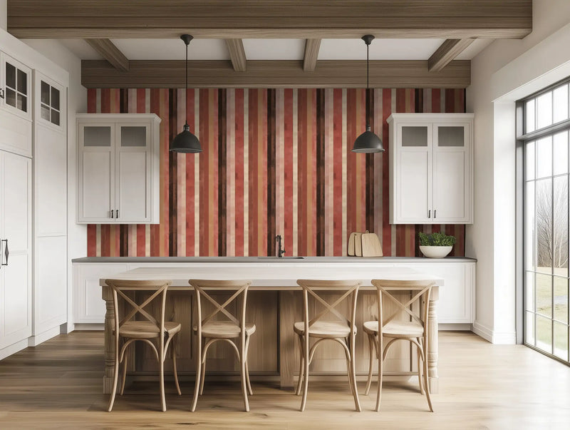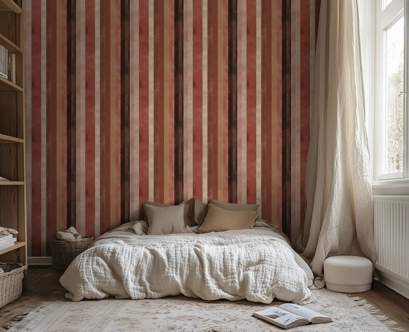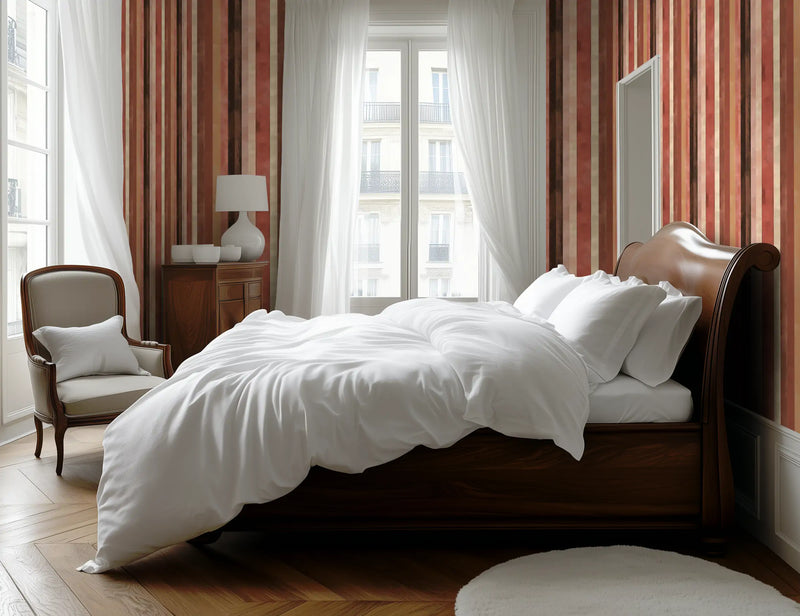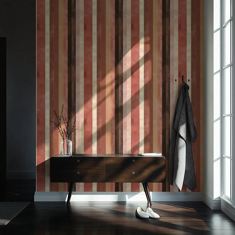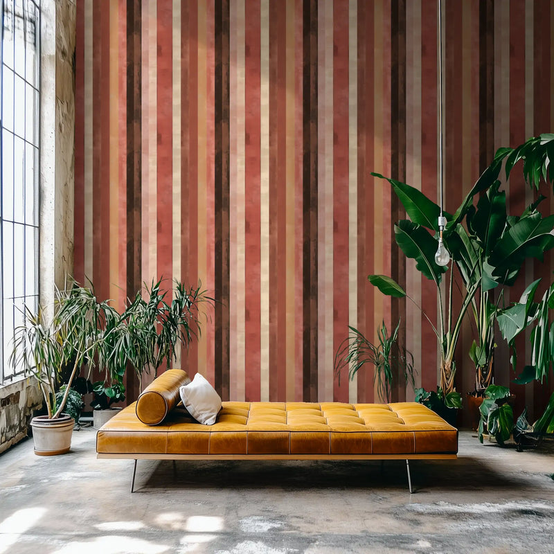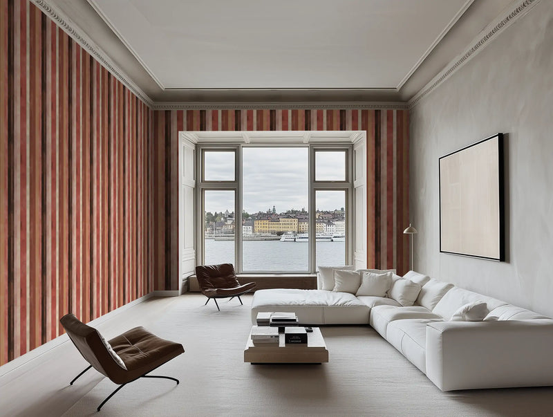 As the Tuscan sky melts into the horizon, it leaves behind a gradient of rich amber, muted peach, and warm sienna. Tuscan Horizon brings these hues into an artful striped wallpaper, offering a timeless balance of structure and organic warmth.