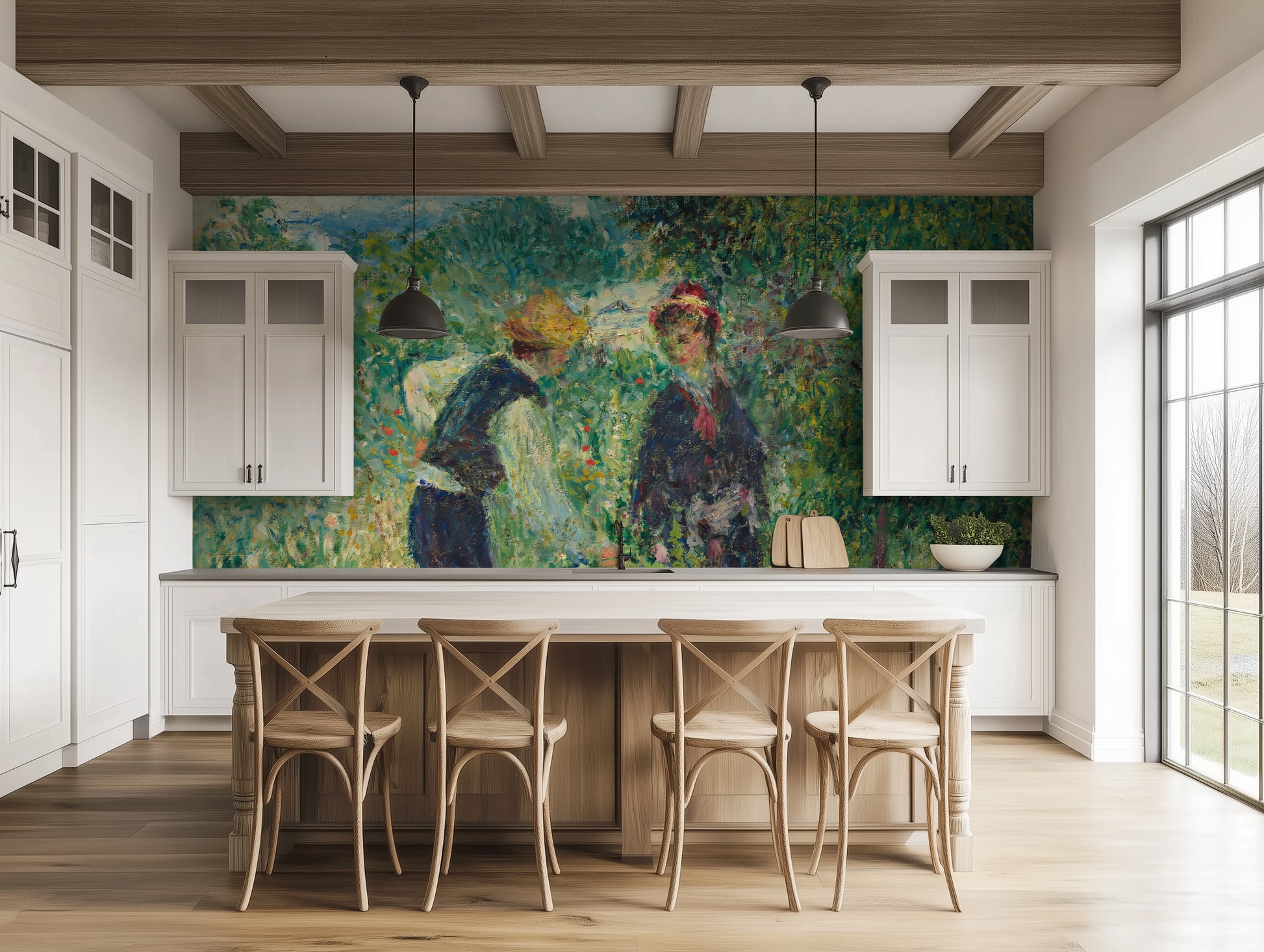 This wallpaper is based on the original painting by Pierre-Auguste Renoir, now in the public domain. It has been respectfully restored and adapted for large-scale interior use under a public domain license.
