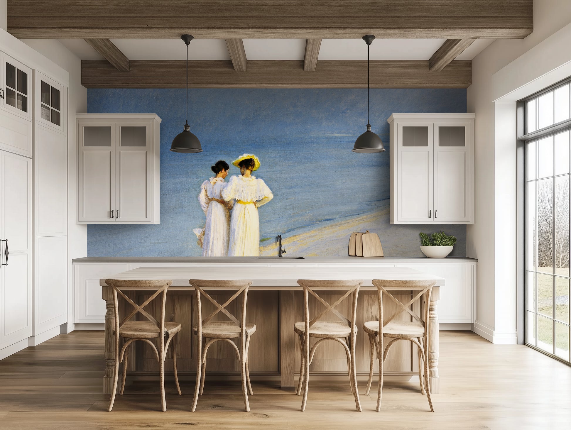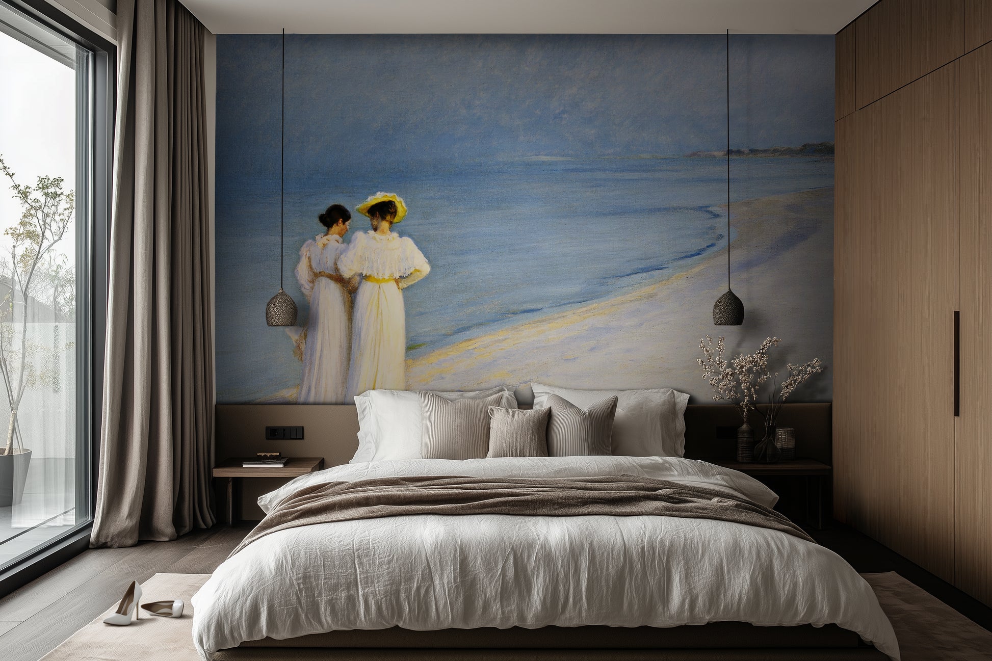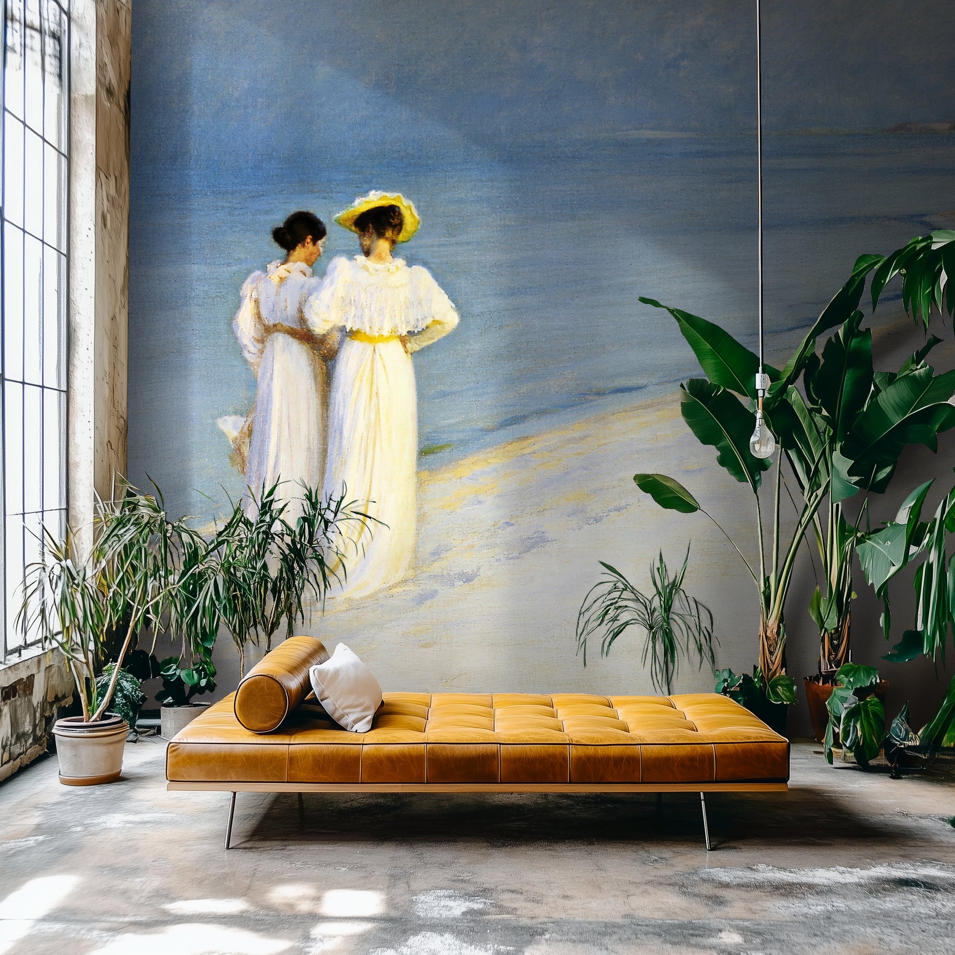 Part of the Skagen Painters movement, Krøyer was obsessed with the soft, diffused light of Denmark’s northern coast. This painting radiates calm—the gentle hush before nightfall, the weightless pause of summer. As wallpaper, it casts a coastal stillness over any room, making it ideal for bedrooms, quiet reading spaces, or anywhere craving Scandinavian elegance and softness.