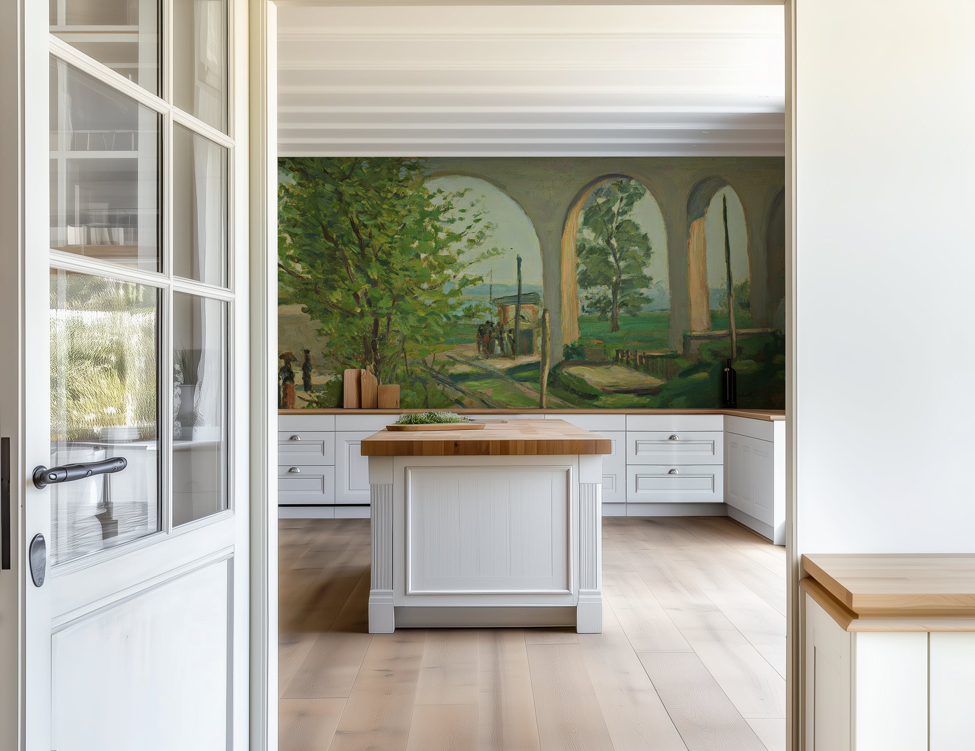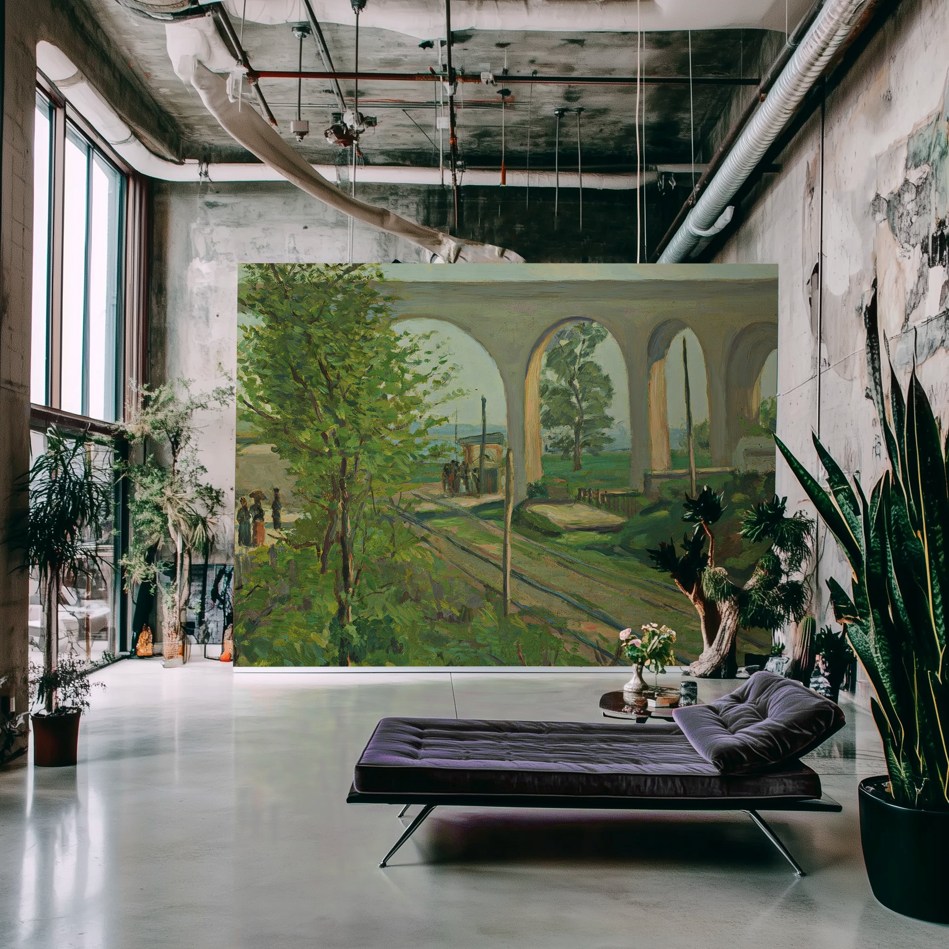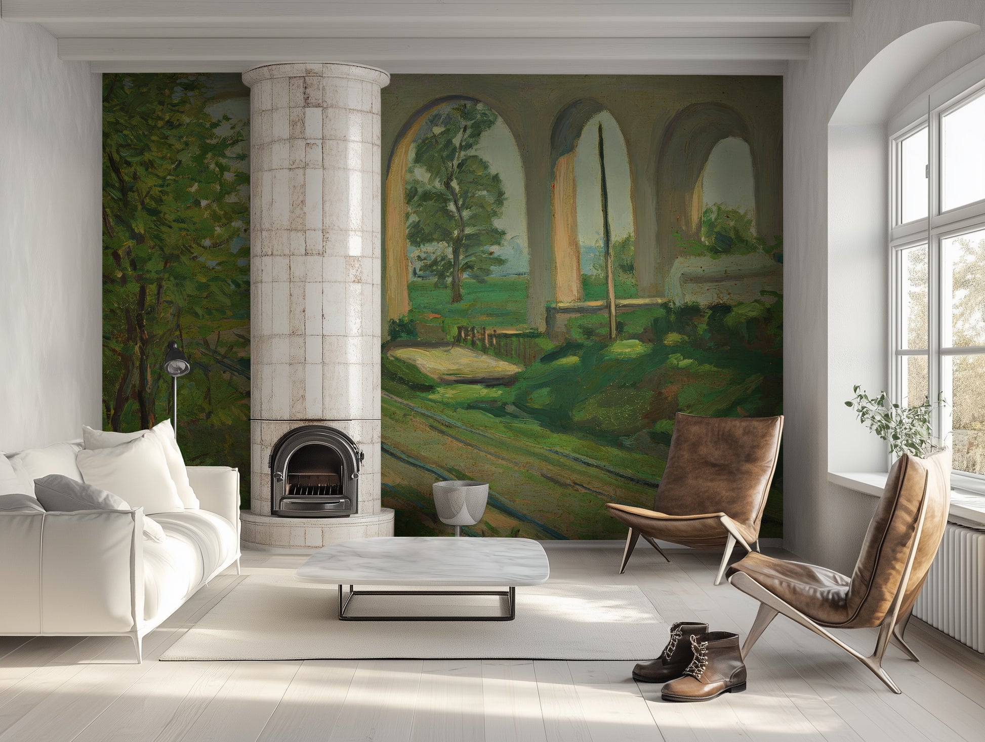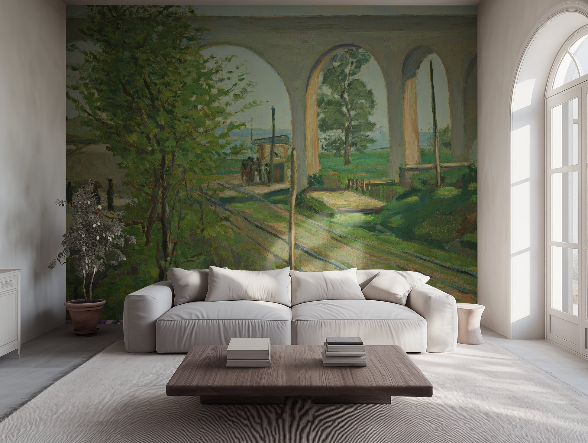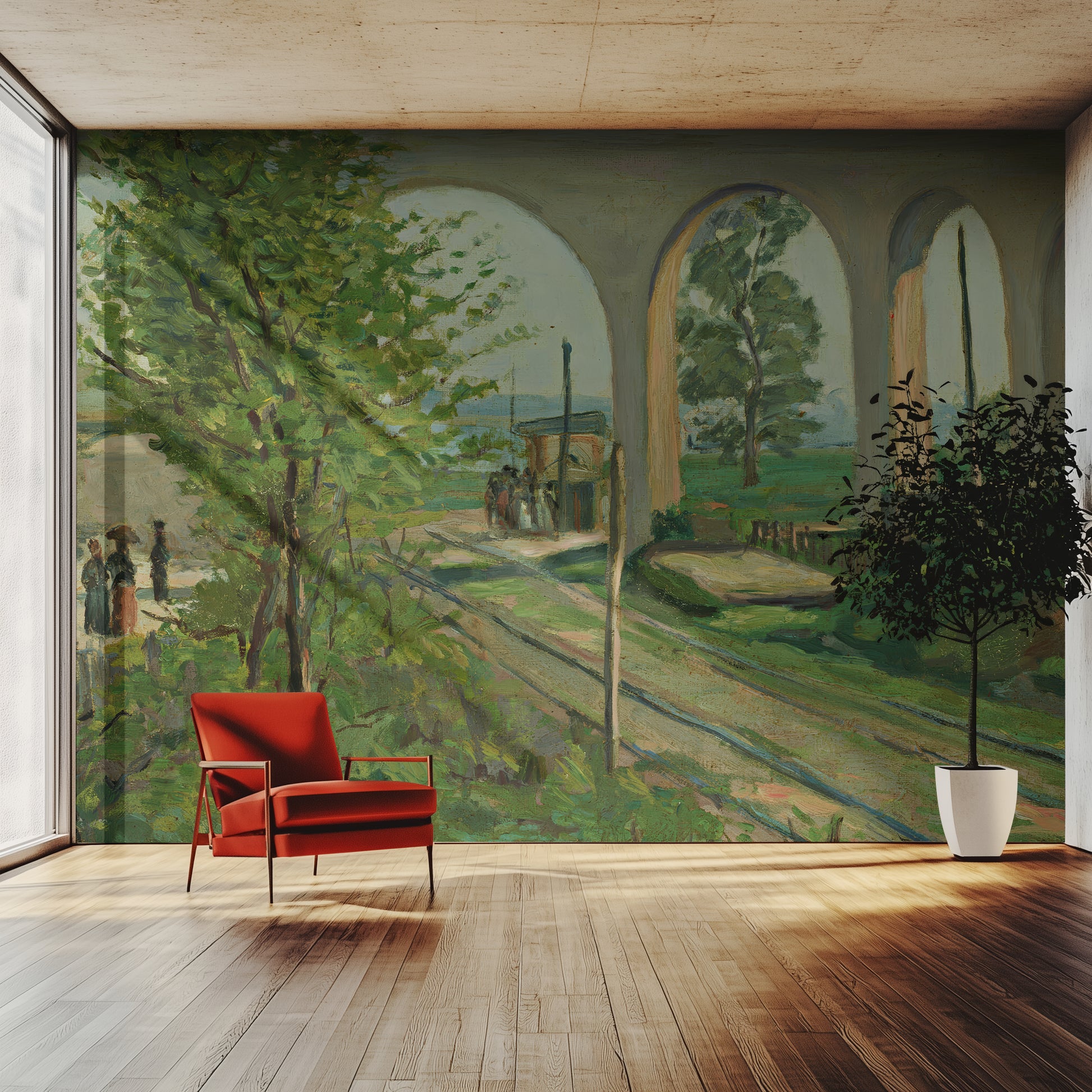 Guillaumin, a founding figure of the Impressionist movement, often painted infrastructure with the same reverence others reserved for rivers and gardens. Here, he turns an industrial crossing into something lyrical. As wallpaper, this mural lends quiet grandeur to contemporary interiors—perfect for reading rooms, lofts, or hallways where architecture becomes ambiance.