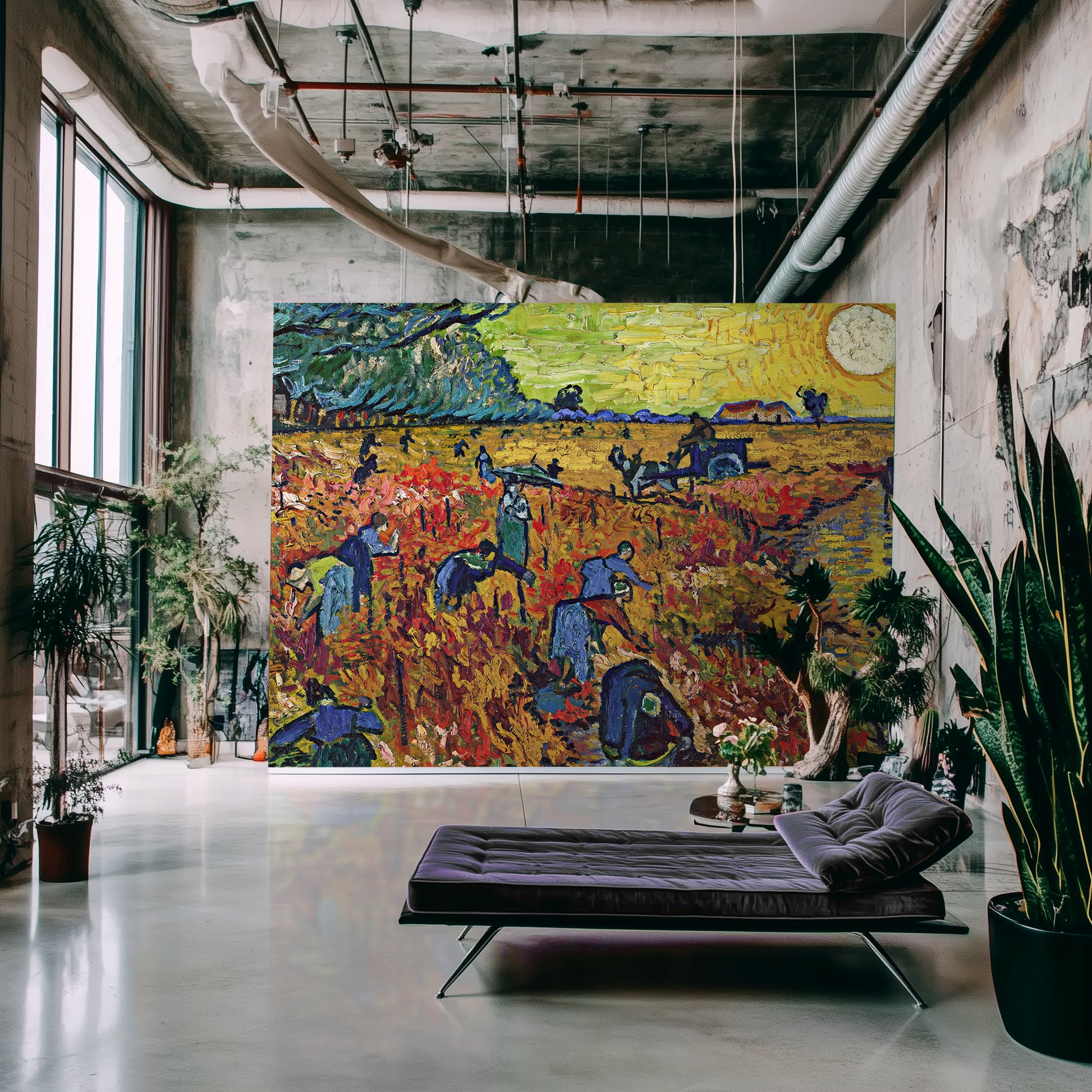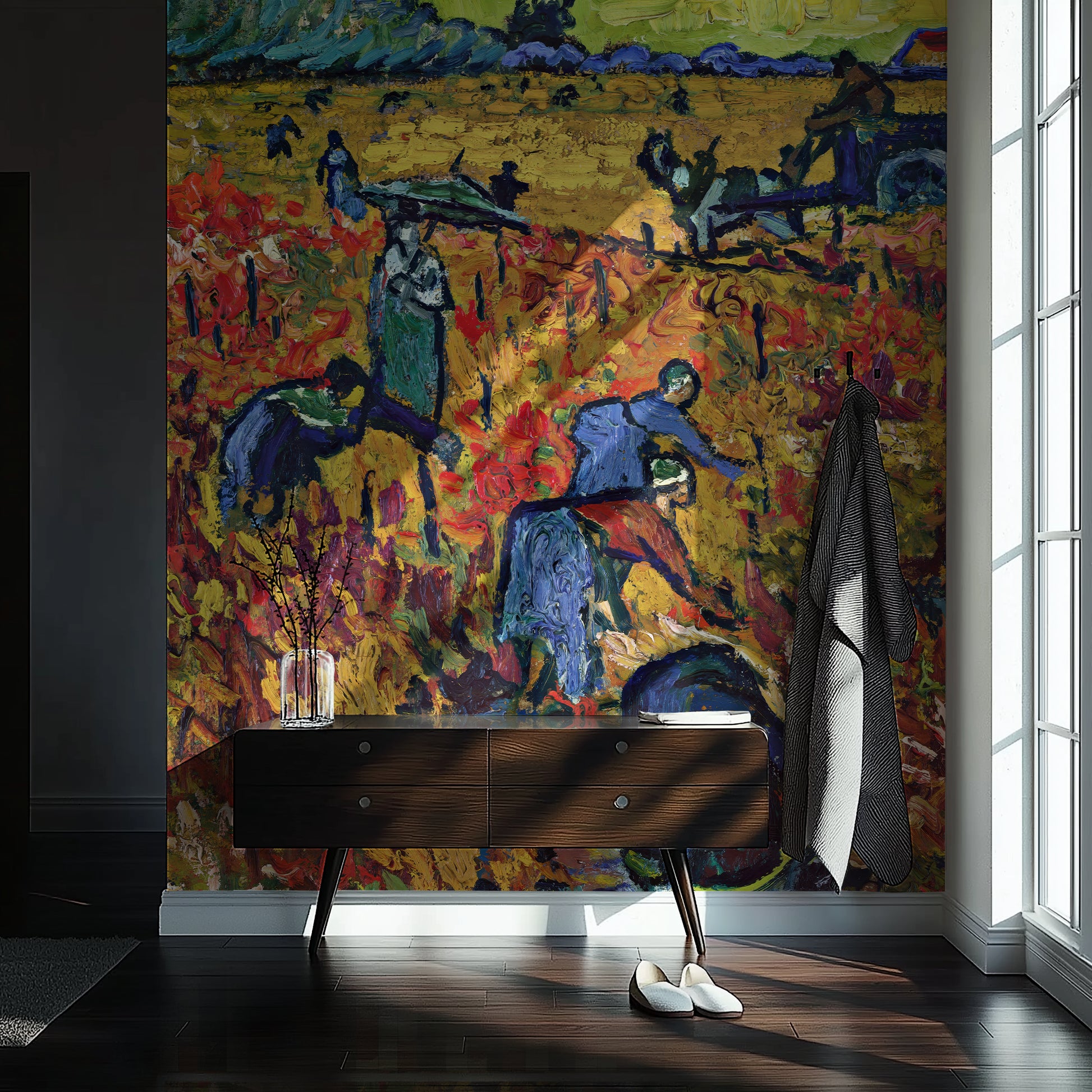 Van Gogh was fascinated by the changing seasons, and this piece captures autumn not as decline, but as glory—a final, fiery crescendo. As wallpaper, The Red Vineyard brings warmth, drama, and emotion into your space. It’s ideal for dining rooms, creative spaces, or anywhere that craves bold color and a sense of the poetic wild.