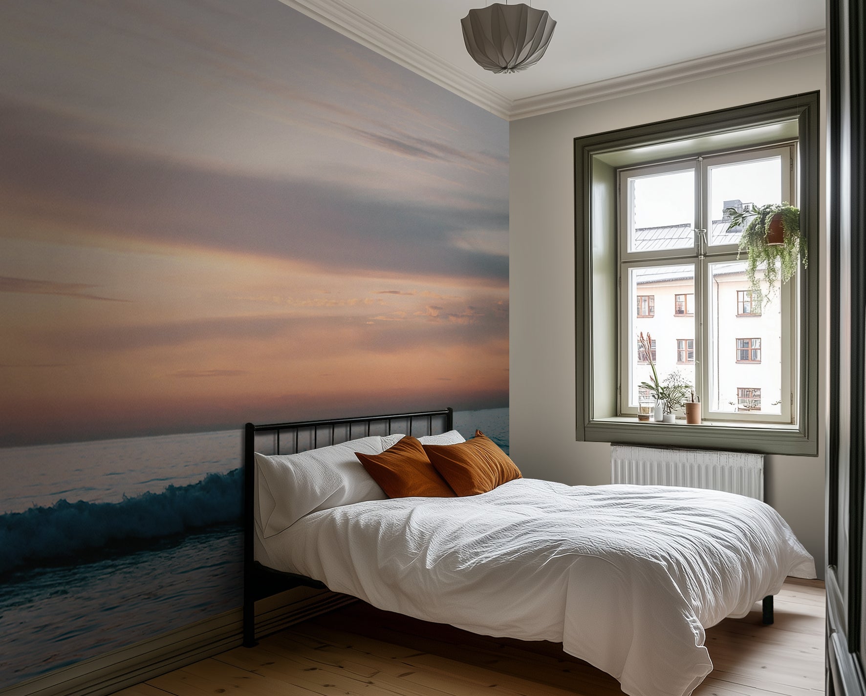 Why it’s great: Designed for interiors that crave calm—like meditation corners, biophilic bedrooms, or cozy creative spaces—this wave mural wallpaper brings flow to your walls.