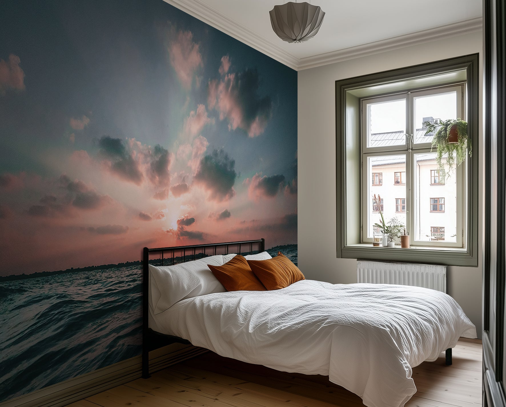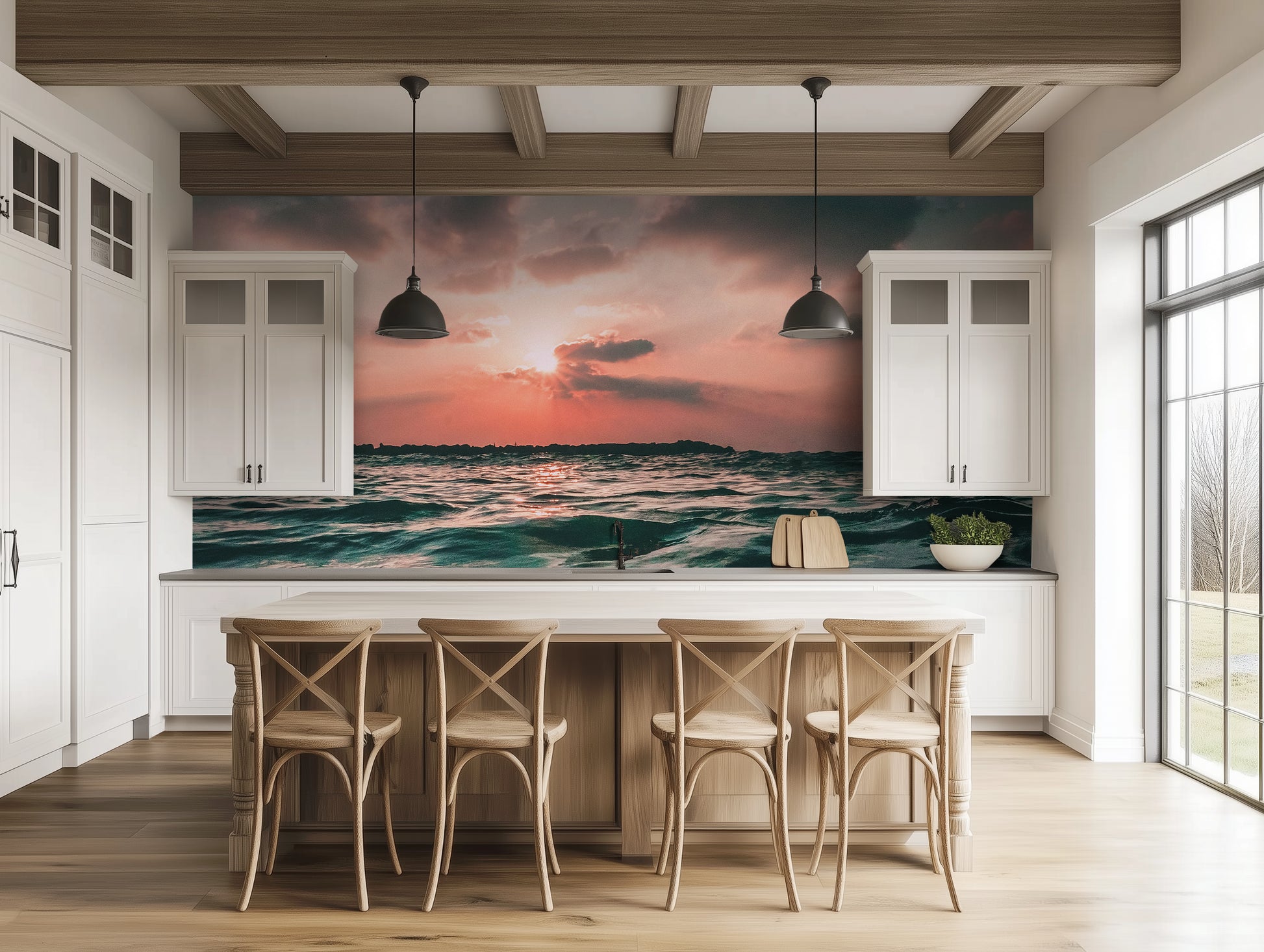 Why it’s great: With its dynamic energy and misty palette, this wallpaper is perfect for beachy yet elevated spaces—ideal for ocean-themed bathrooms or breezy open-plan homes.