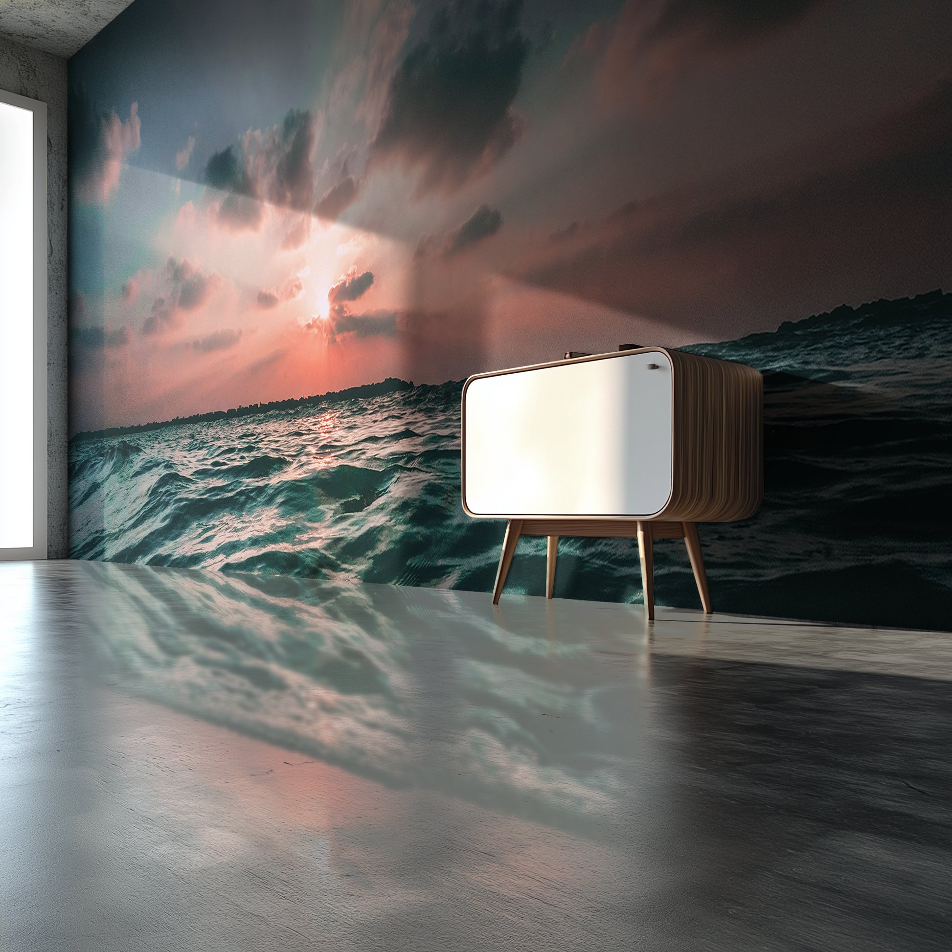Waves shimmer beneath streaks of soft light as clouds part in silence. Where the Wind Met the Tide is textured, alive, and full of motion—like the sea itself exhaling.