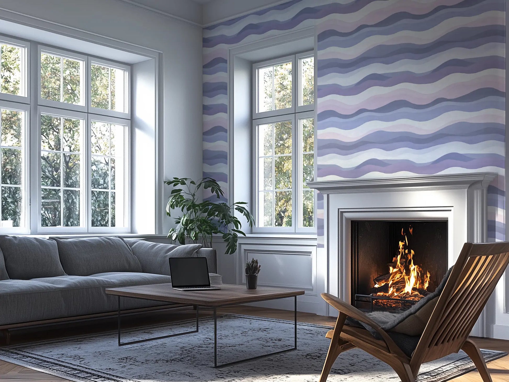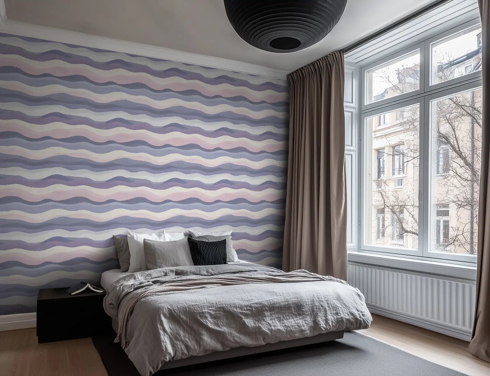 Keywords: moonlight wallpaper, desert wallpaper, organic movement, wavy wallpaper, neutral wallpaper, celestial interiors, statement wall, soft maximalism