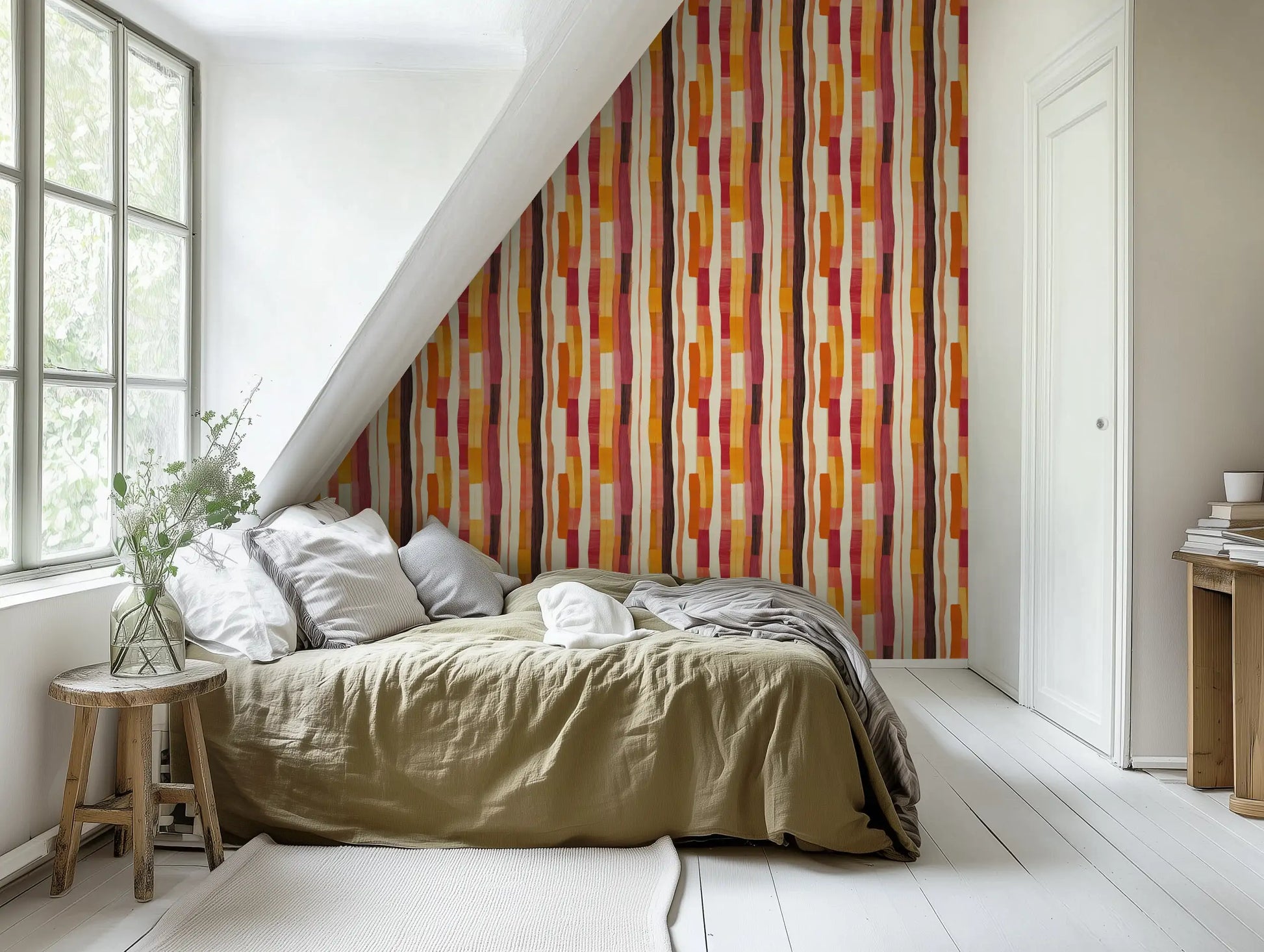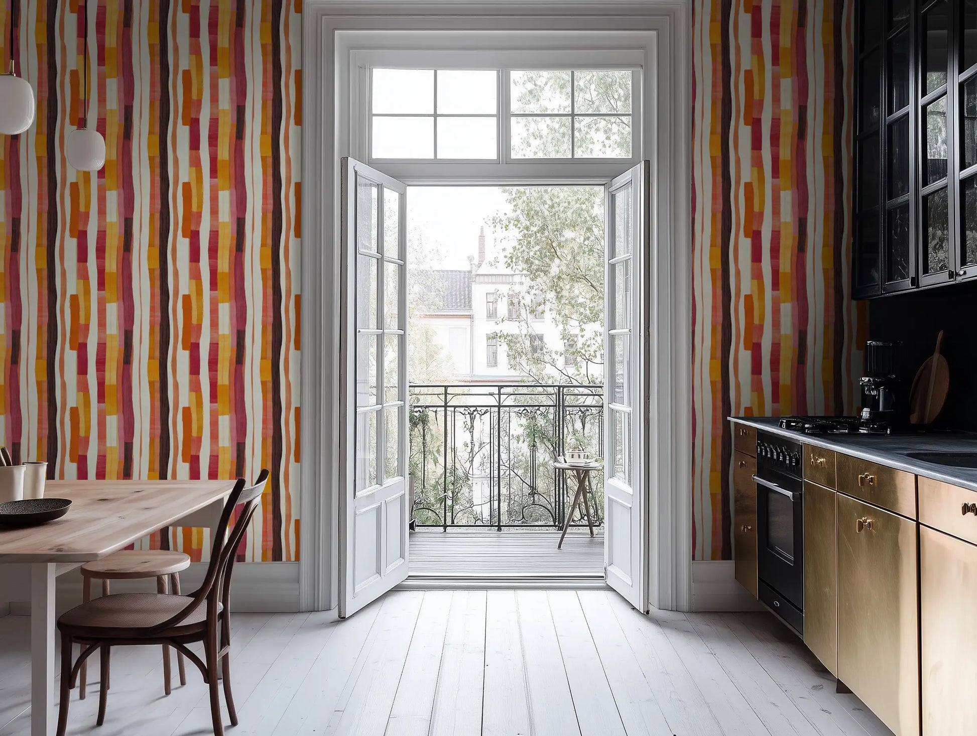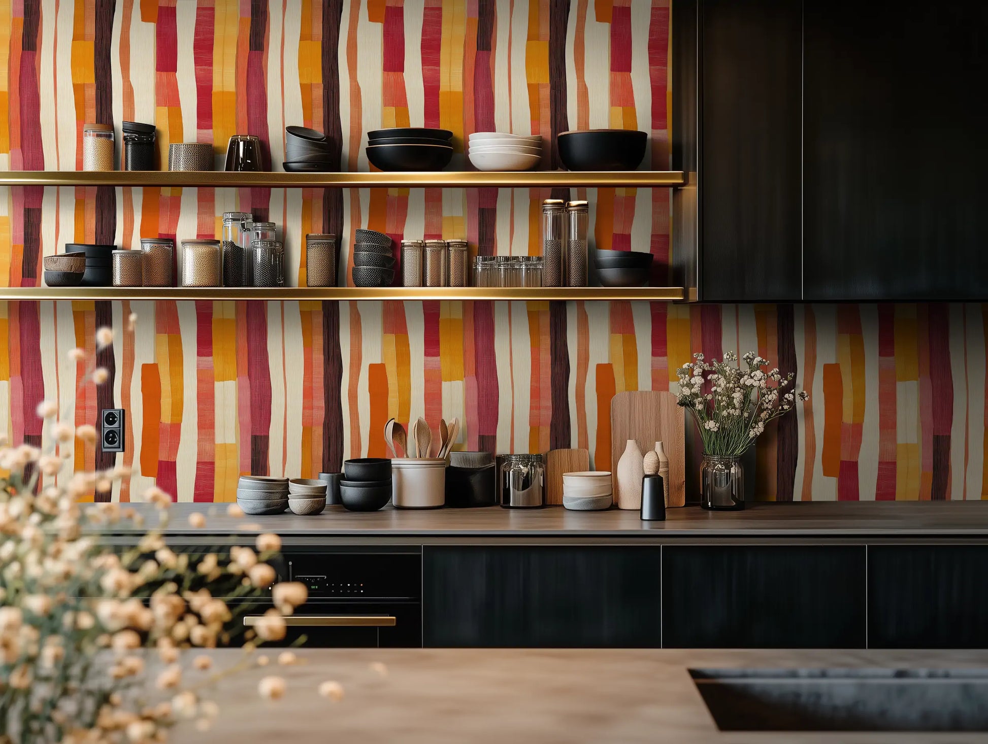 Why it’s great: The warm, layered hues and shifting, geological-inspired movement make this wallpaper a bold yet natural addition to modern rustic interiors.