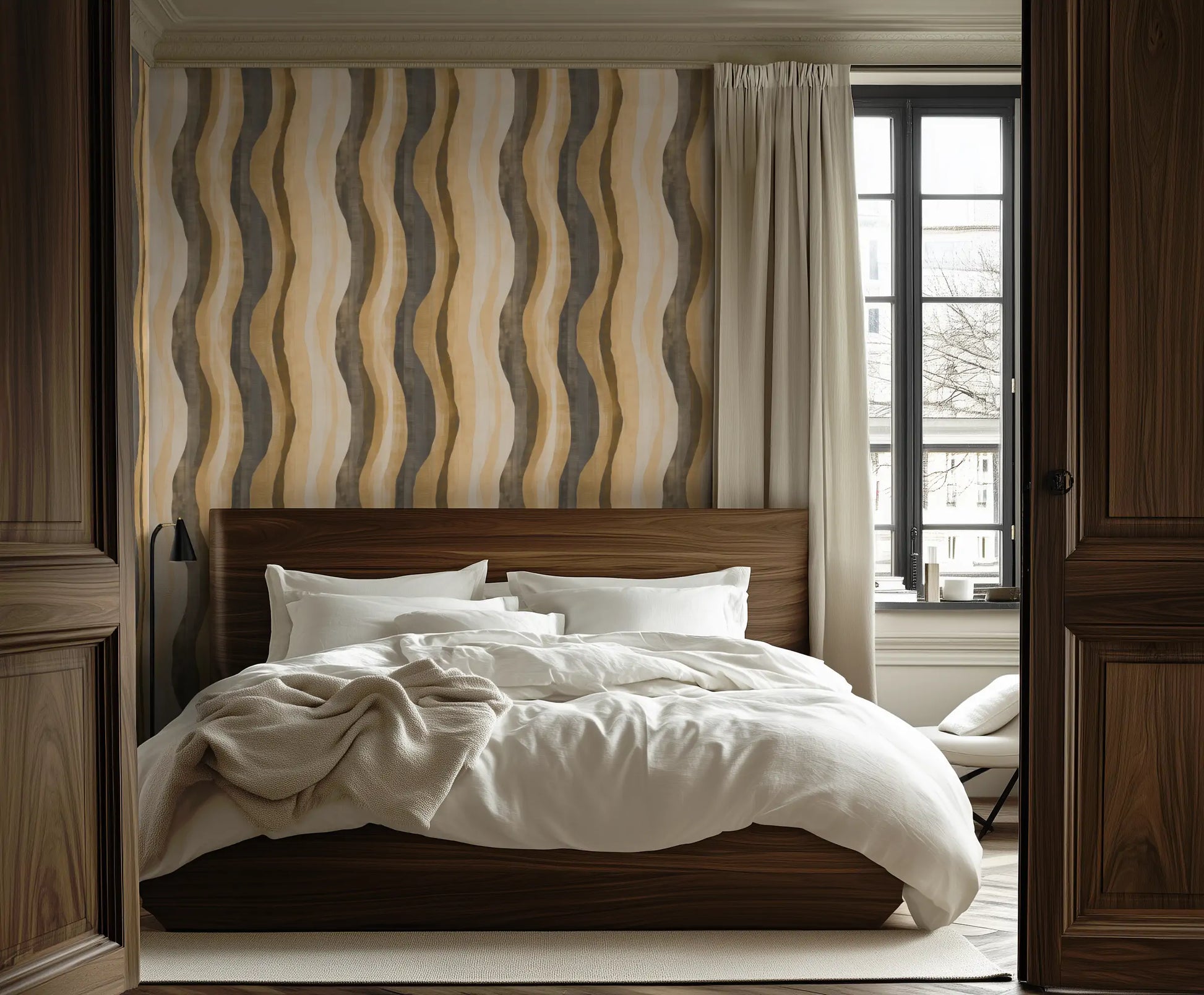 Why it’s great: The natural curvature and deep tonal contrasts make this wallpaper a striking choice for interiors that celebrate organic movement and geological depth.