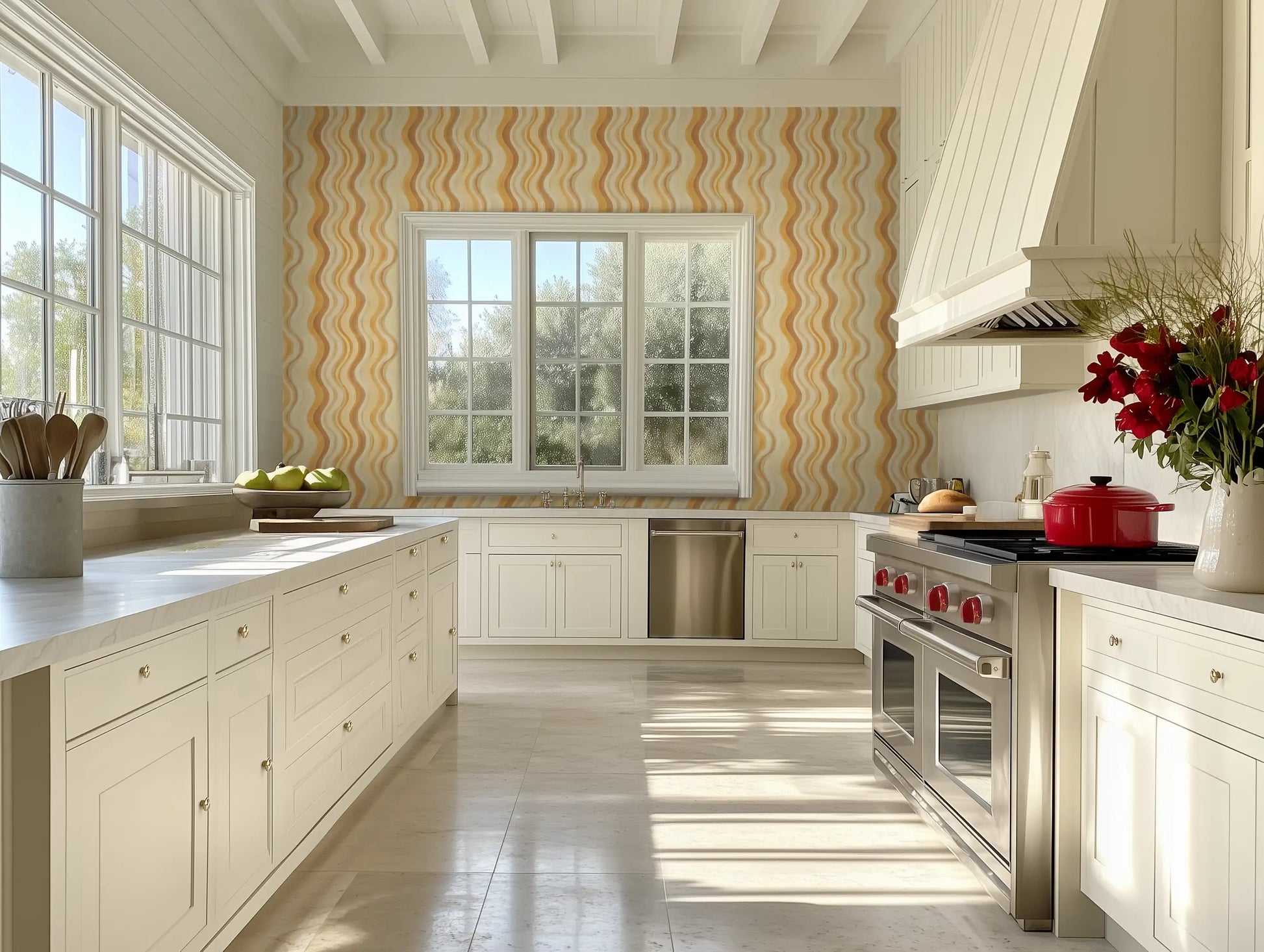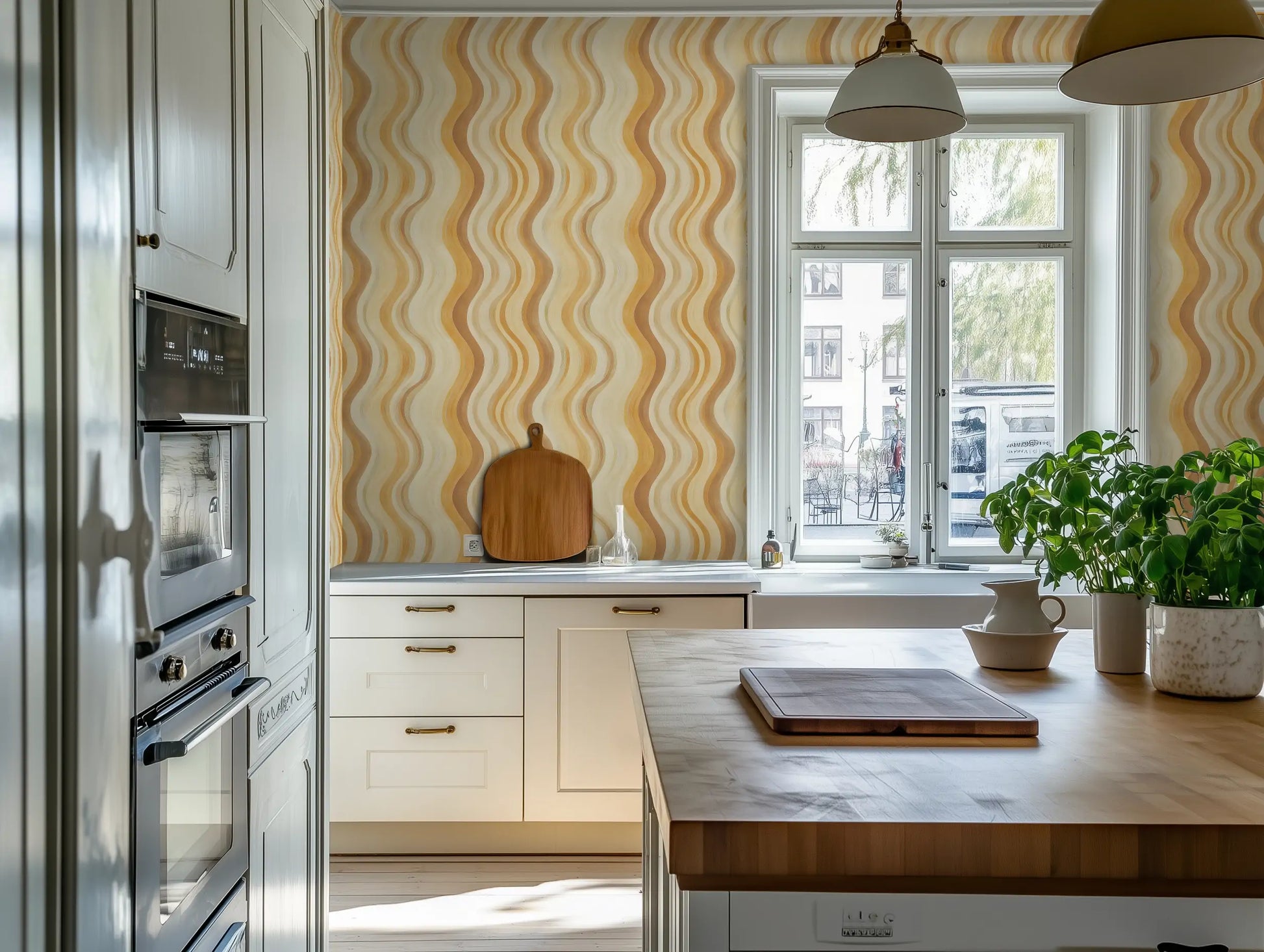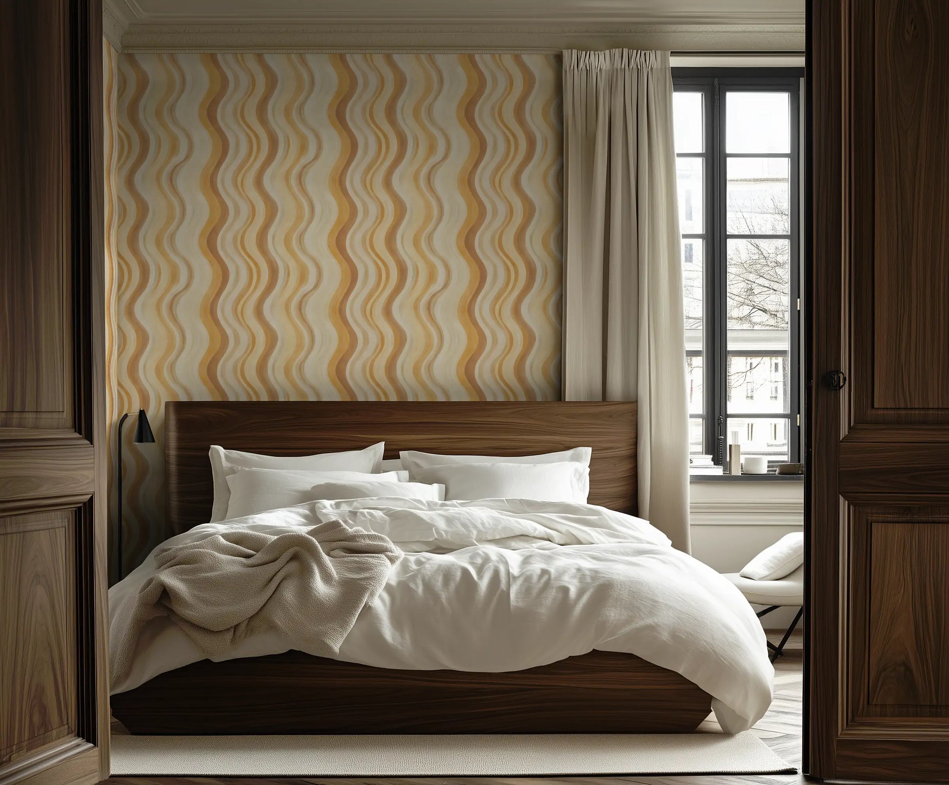 Why it’s great: The undulating motion and soft contrasts create a wallpaper that brings warmth, depth, and movement to any space.