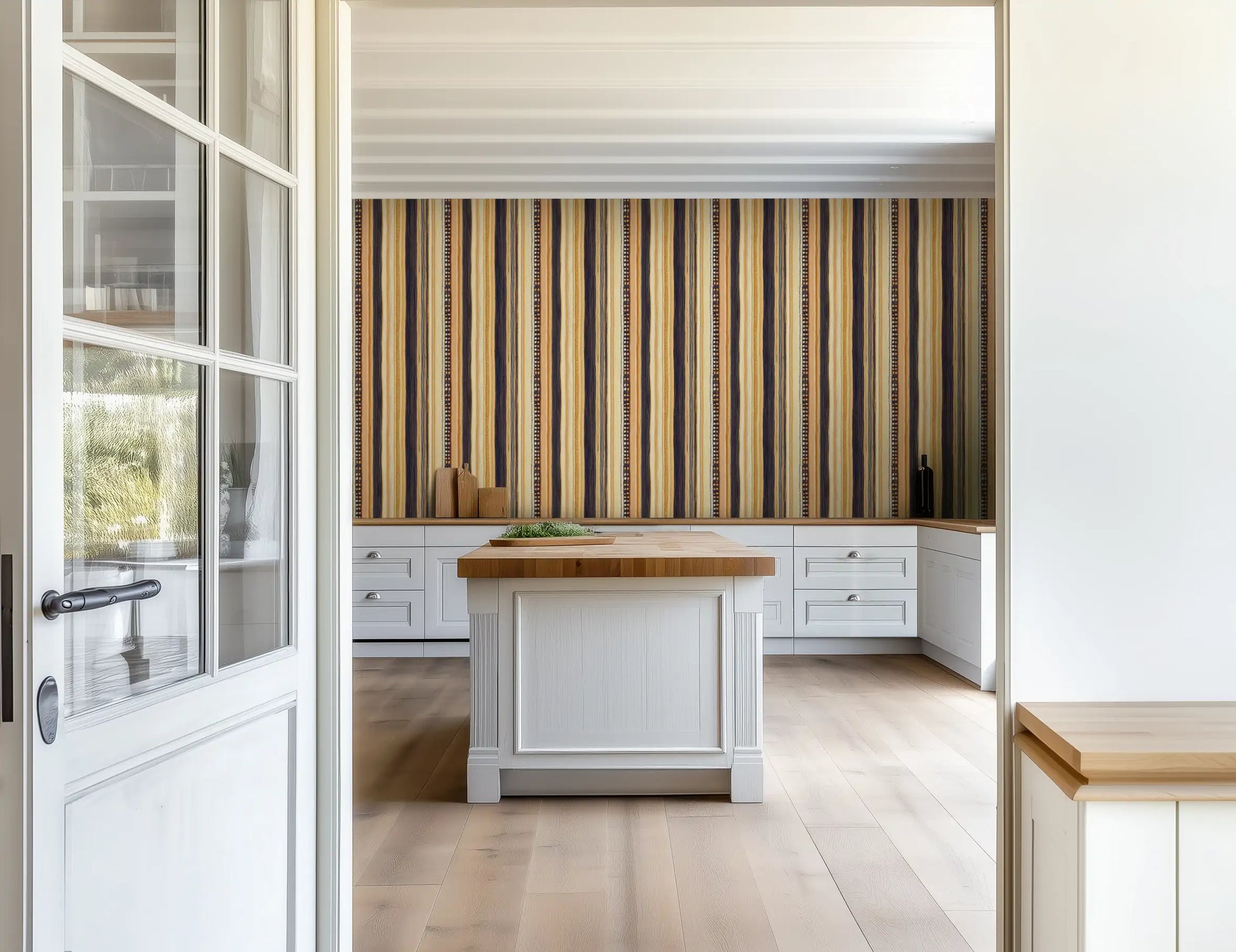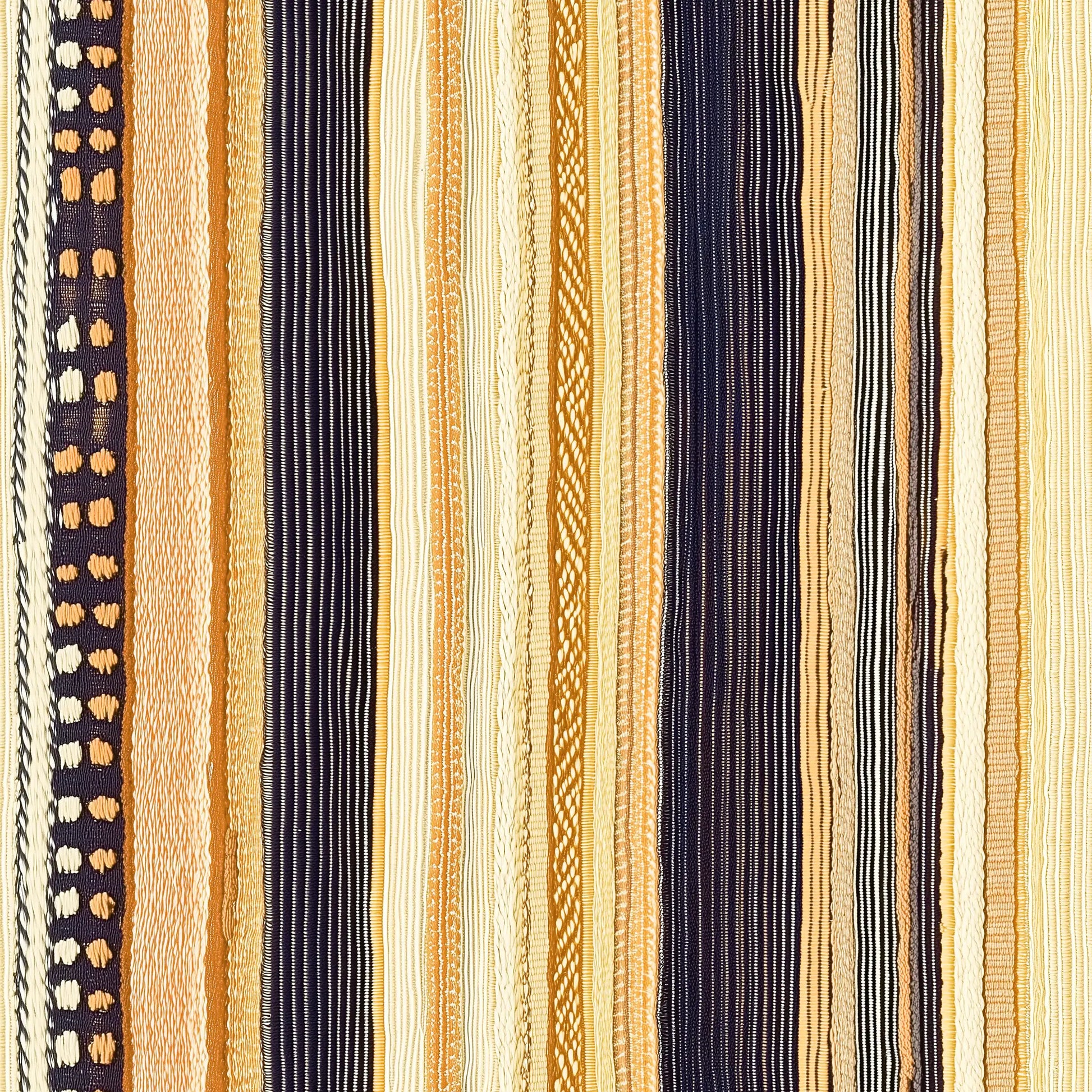 Threads of history, woven by hand, stretched across the vastness of the desert—Sahara Loom captures the intricate beauty of nomadic textiles, where each stripe tells a story of movement, craftsmanship, and time-honored traditions. Inspired by Berber and Tuareg weaving techniques, this pattern layers warm saffron, deep indigo, and sun-bleached ivory into a rhythmic, textile-inspired design.