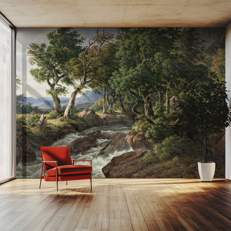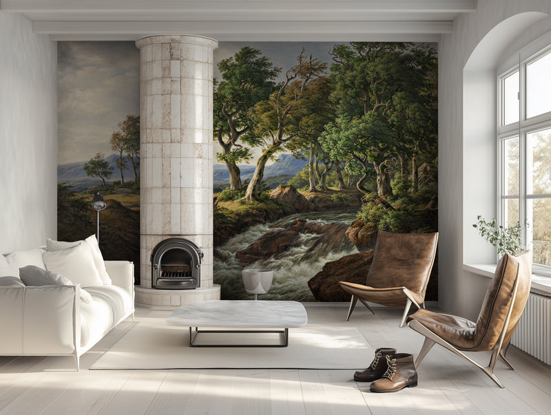 Rocky Landscape, Djupadal in Bleking – F.C. Kiærskou (c. 19th century) | Vintage Nordic Landscape Wallpaper
