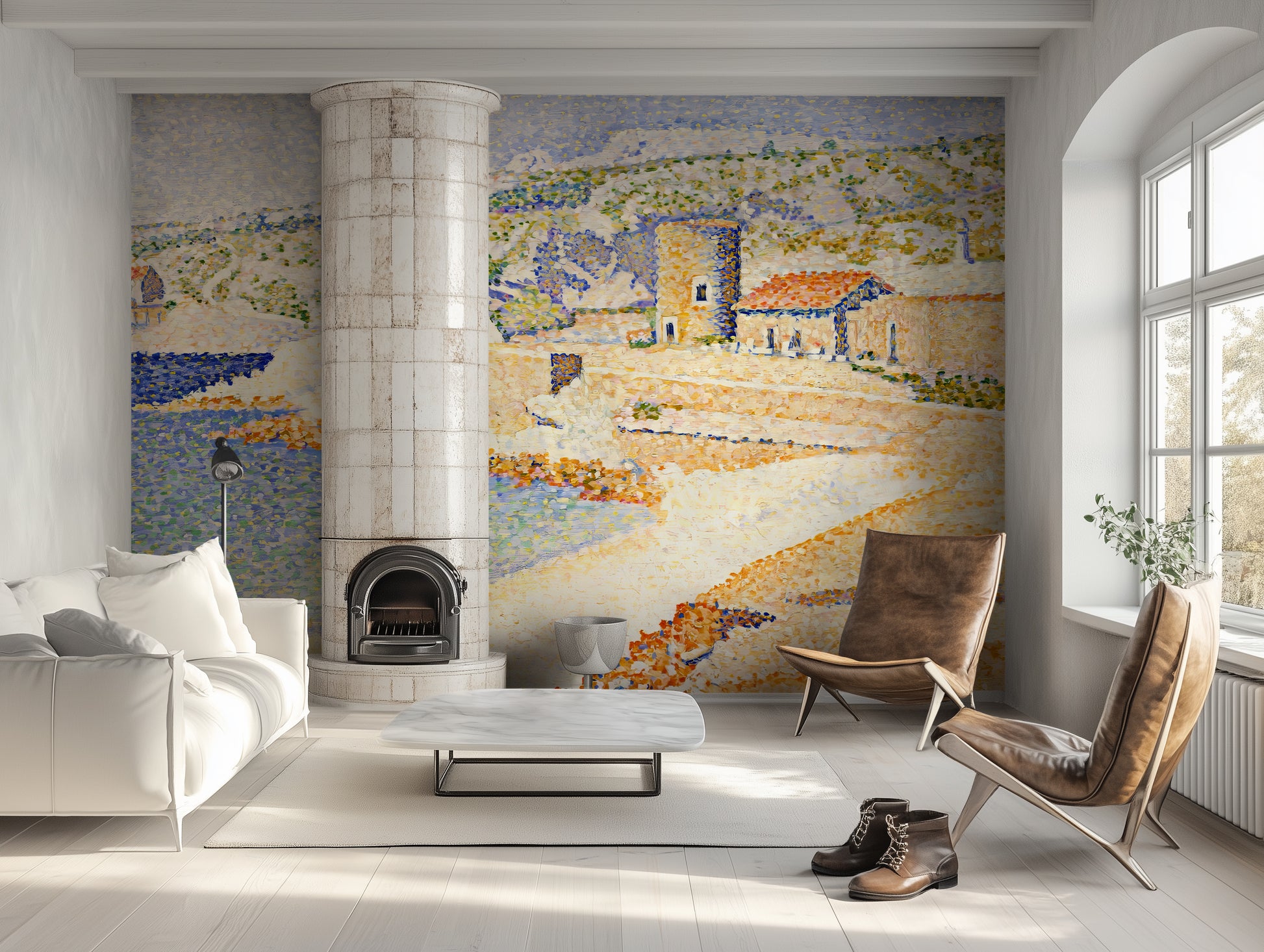 This wallpaper is based on the original painting by Paul Signac, now in the public domain. It has been respectfully upscaled and adapted for large-scale interior use under a public domain license.