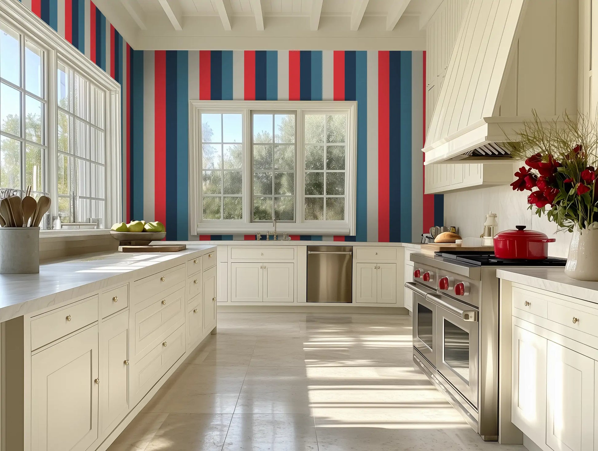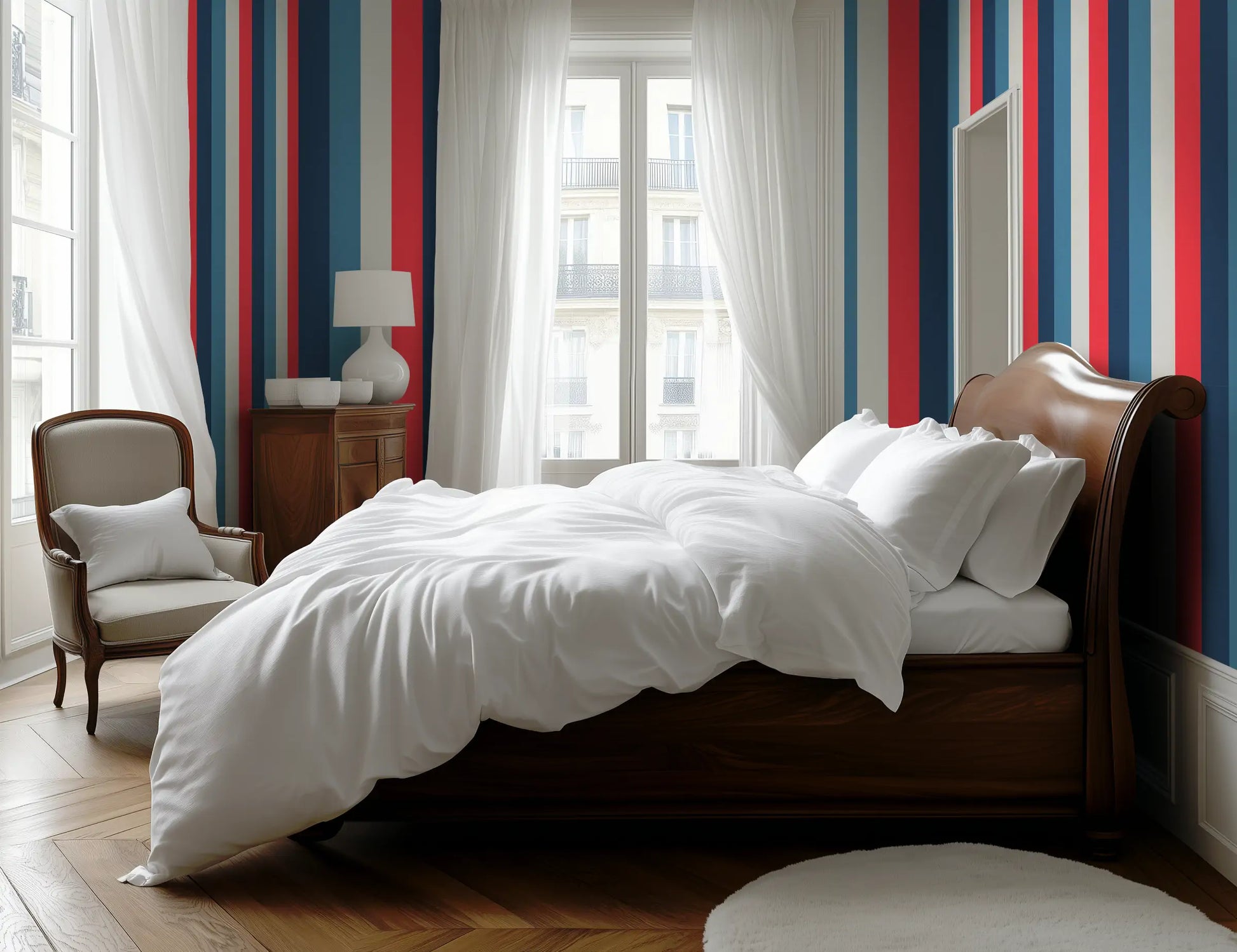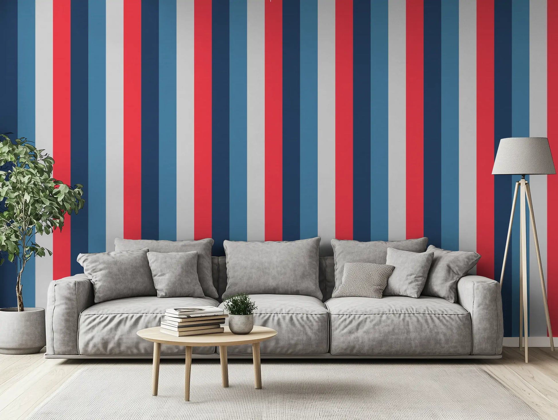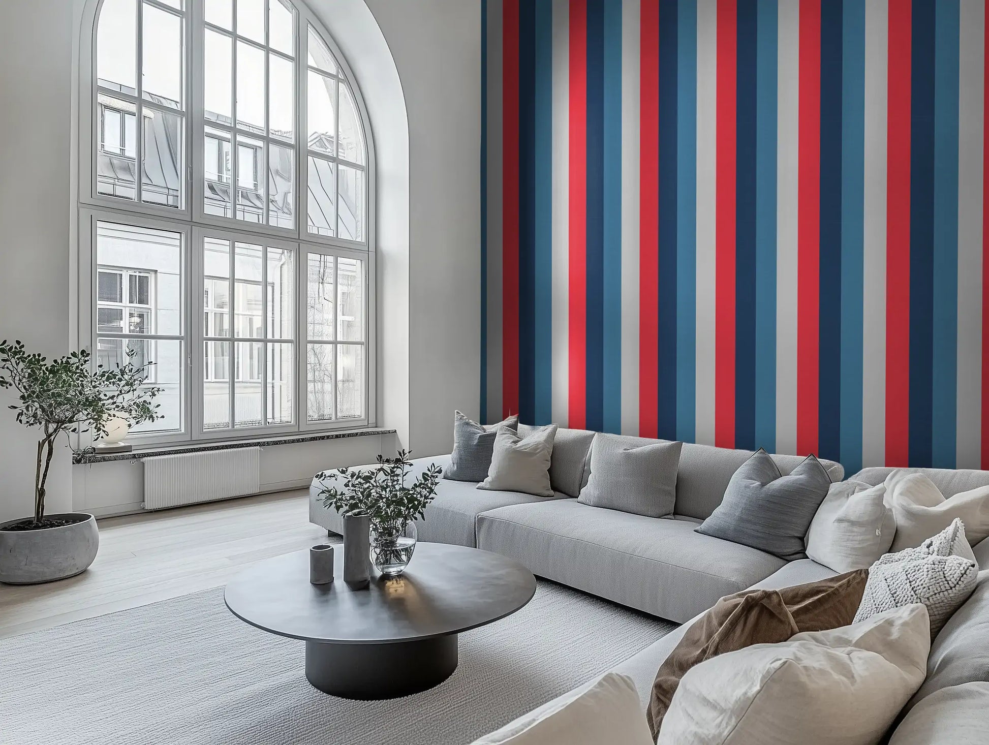 London is sharp tailoring, foggy streets, and deep heritage wrapped in modern cool. We pulled from its navy blue skies, rich red buses, and soft grey stonework to create a structured, refined striped wallpaper mural that’s as timeless as the city itself.