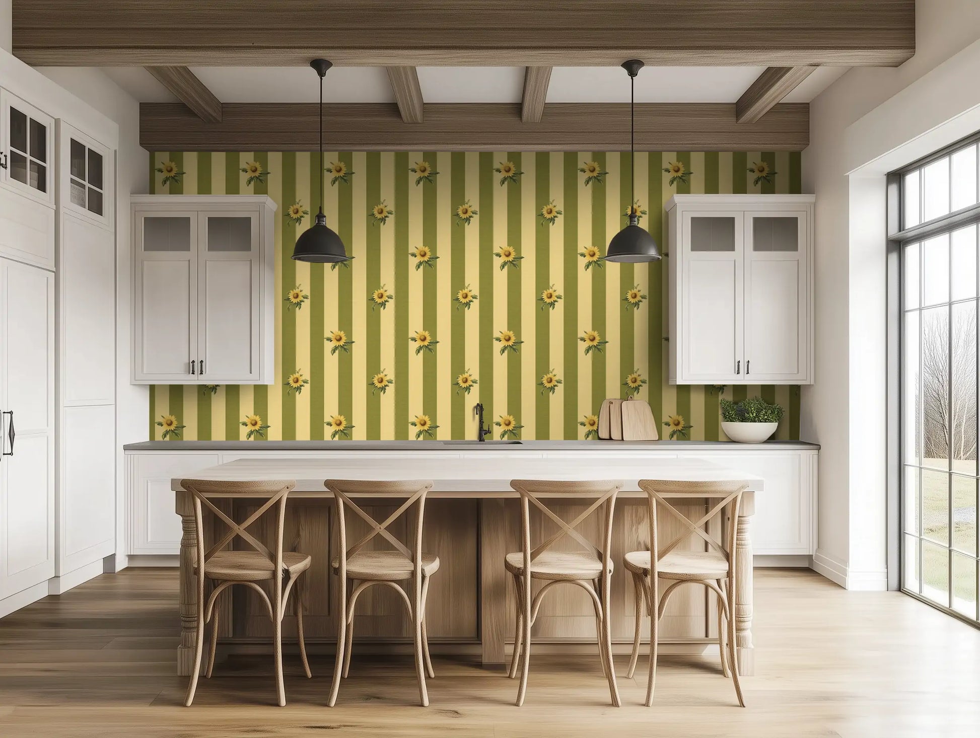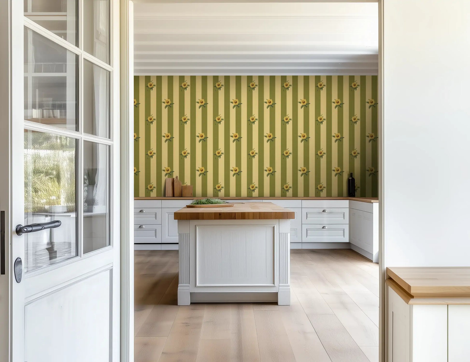 Perfect for rustic kitchens, sunlit dining rooms, or countryside-inspired spaces, this Provençal striped wallpaper pairs effortlessly with natural linen, antique ceramics, and warm wooden accents, bringing the timeless charm of the French countryside into your home.