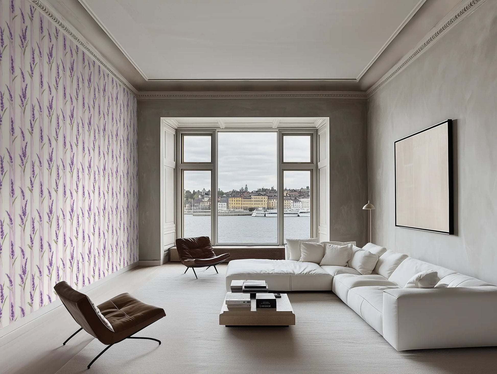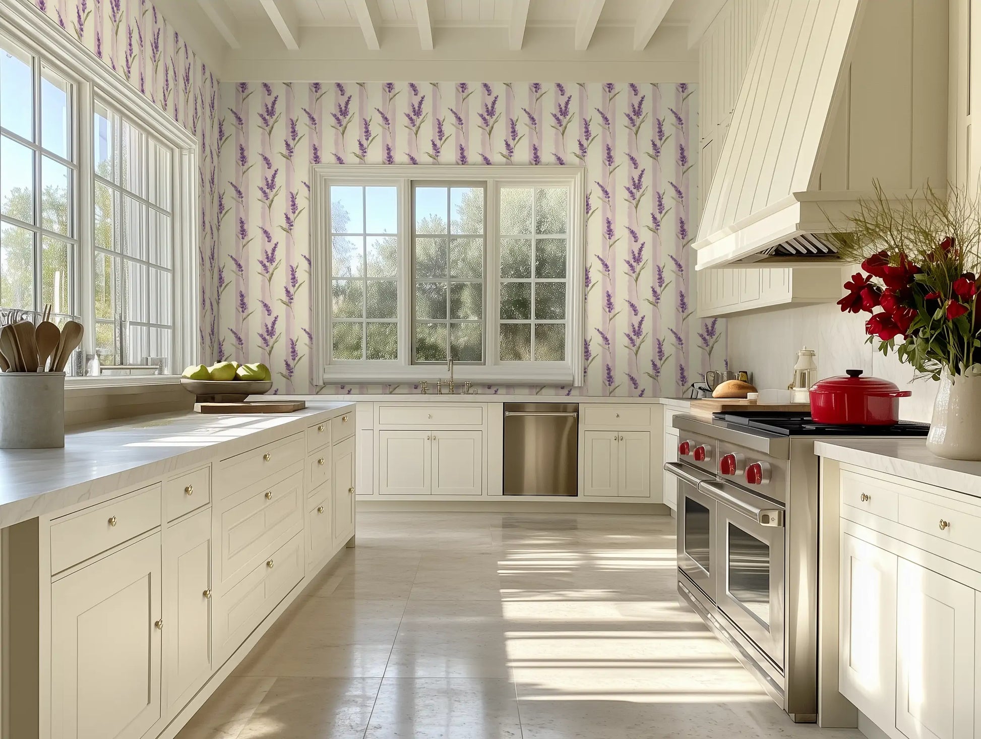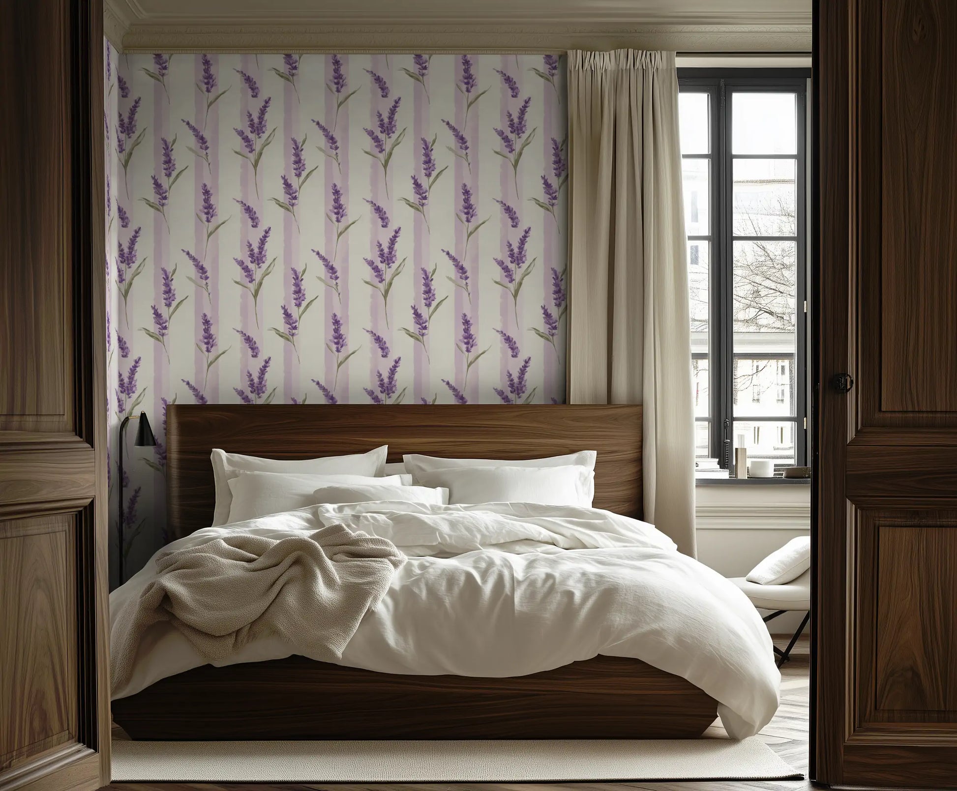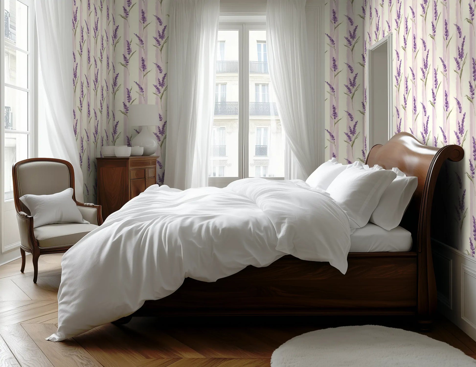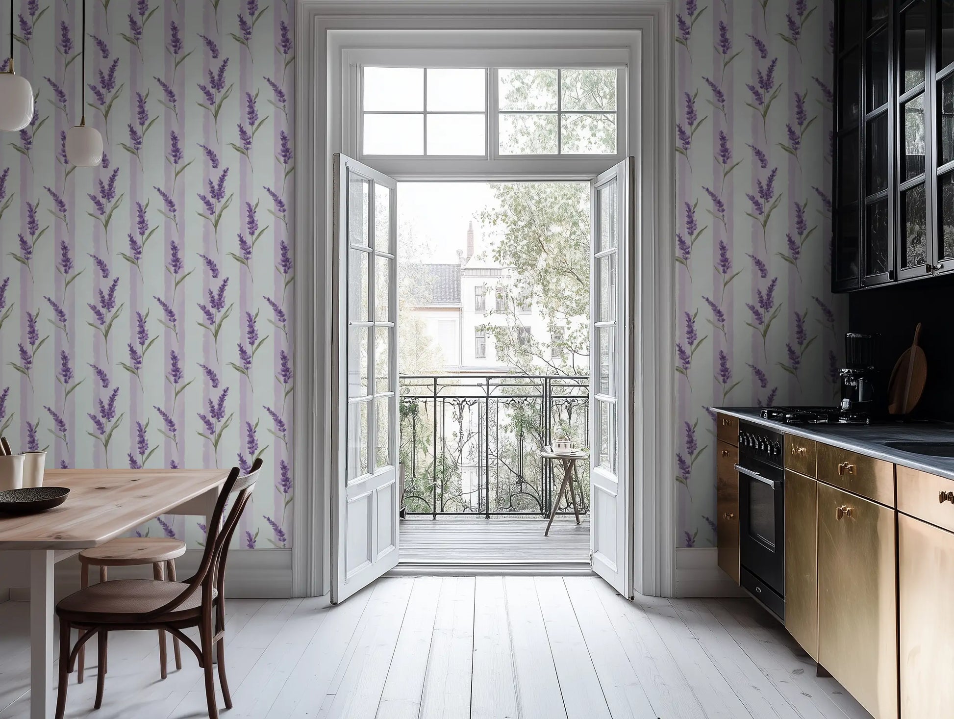 In the hidden gardens of Provence, wild lavender grows freely, climbing stone walls and weaving through sunlit courtyards. Wild Lavender captures this effortless beauty with soft lilac hues, faded lavender blooms, and classic vertical stripes, evoking the charm of a rustic countryside retreat.