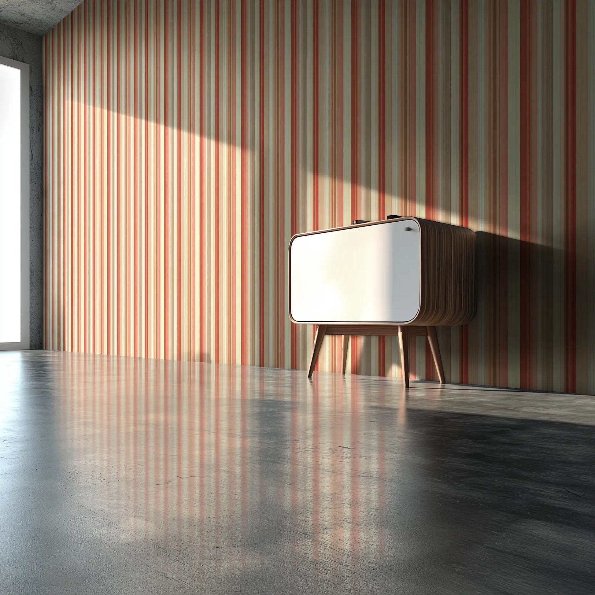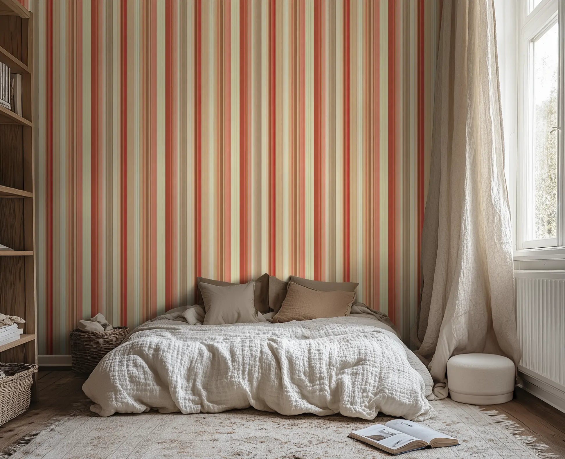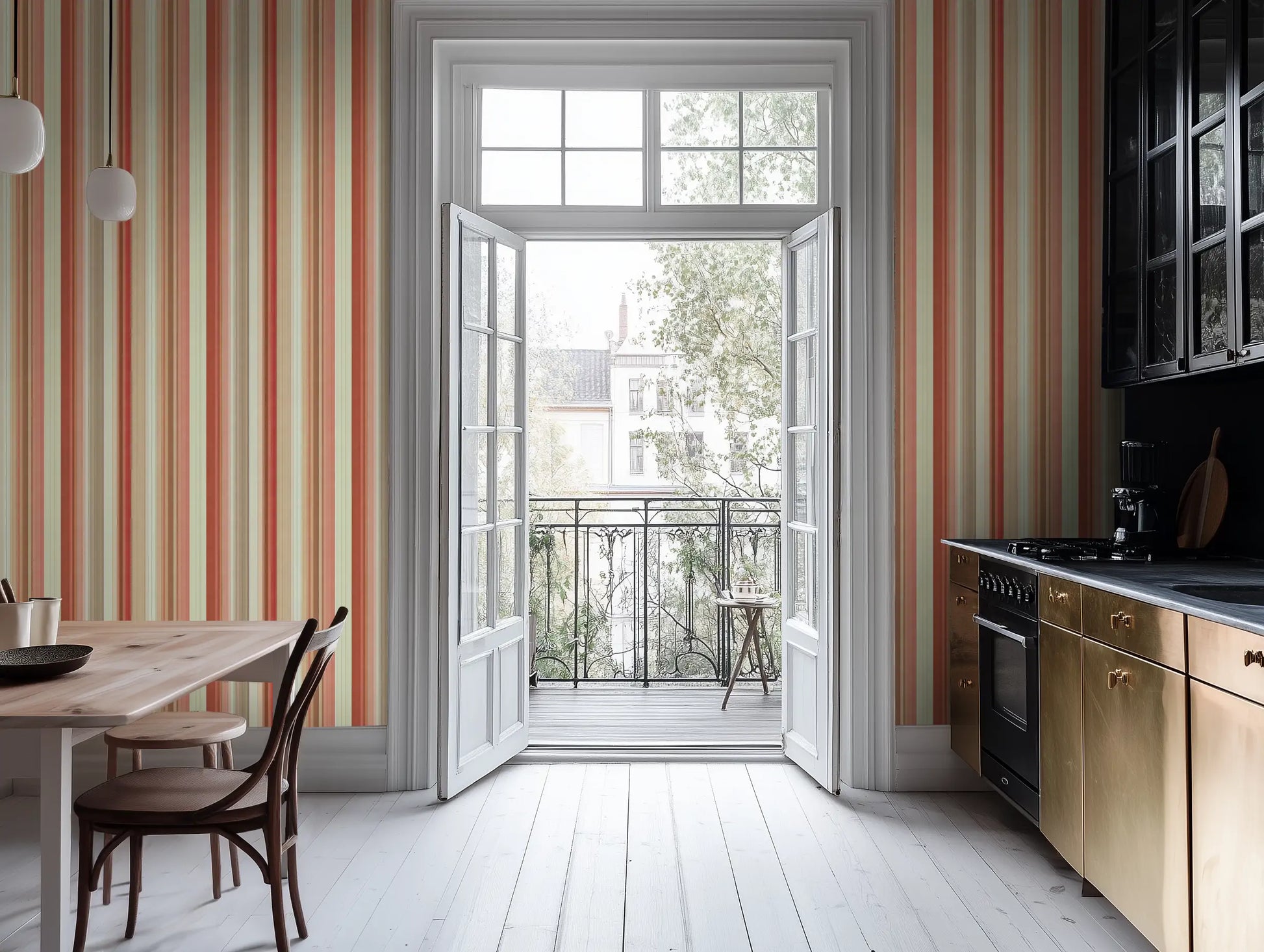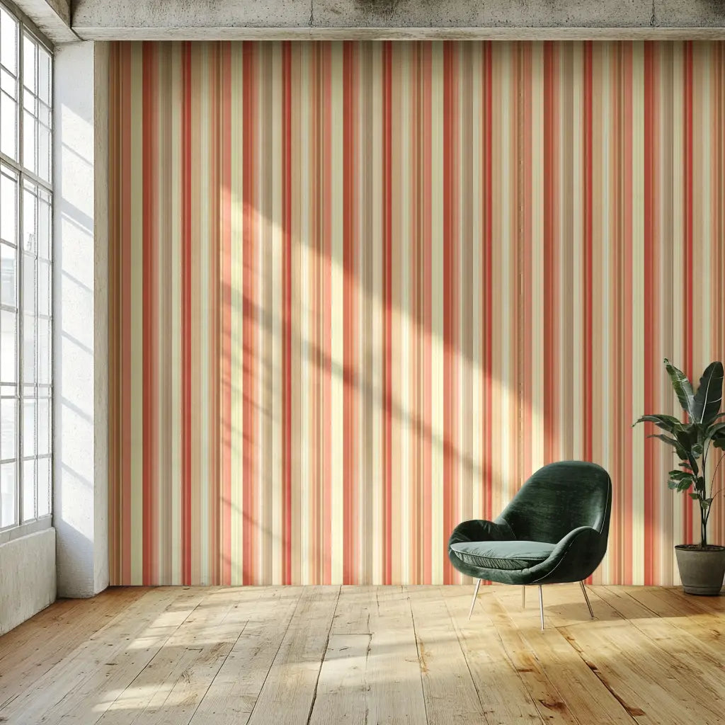 Ideal for elegant bedrooms, coastal retreats, or sunlit dining areas, this soft pink striped wallpaper pairs beautifully with natural linens, handcrafted ceramics, and rustic wooden accents, bringing the serenity of the Aegean into your home.