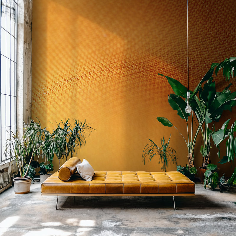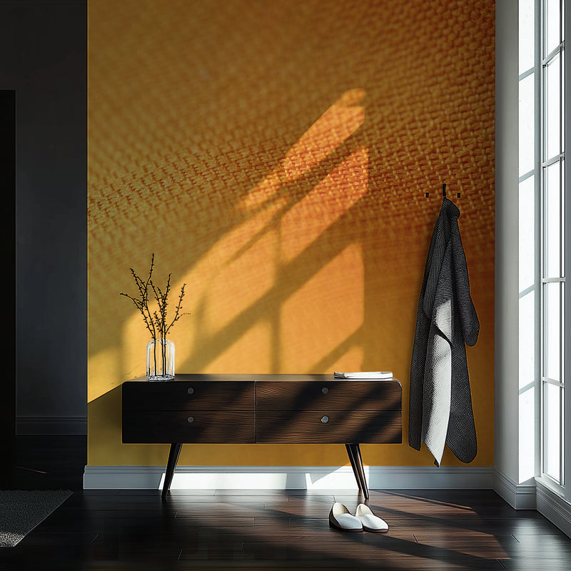 Golden fabric caught mid-gesture, soft waves flowing like sunlight on silk. Honey Fold is pure warmth—a rich yellow textile mural that feels inviting, alive, and touchable. A backdrop that glows, even when the lights are off.